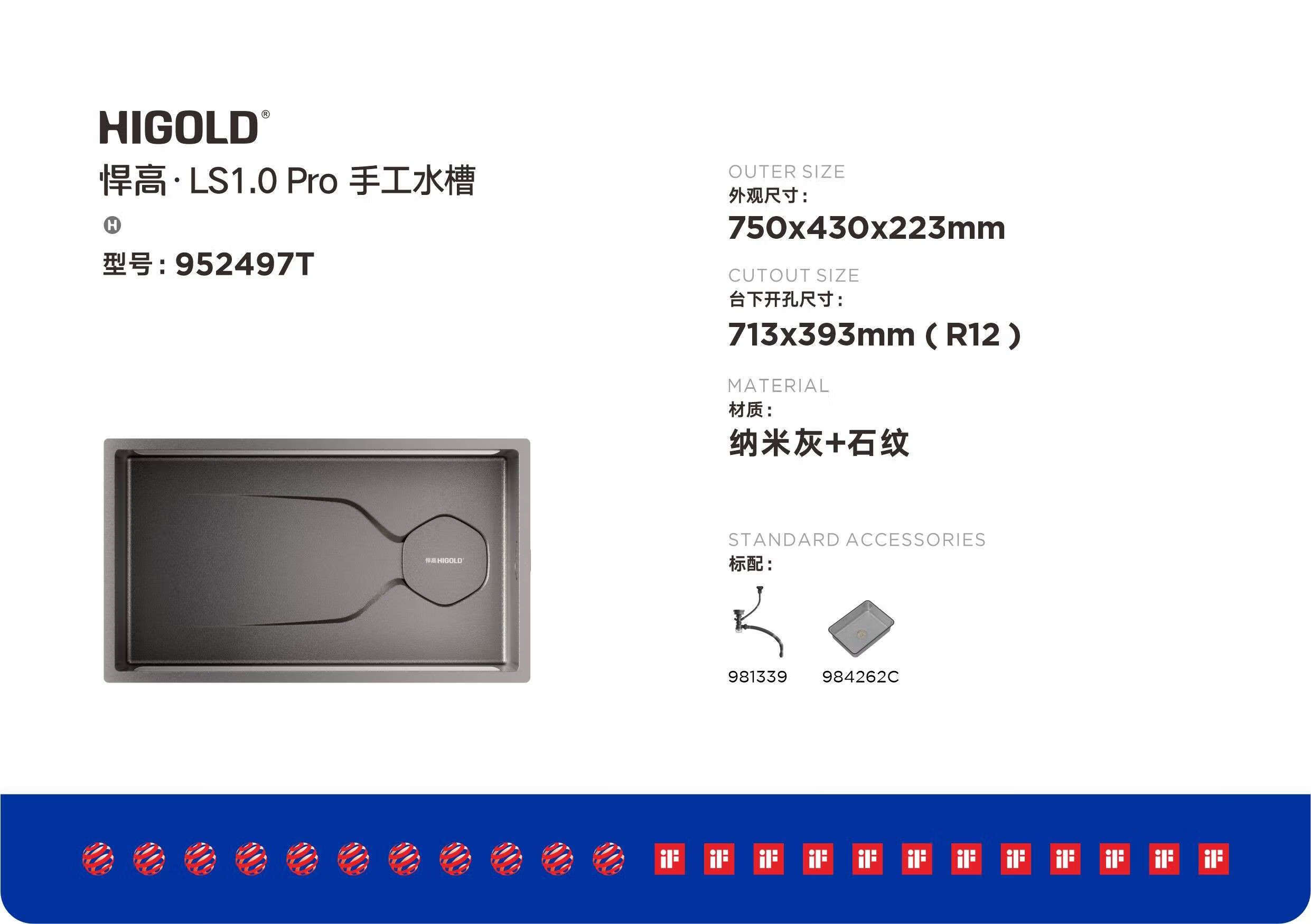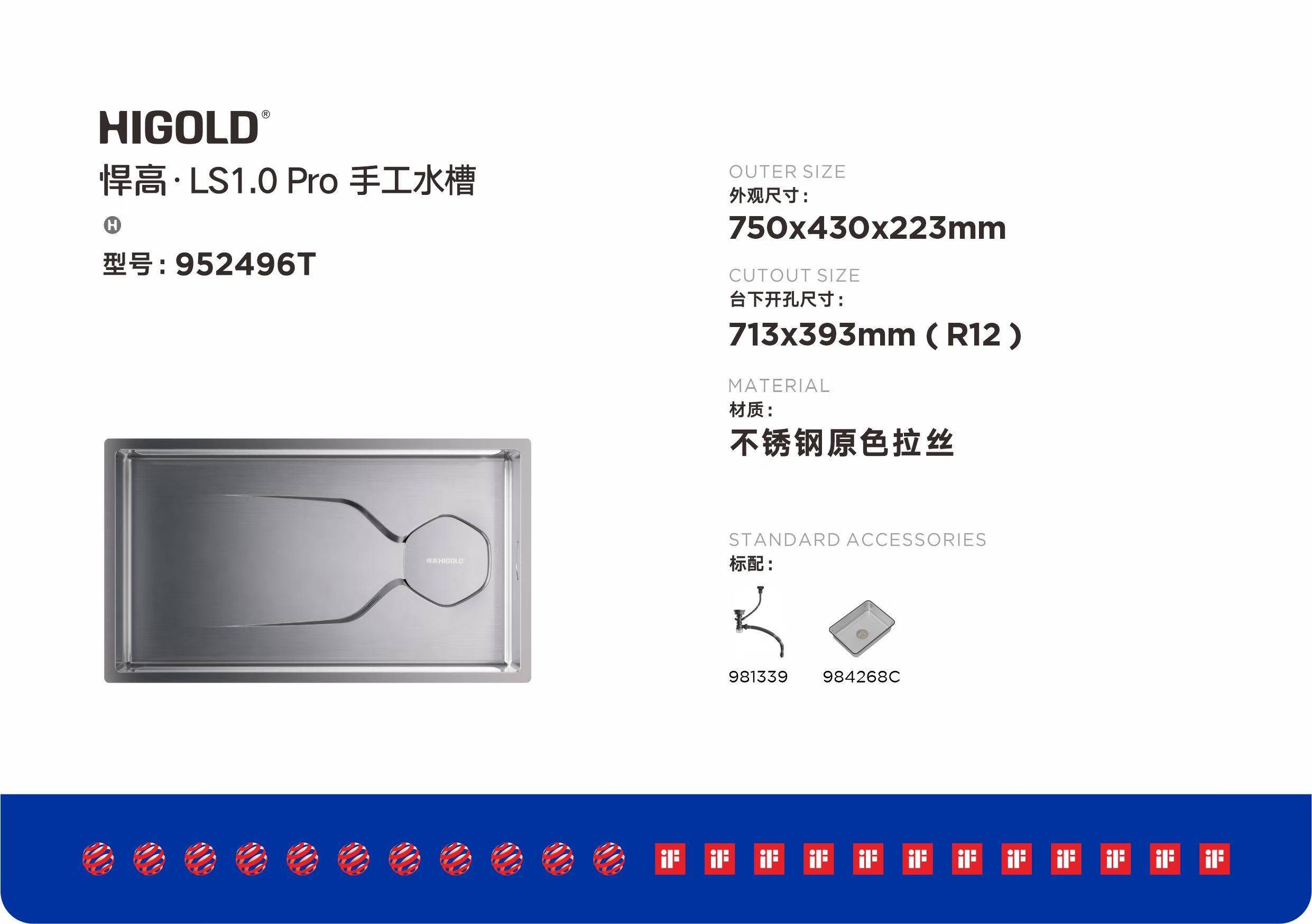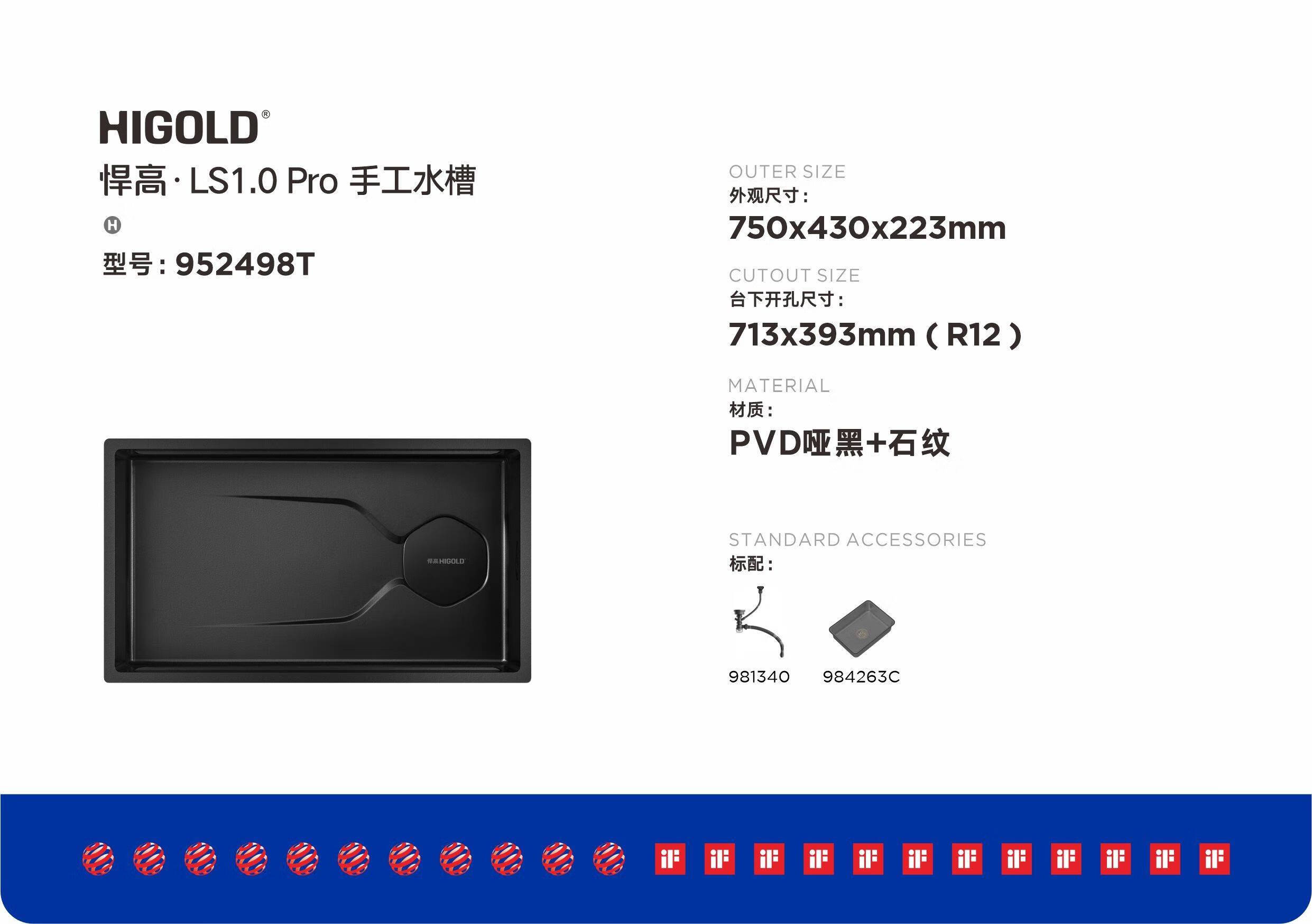 HIGOLD LS1.0Pro304 stainless steel handmade sink vegetable basin home kitchen large single sink 952496 952498T matte black stone pattern
