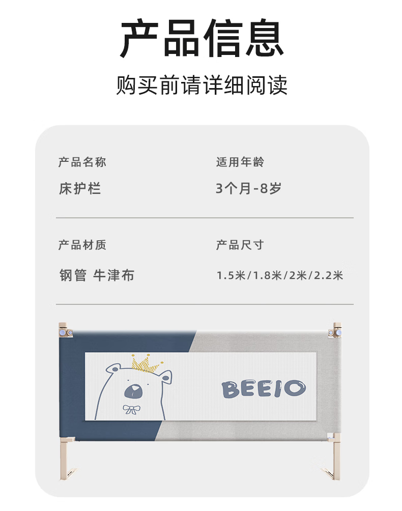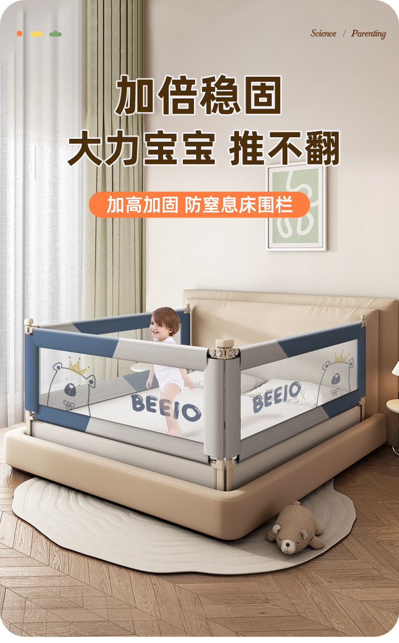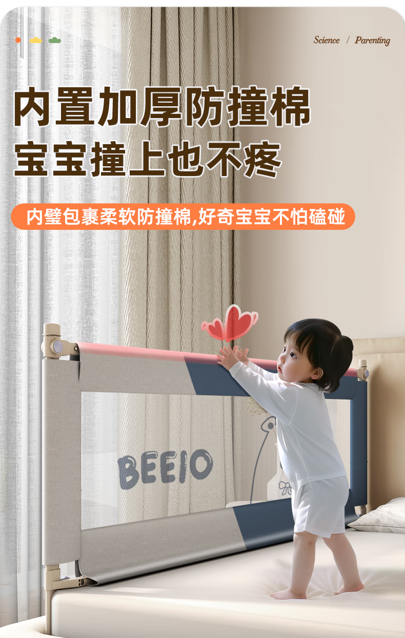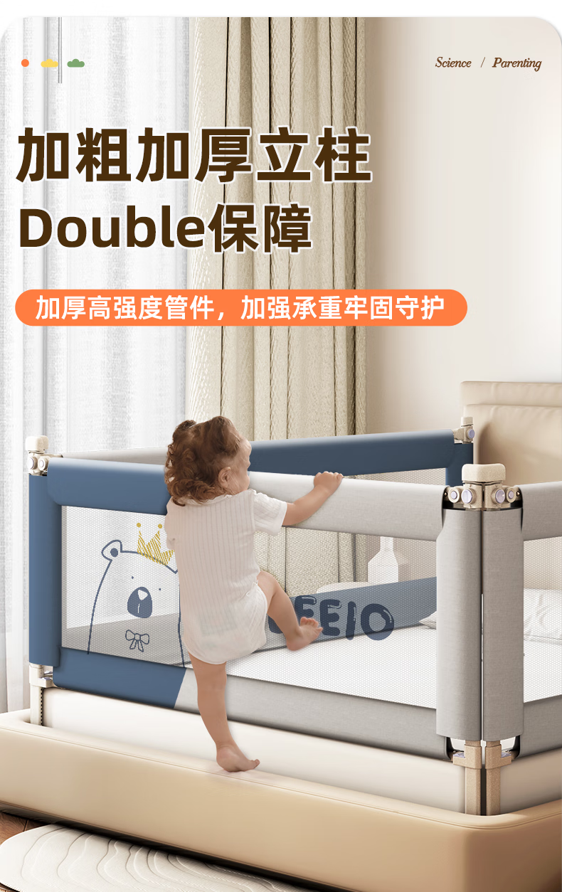 Xulin Japan Bed Fence Baby Free Installation Bed Fence Safety Guardrail Baby Fence Bed Anti-fall Guardrail Bed Crown Bear - Upgraded punch-free U-shaped base 1.5+1.8 meters double-sided