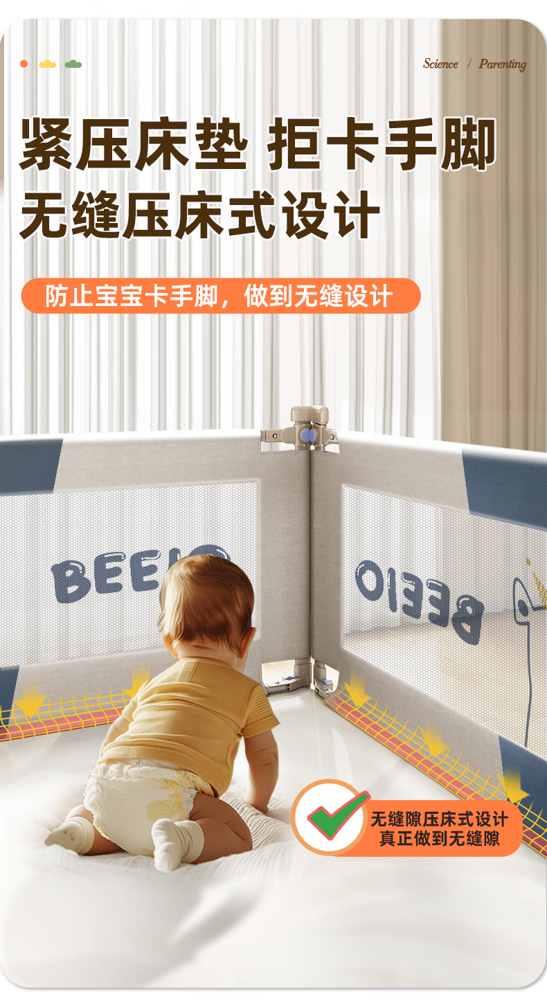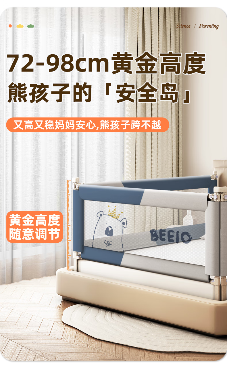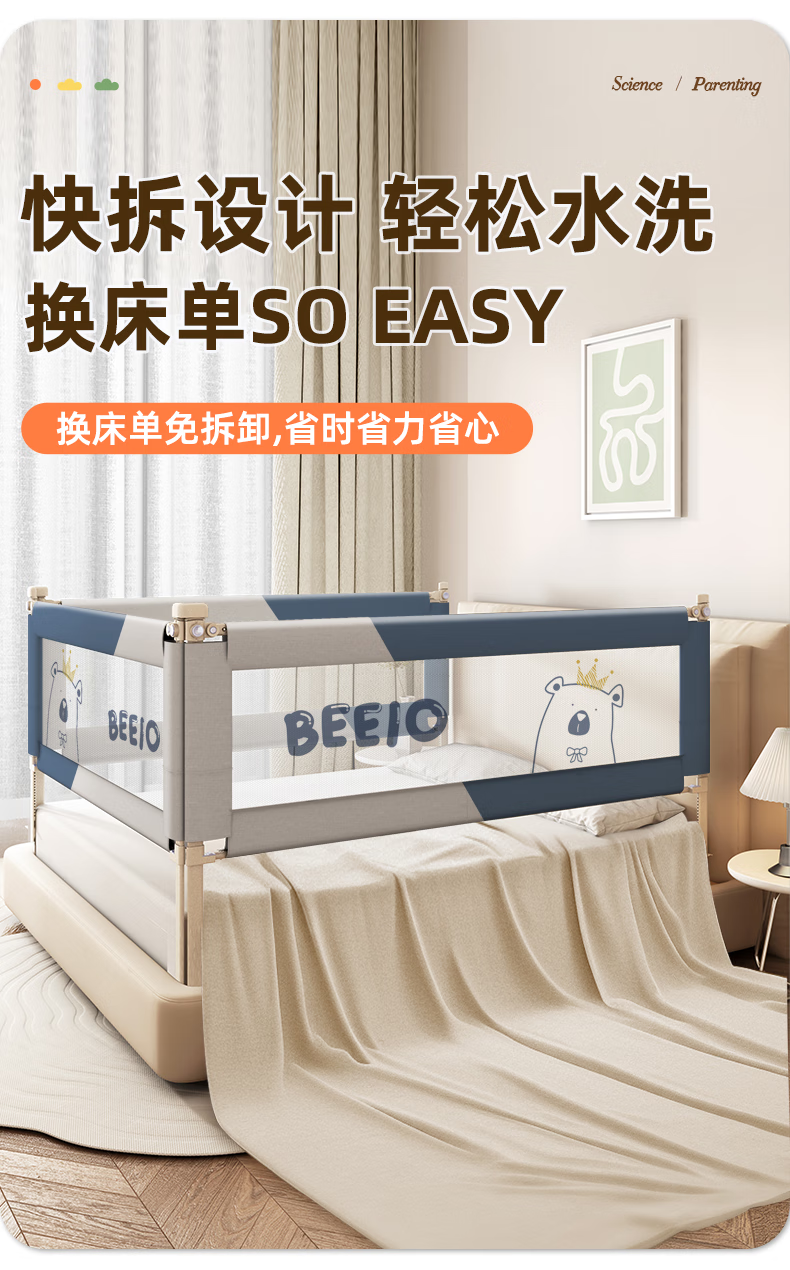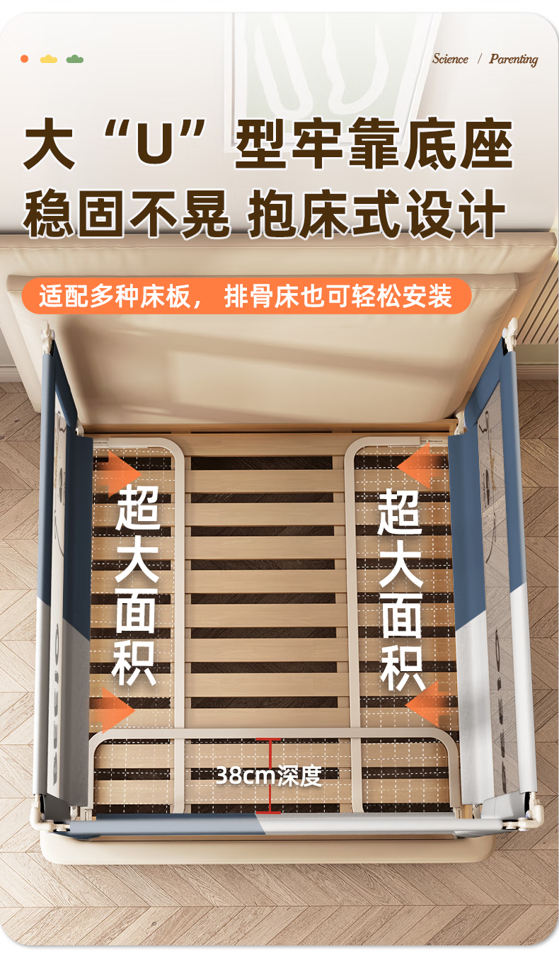 Xulin Japan Bed Fence Baby Free Installation Bed Fence Safety Guardrail Baby Fence Bed Anti-fall Guardrail Bed Crown Bear - Upgraded punch-free U-shaped base 1.5+1.8 meters double-sided
