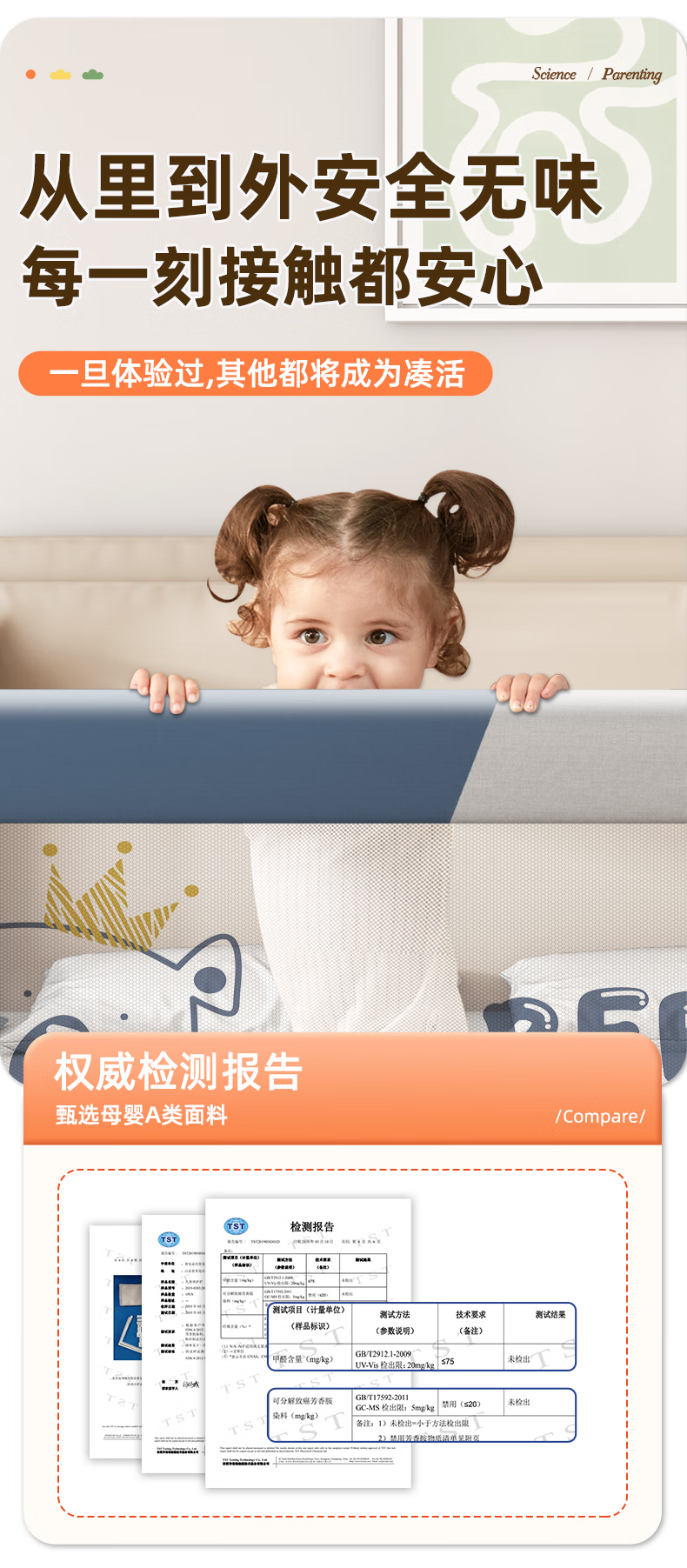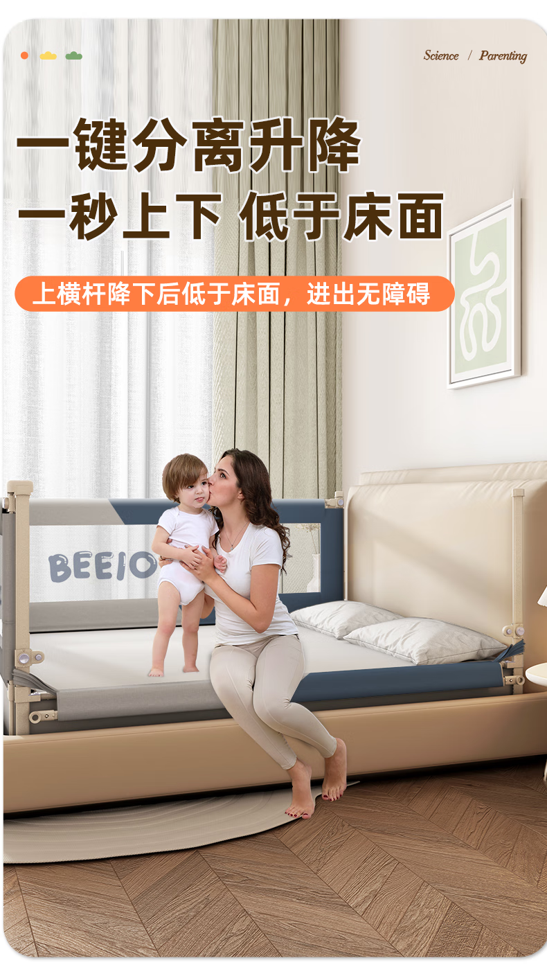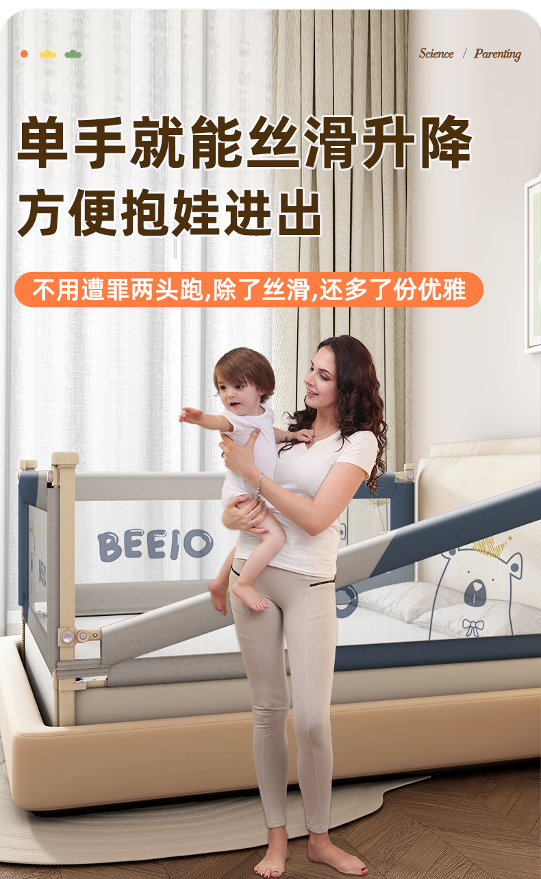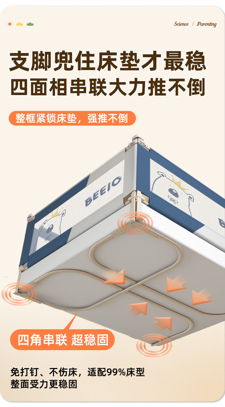 Xulin Japan Bed Fence Baby Free Installation Bed Fence Safety Guardrail Baby Fence Bed Anti-fall Guardrail Bed Crown Bear - Upgraded punch-free U-shaped base 1.5+1.8 meters double-sided