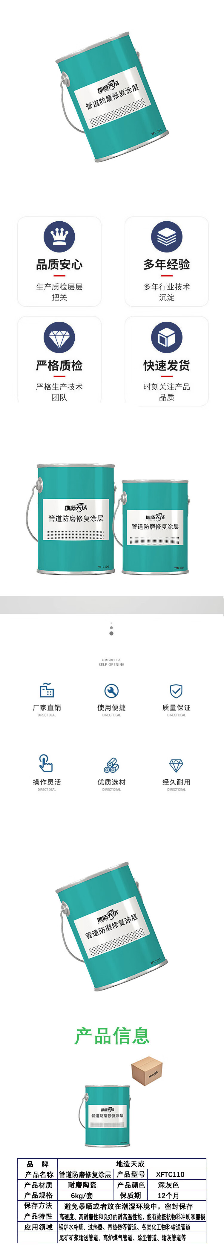 DIZTCENG XFTC110 pipe anti-wear repair coating 6kg/set (price unit: set) dark gray