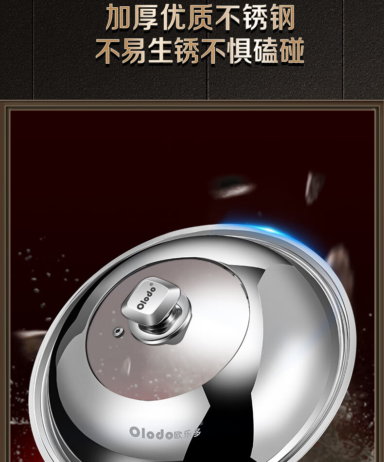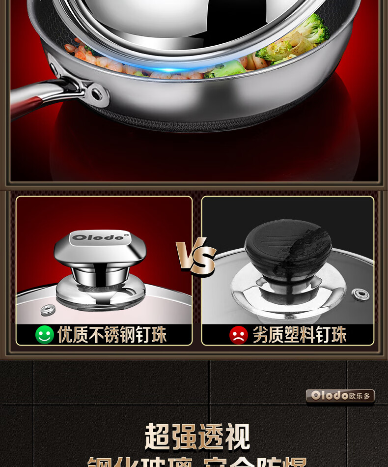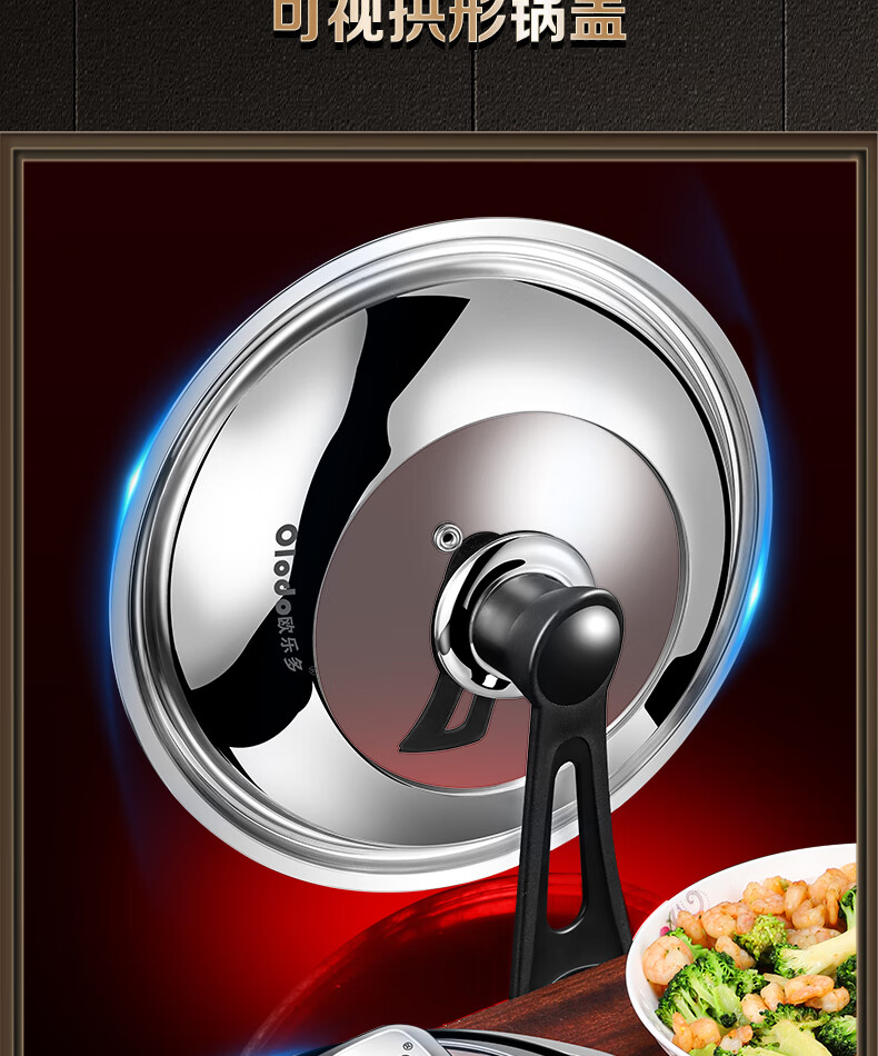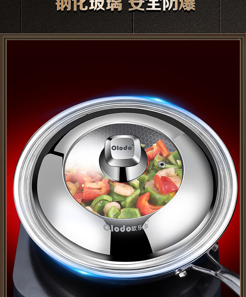 OLODO stainless steel pot lid household cooking pot lid high arch pot lid thickened tempered visible pot lid universal pot lid all steel diamond bead visible pot lid 42cm