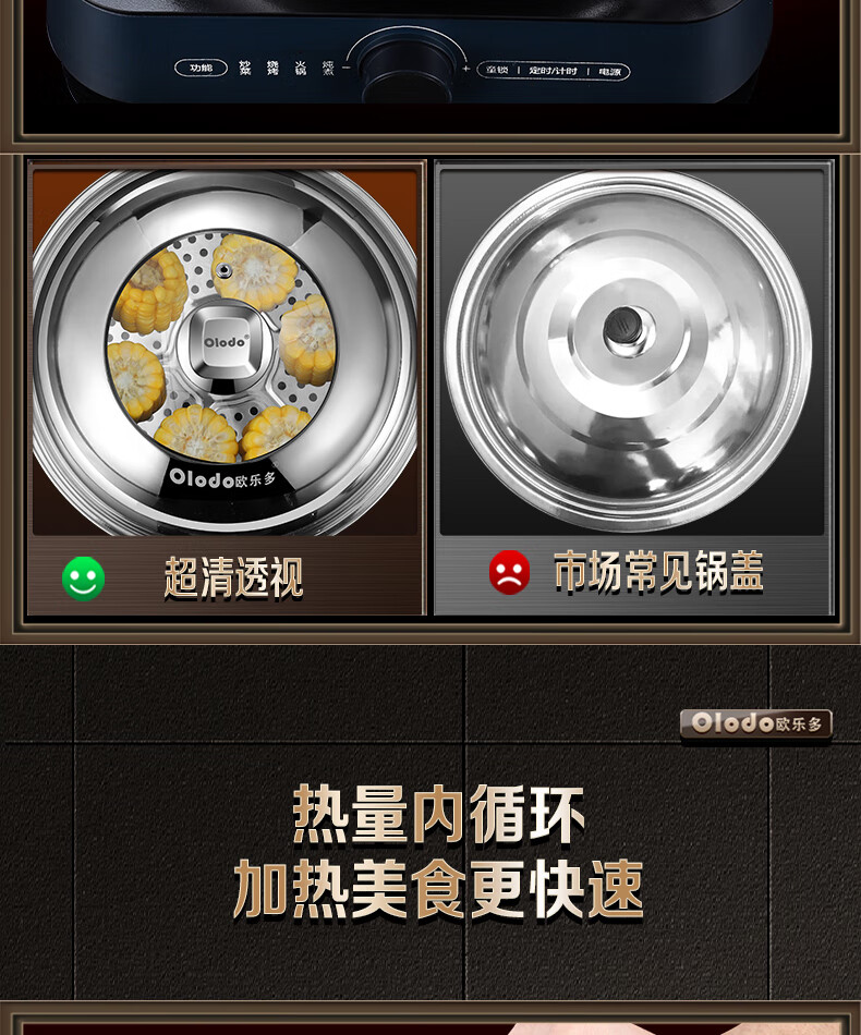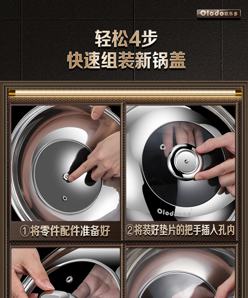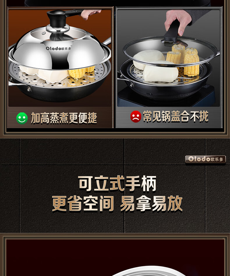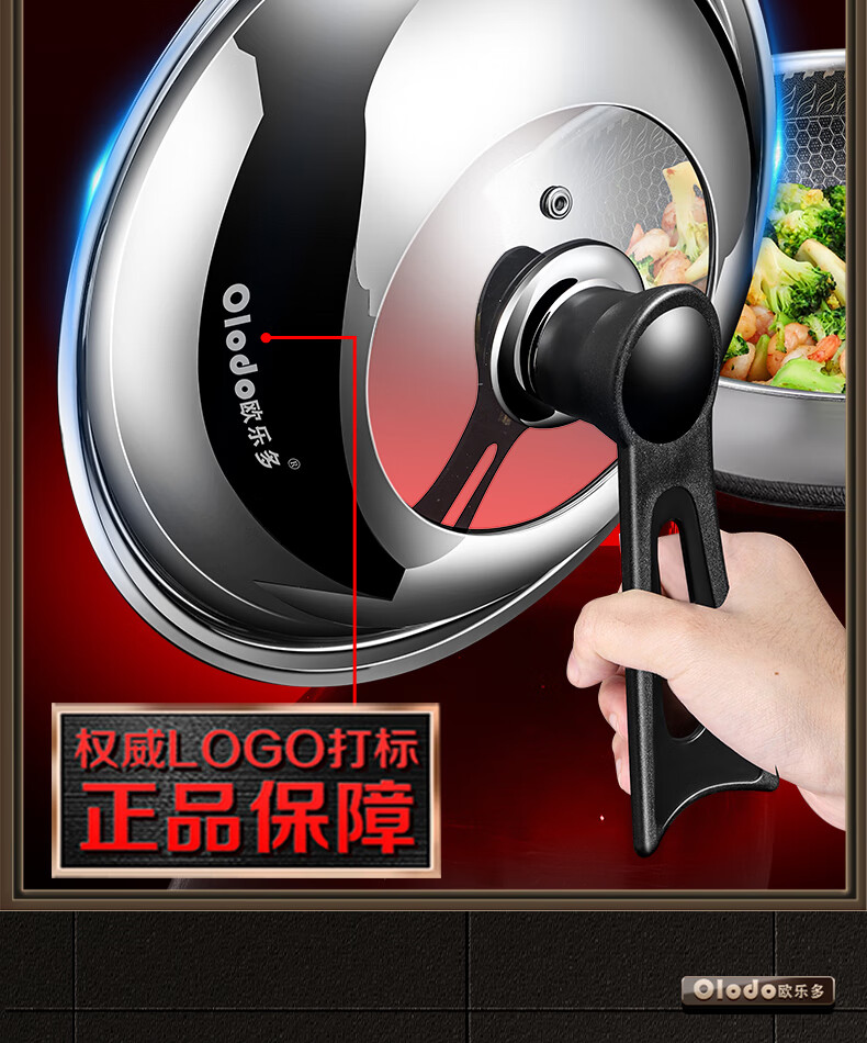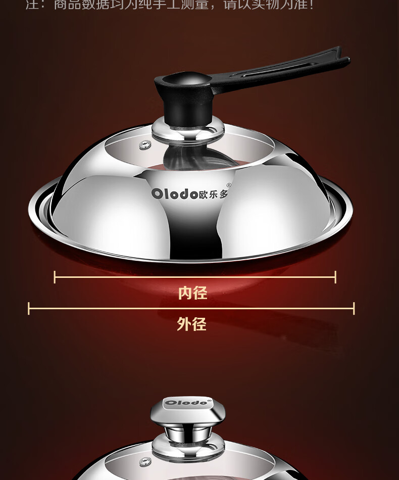 OLODO stainless steel pot lid household cooking pot lid high arch pot lid thickened tempered visible pot lid universal pot lid all steel diamond bead visible pot lid 42cm