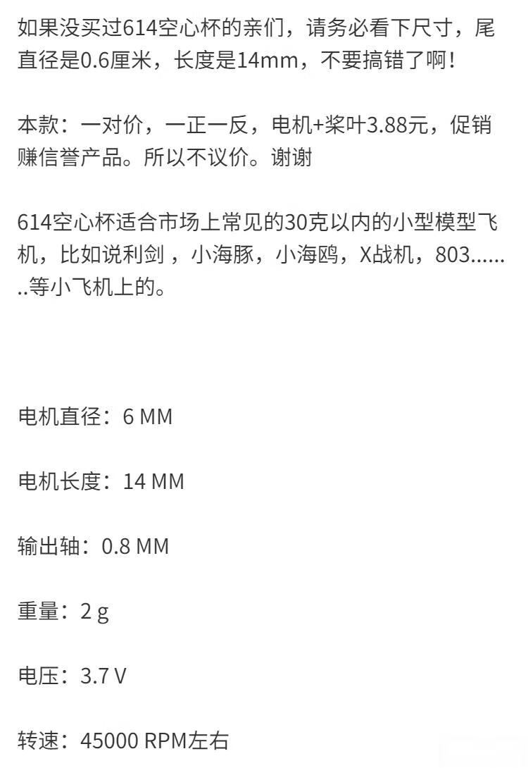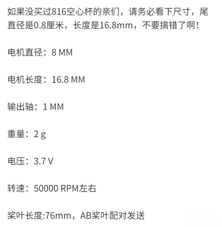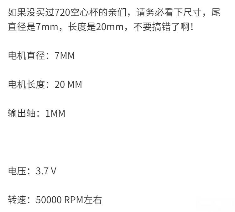 Coreless motor high-speed model aircraft 615/716/720/8520/1020 drone motor 3.7V 50,000 rpm 720 2 motors + 2 forward and reverse propellers