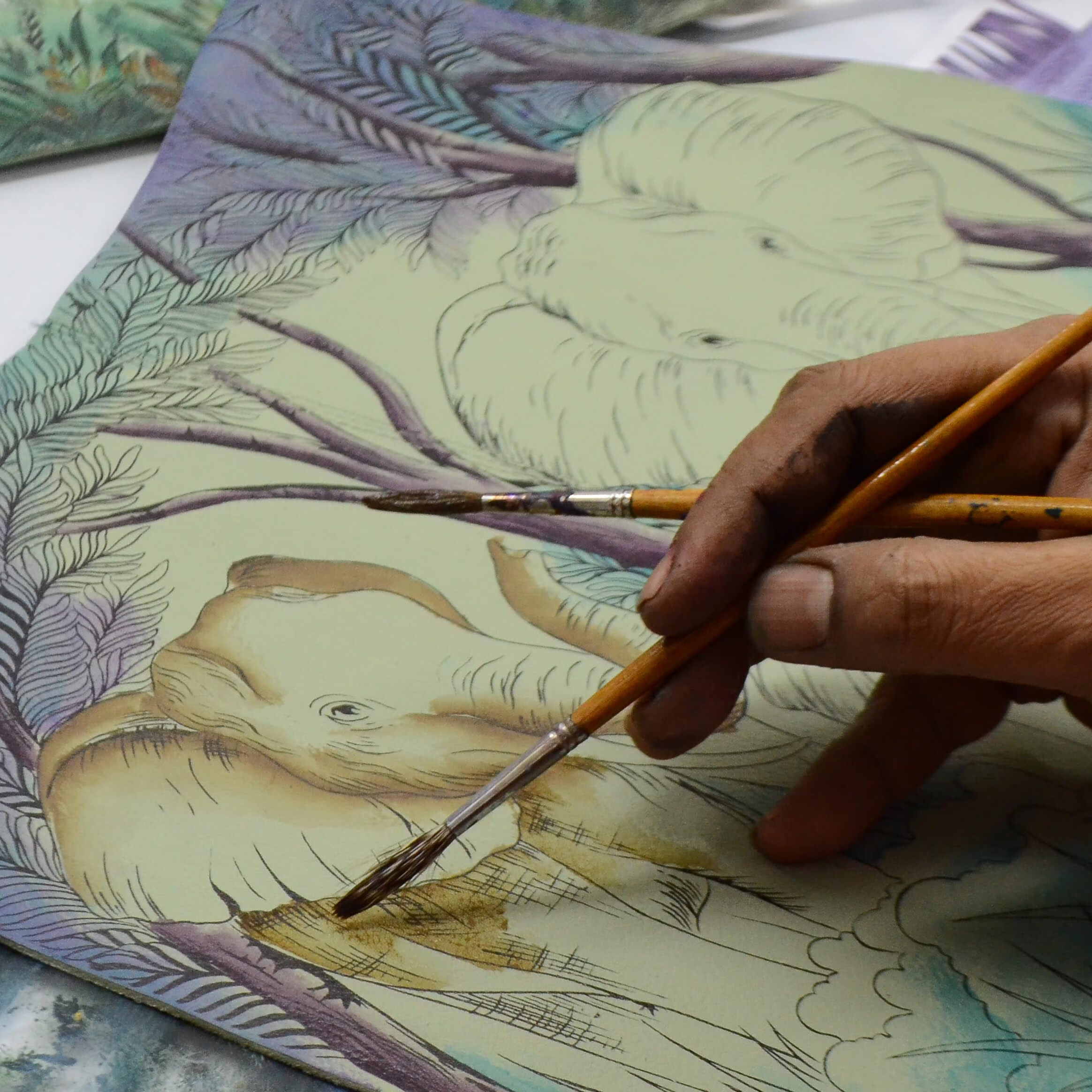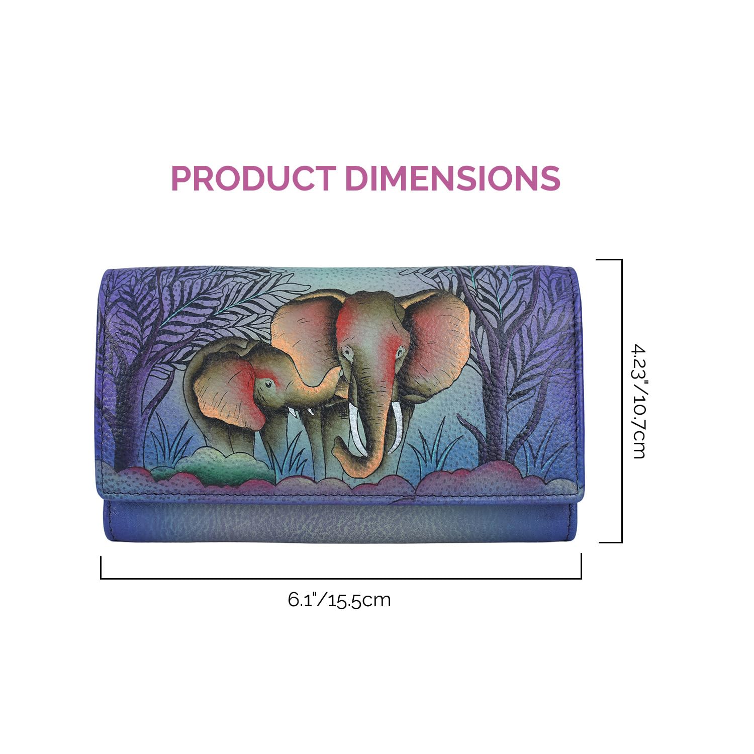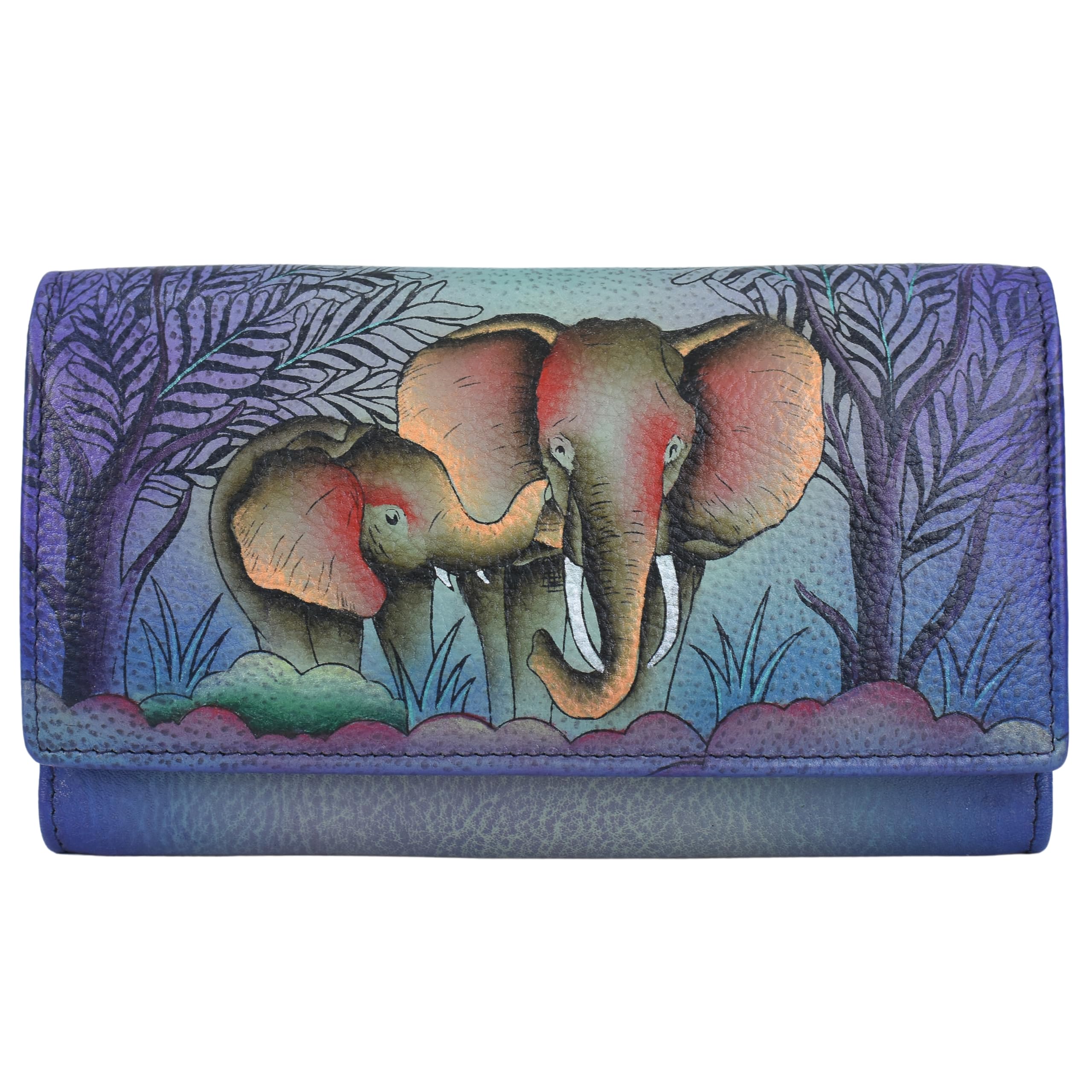 Anna by Anuschka Women's Elephant Family Hand-painted Genuine Leather RFID Multi-Slot Long Wallet Retro Style Elephant Family Single Size