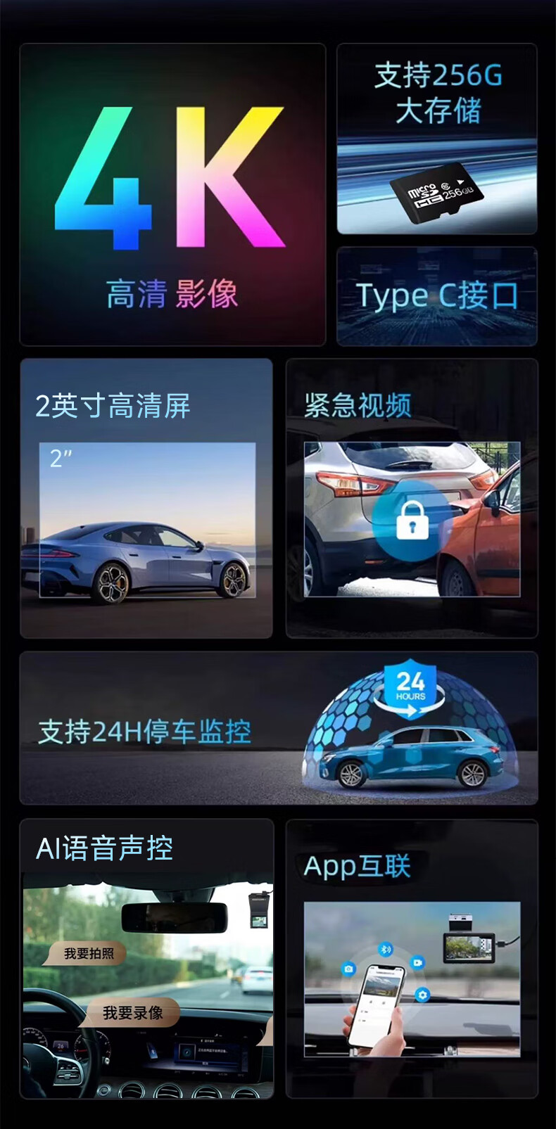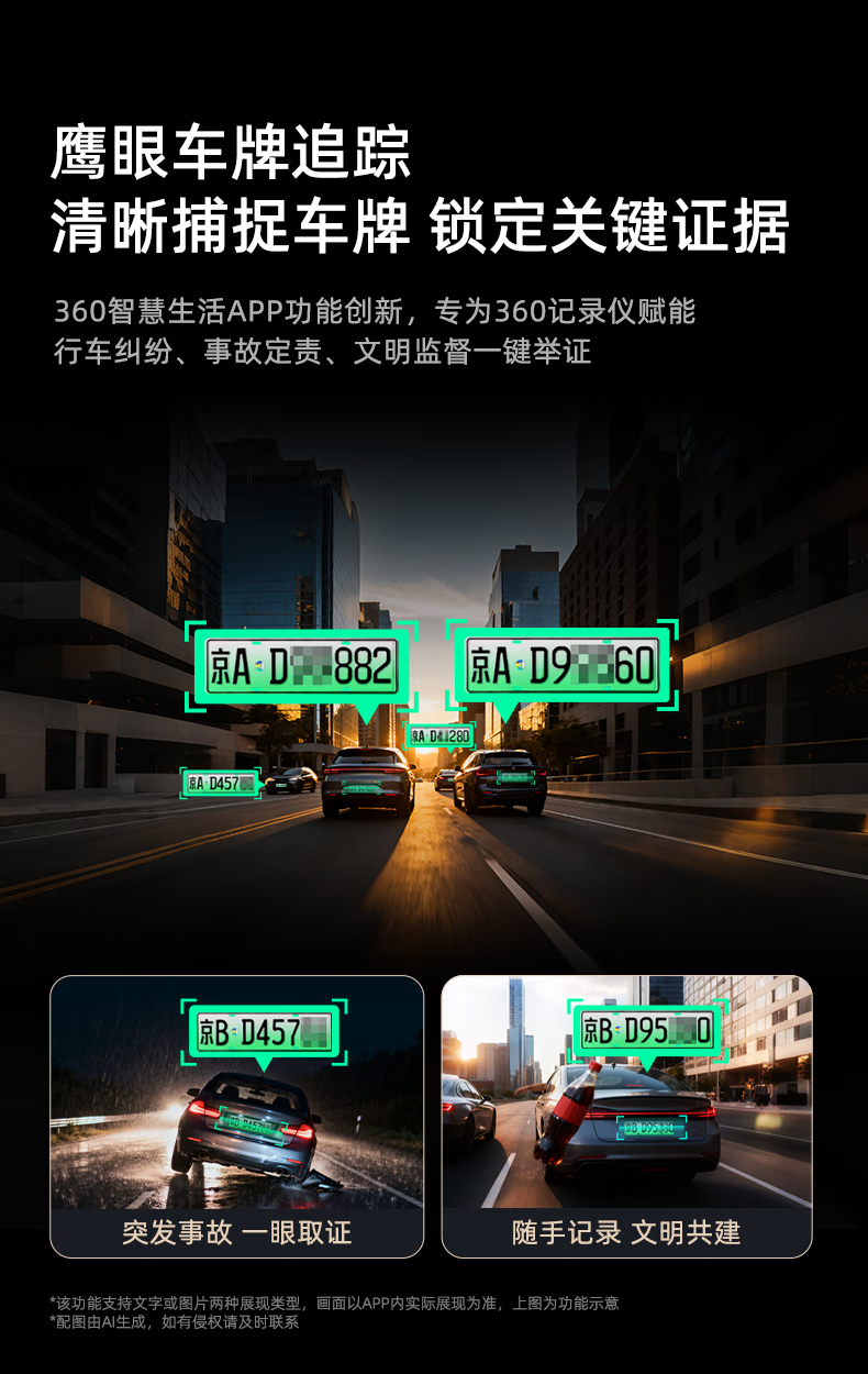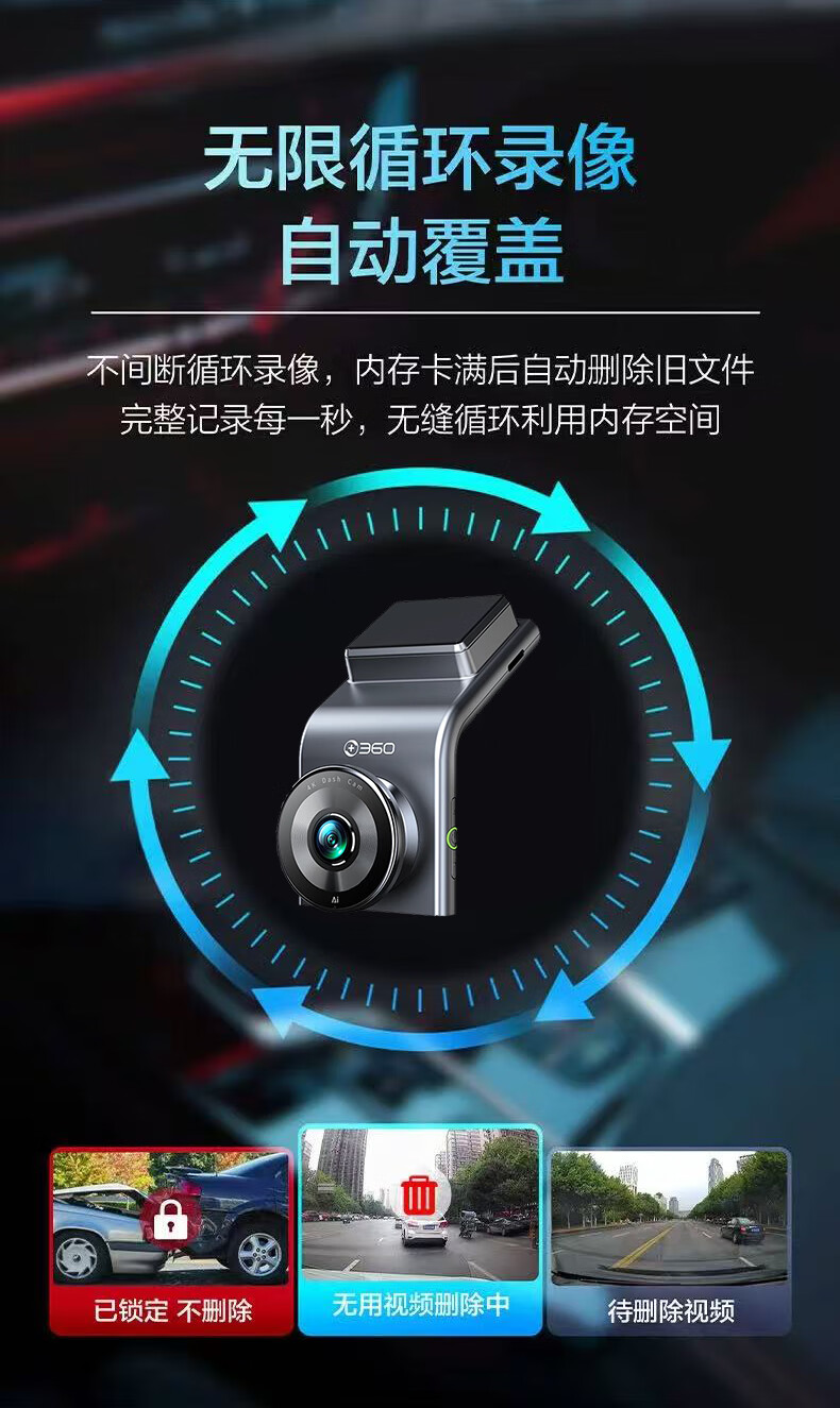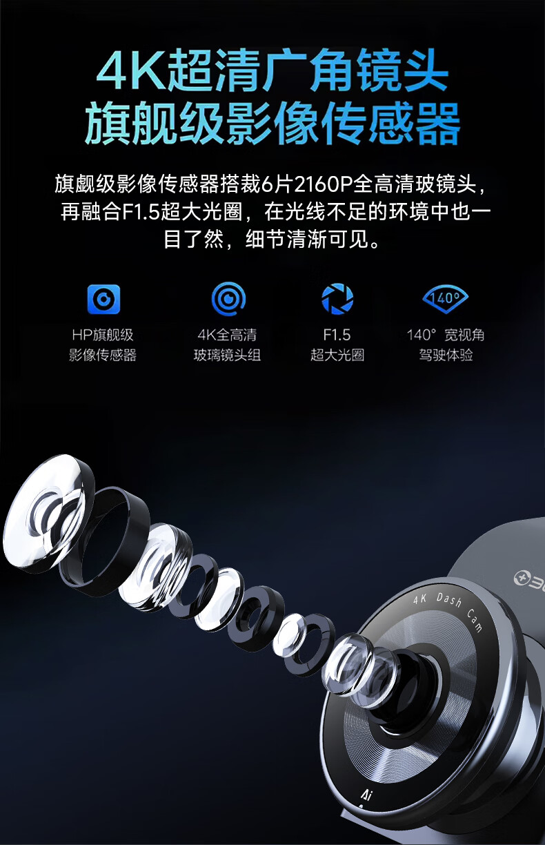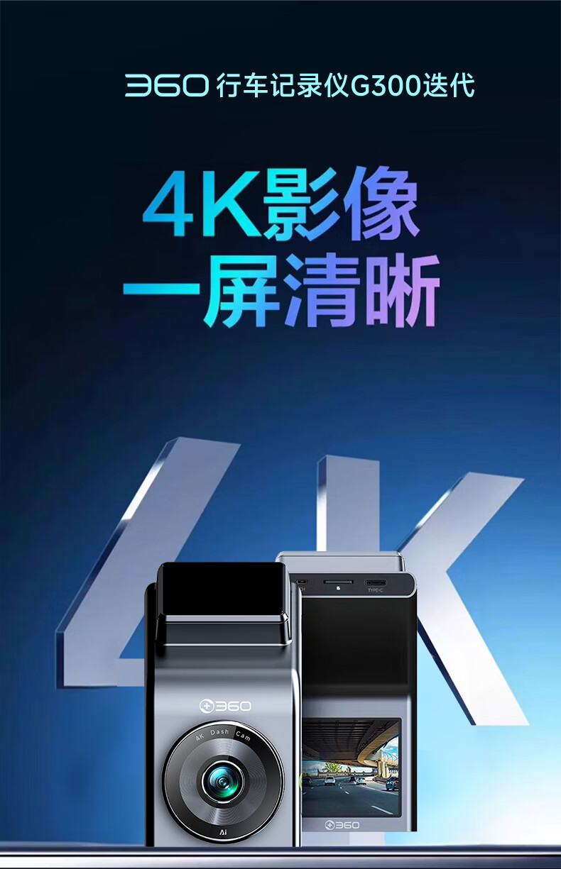 360AI driving recorder G300 4K ultra-high definition black light night vision super capacitor voice capture Bluetooth connection G300 4K standard version + 64G card version