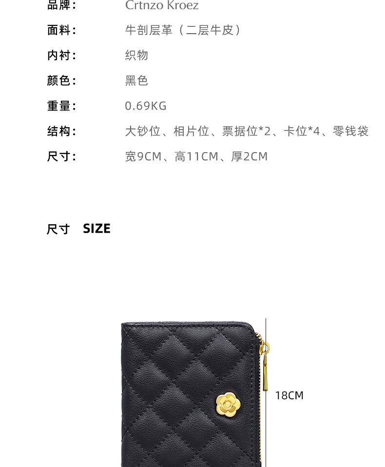 CRTNZO KROEZ Light Luxury Wallet Women's Short 2026 New Coin Purse Women's Card Holder New Year's Valentine's Day Birthday Gift Practical Black - Light Luxury Gift Practical for Girlfriend Wife Girlfriend's Birthday Gift