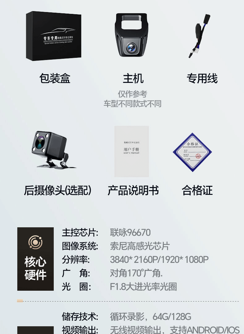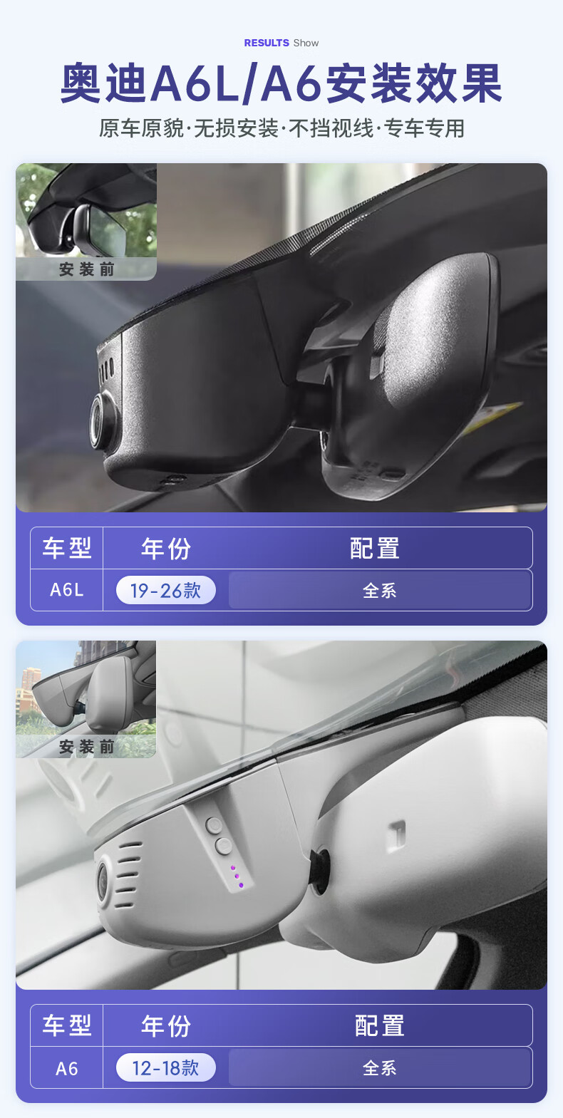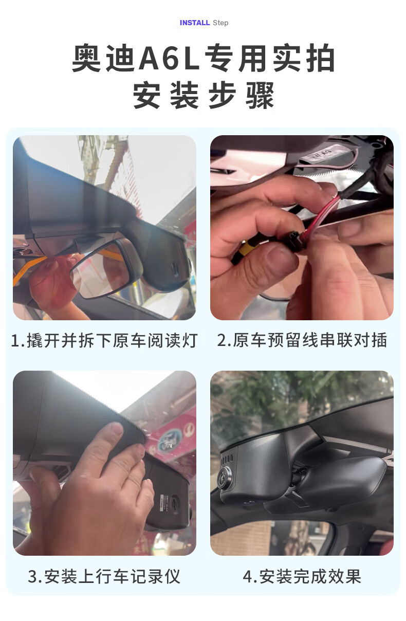Mengxuan (MENGXUAN) is suitable for Audi A6 A6L driving recorder, high-definition original cable-free front and rear dual recording, dedicated parking monitoring, single lens 1296p, without memory card, dedicated to 26-19 Audi A6L
