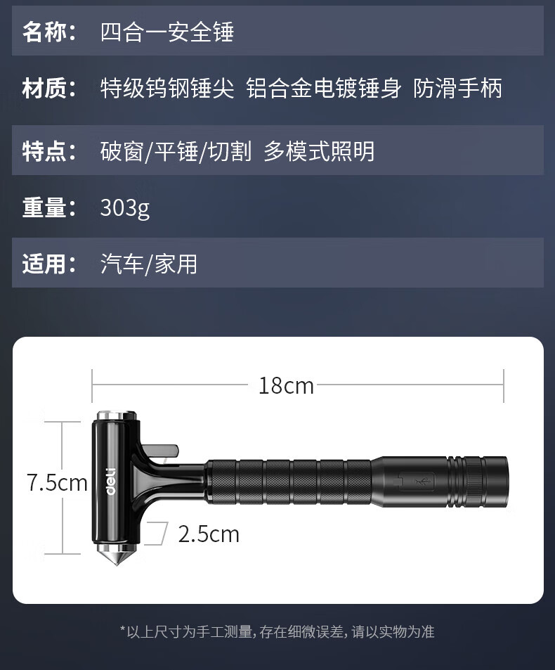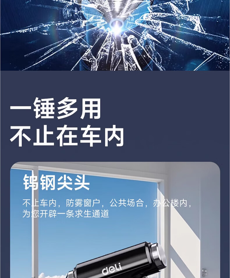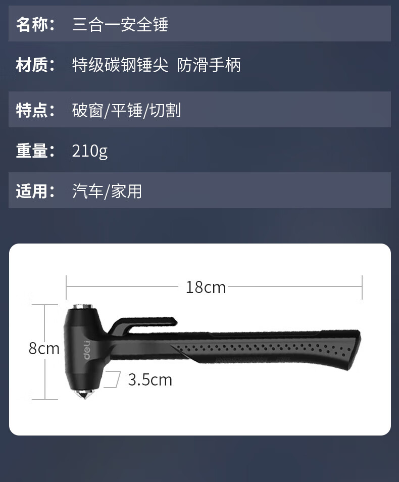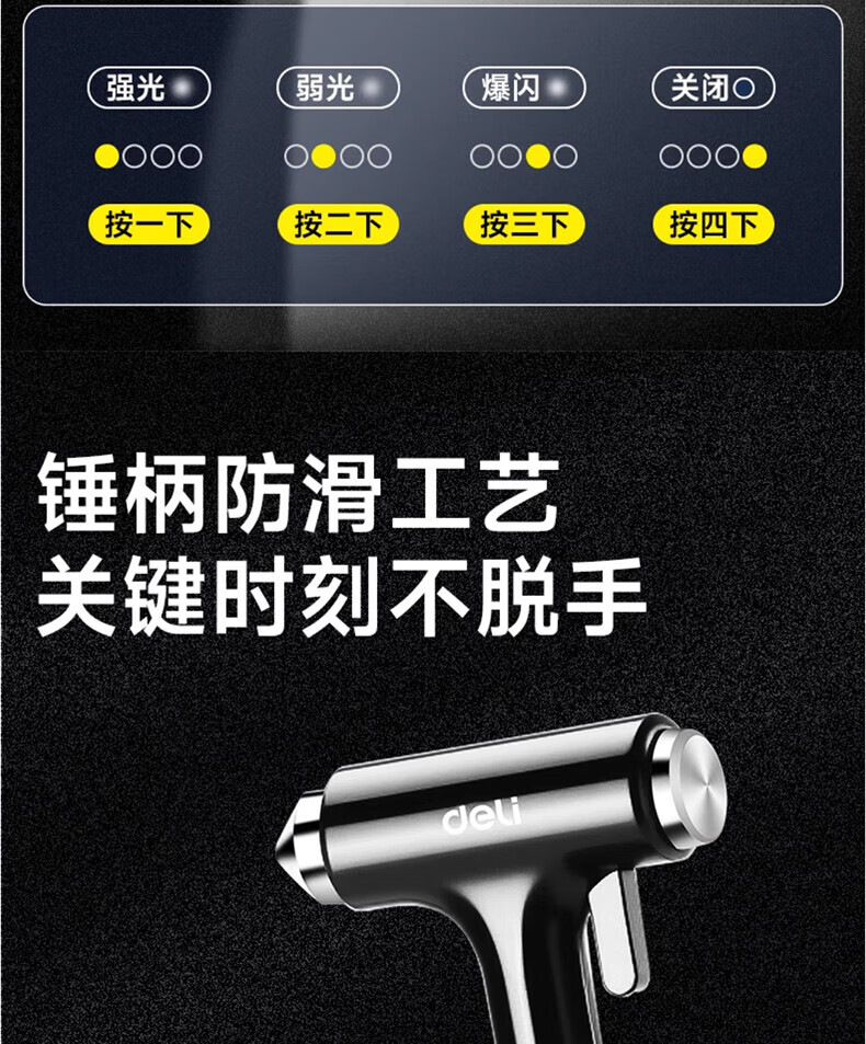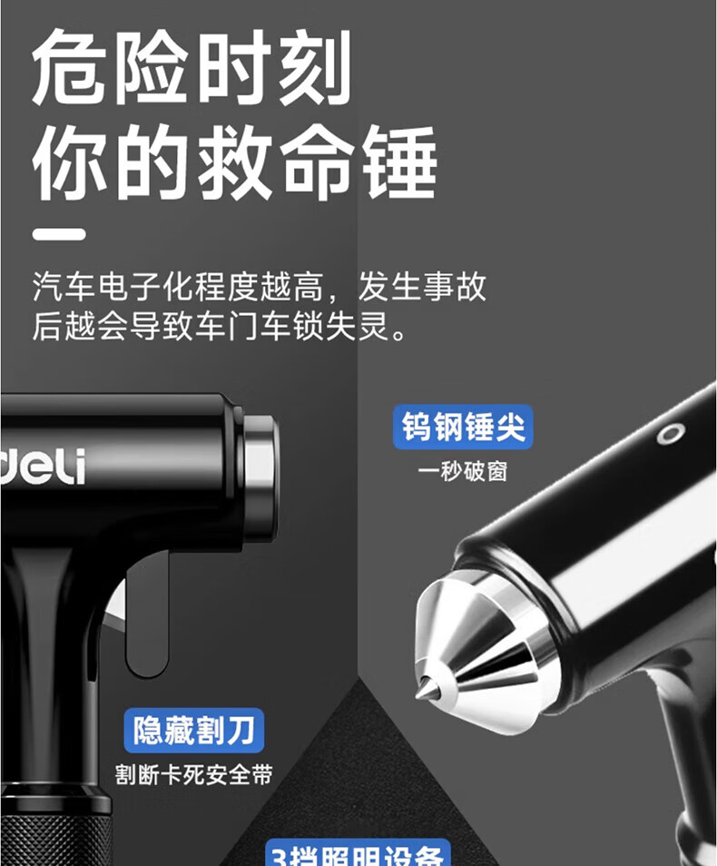 Deli window breaker car safety hammer multi-functional window breaking hammer car window broken glass emergency escape hammer three-in-one window breaking/flat hammer/cutting knife