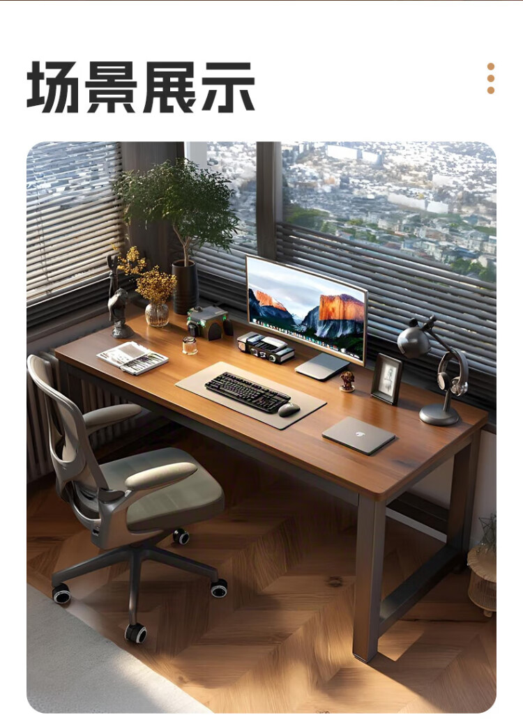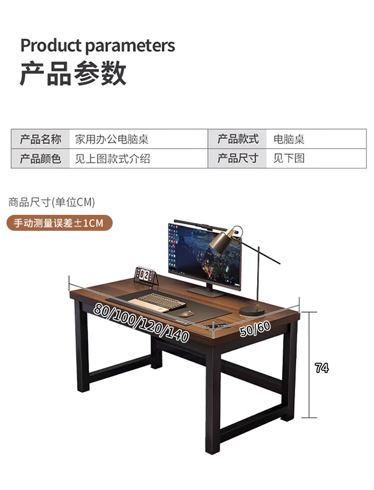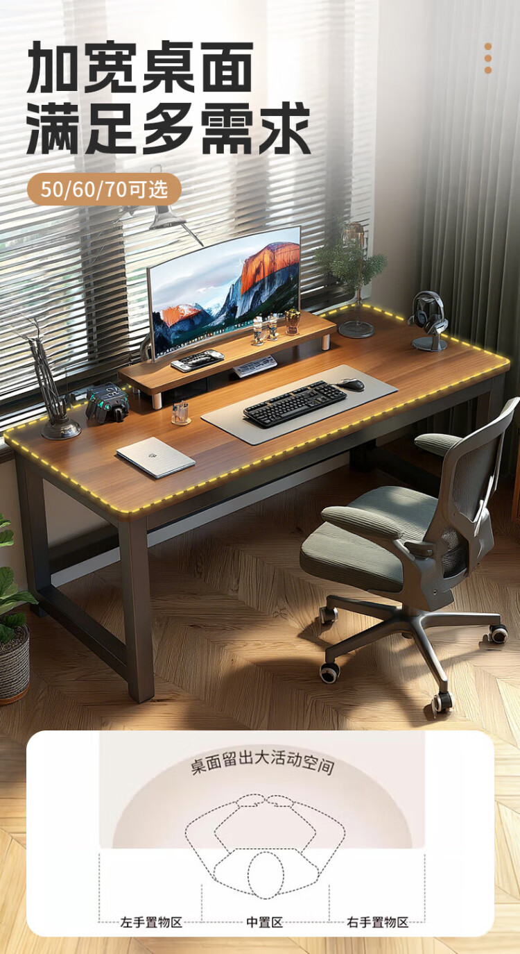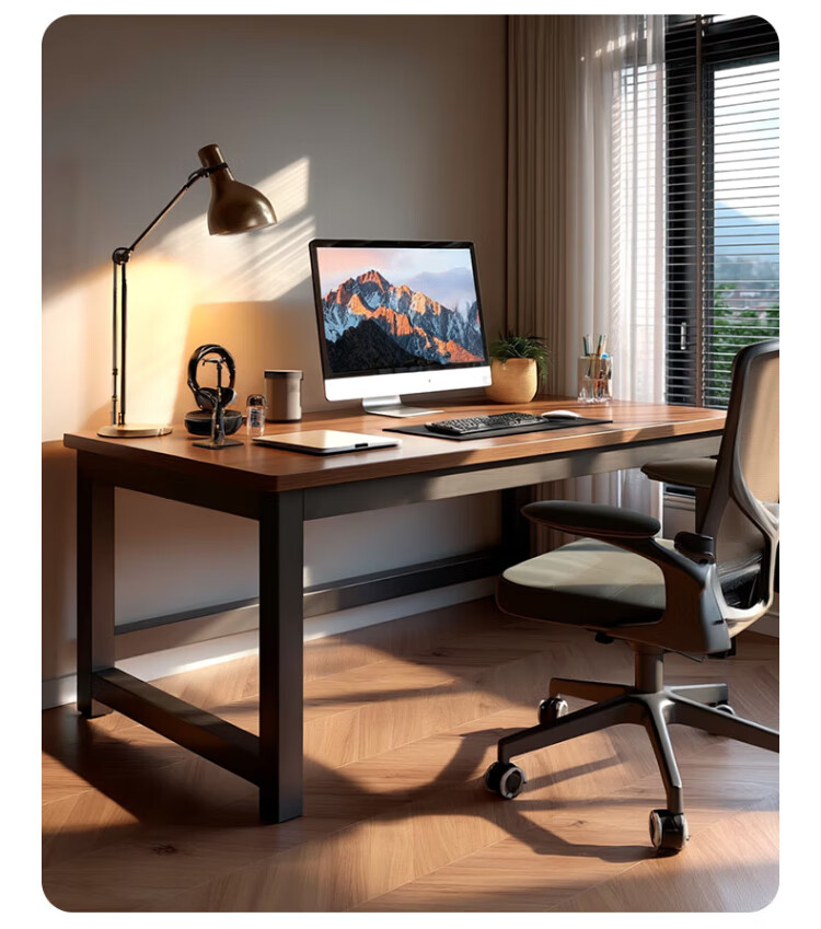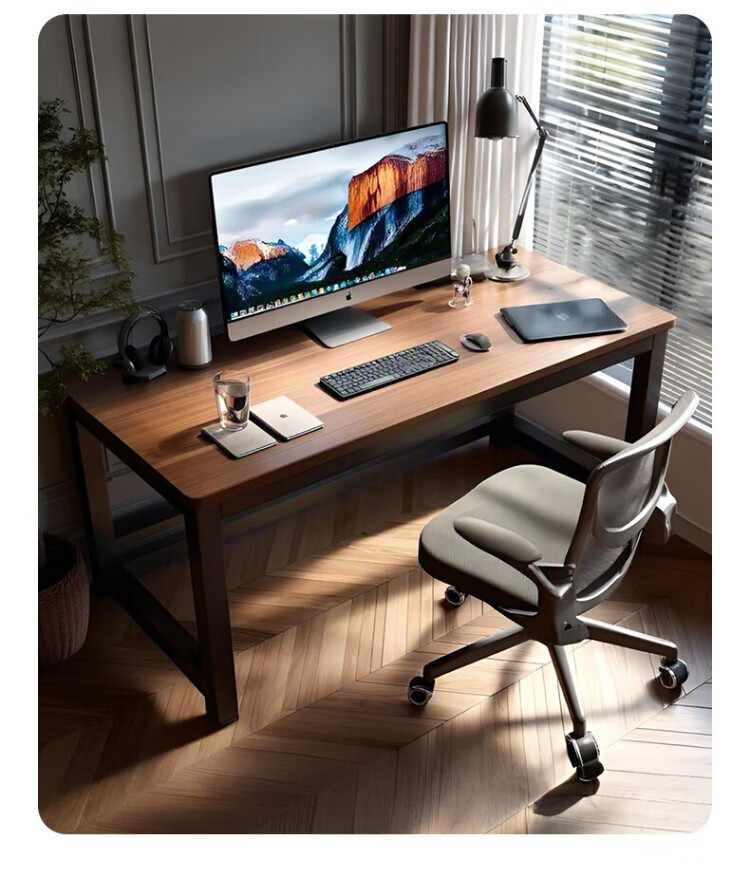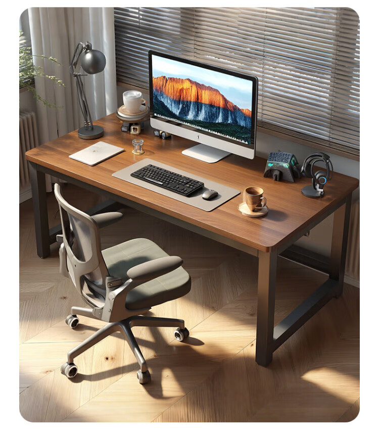 Jike computer desk, home e-sports game table, desktop office study desk, writing desk and chair, long table workbench, hot-selling welfare model, walnut color + black frame, length 80CM*width 50CM*height 74CM