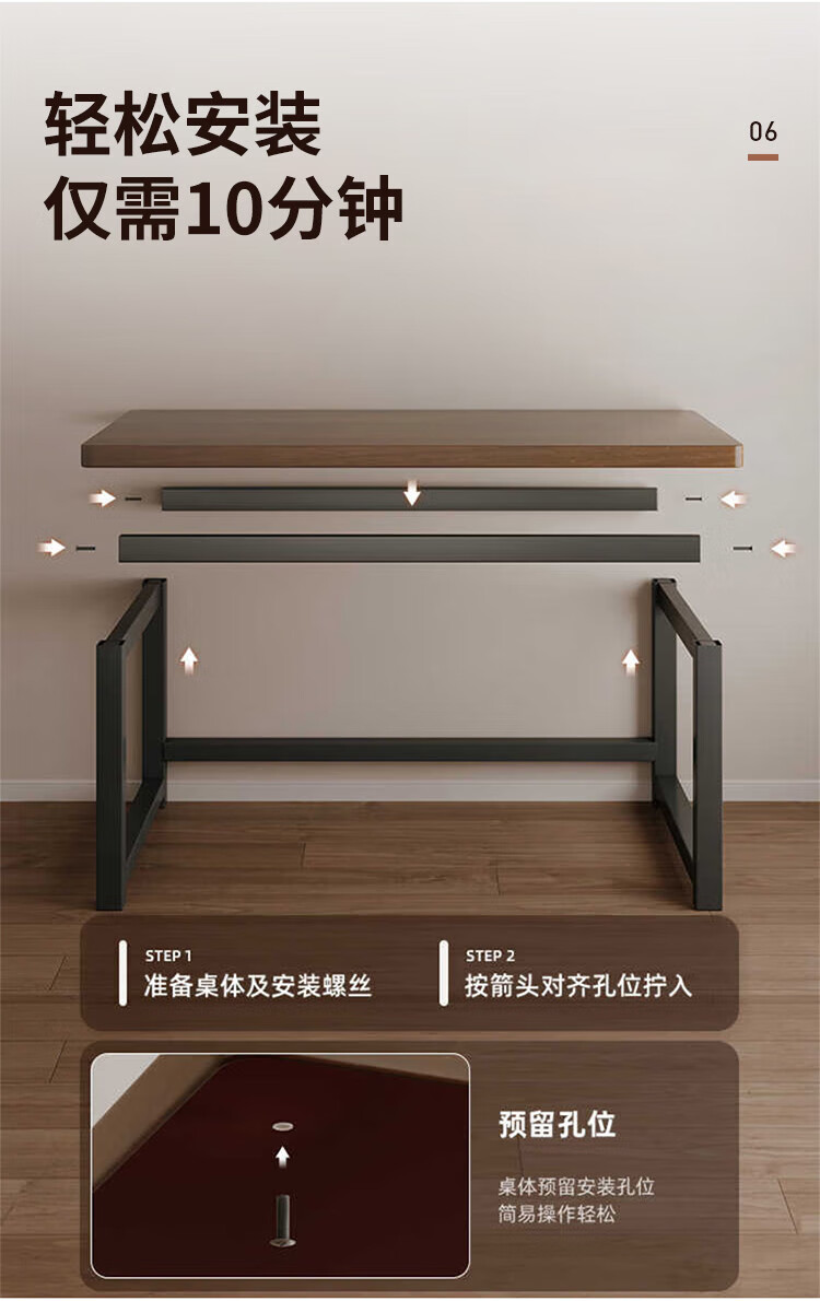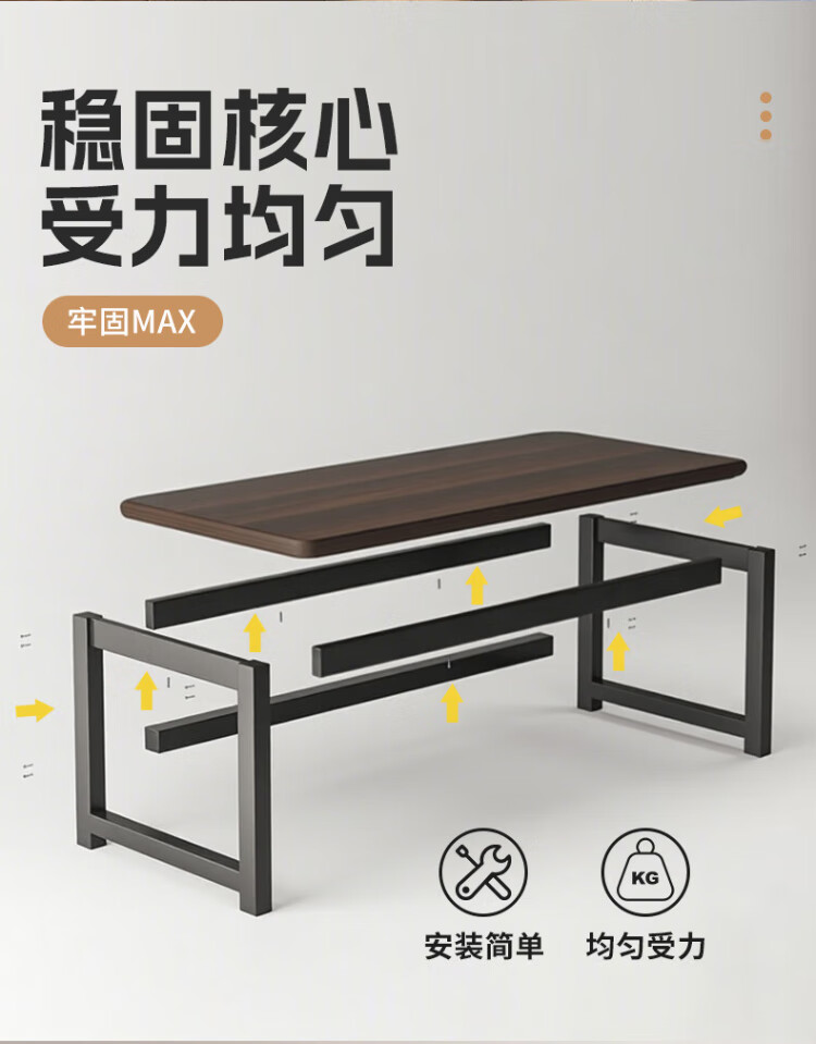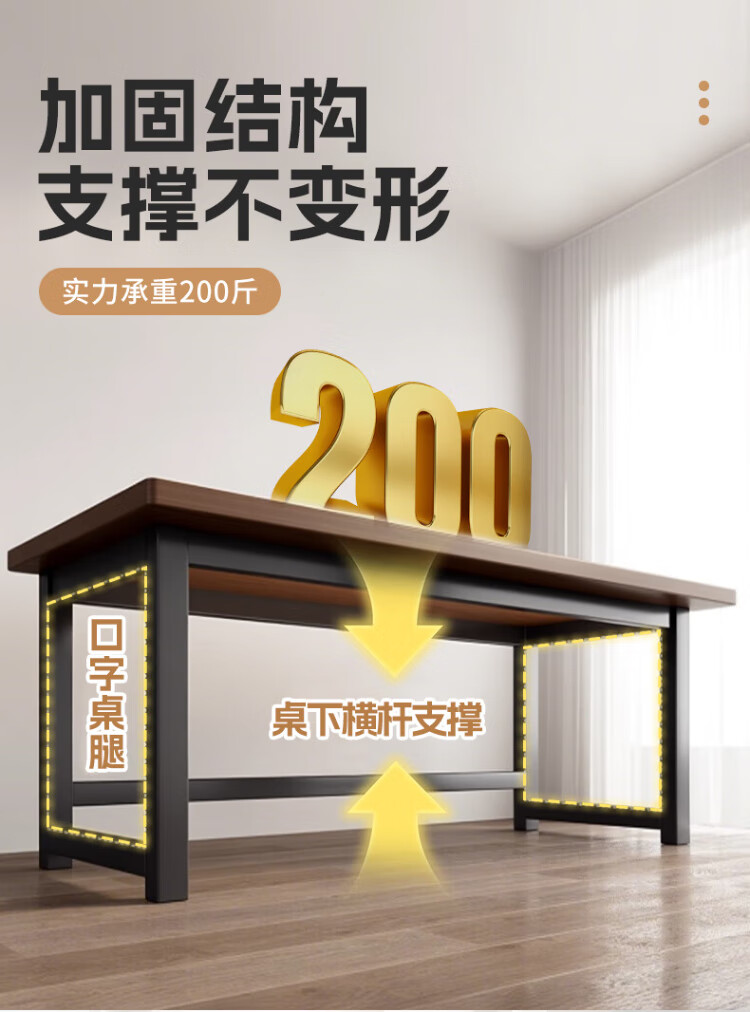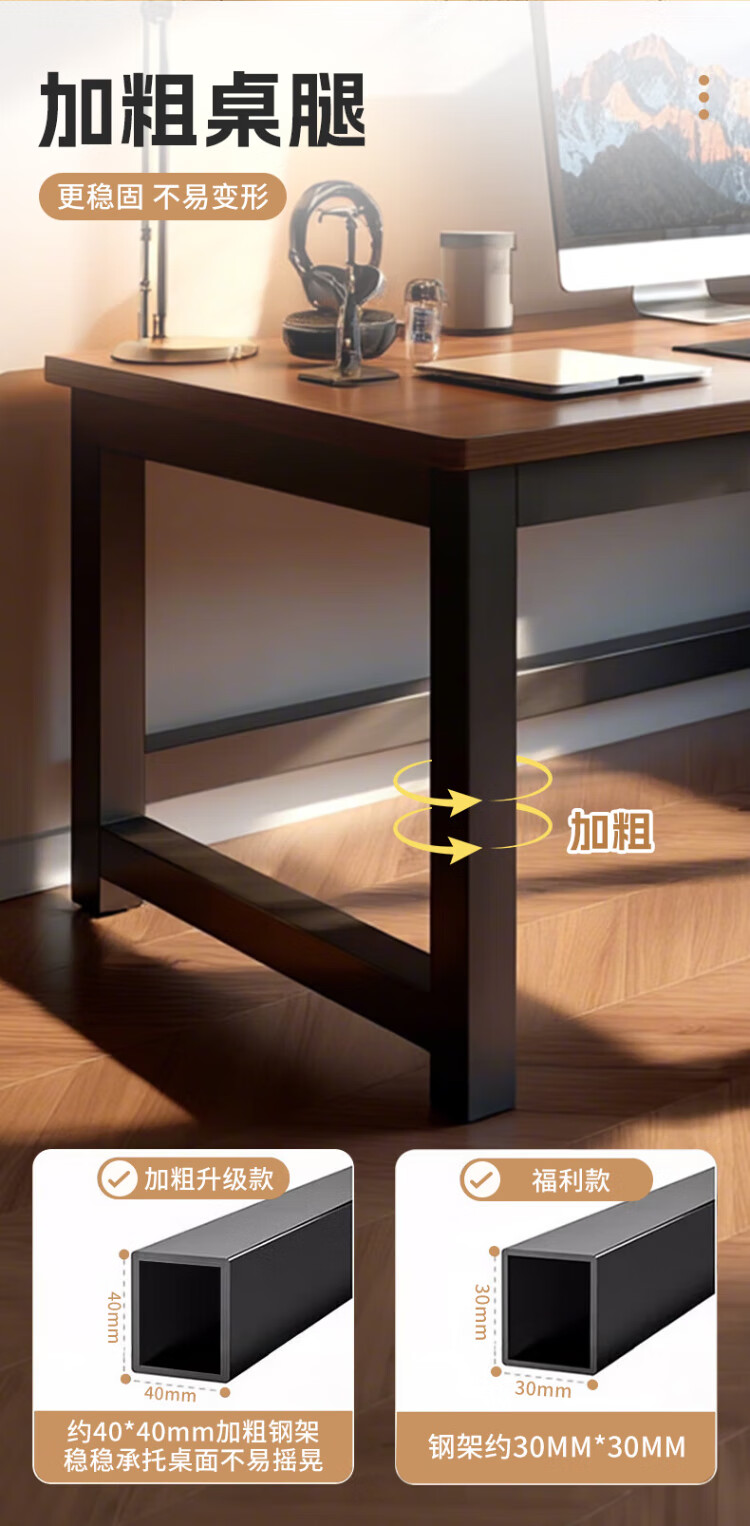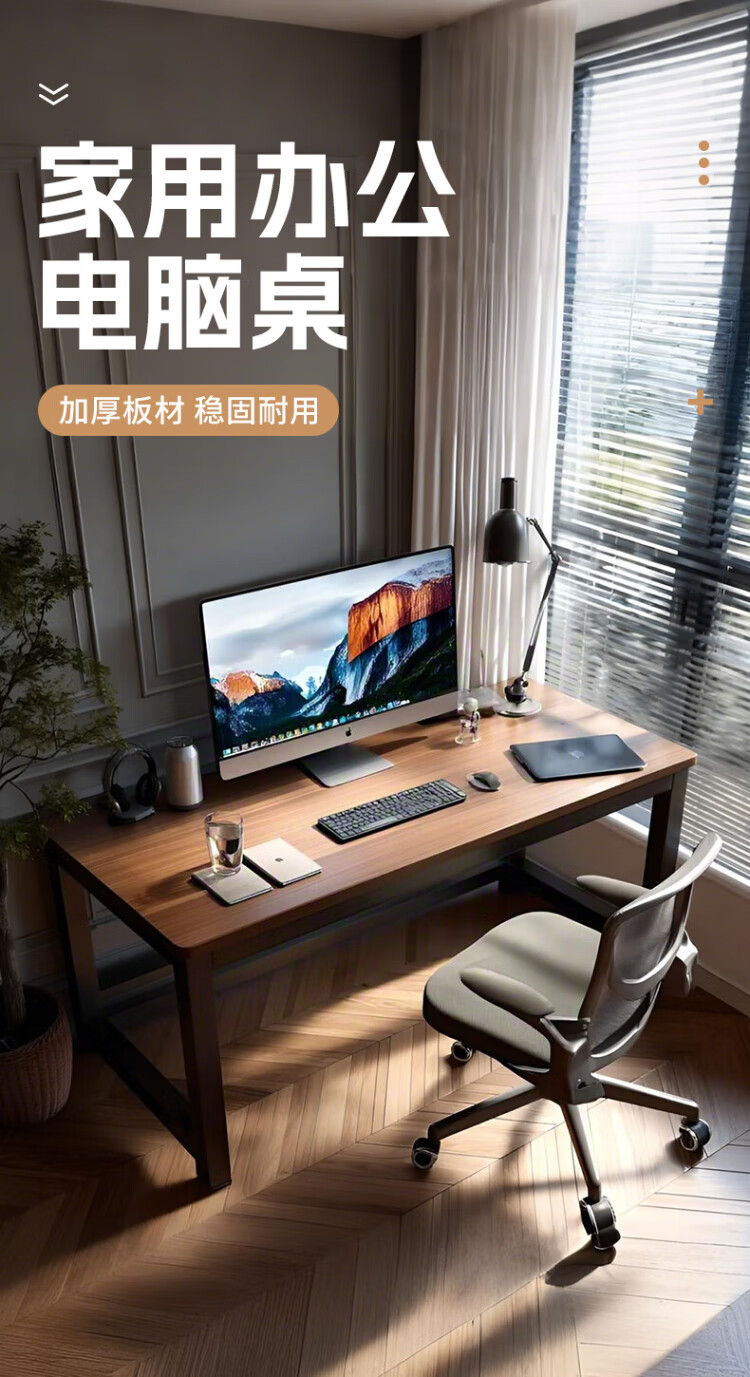 Jike computer desk, home e-sports game table, desktop office study desk, writing desk and chair, long table workbench, hot-selling welfare model, walnut color + black frame, length 80CM*width 50CM*height 74CM