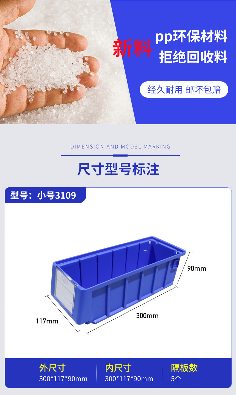 Youlechu separated plastic storage parts box shelf screw material grid hardware classification small size 300*117*90 (no partition)