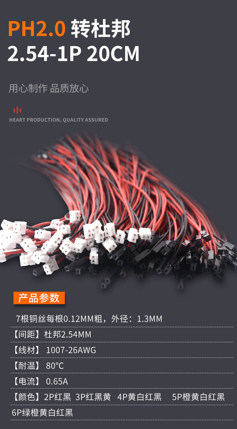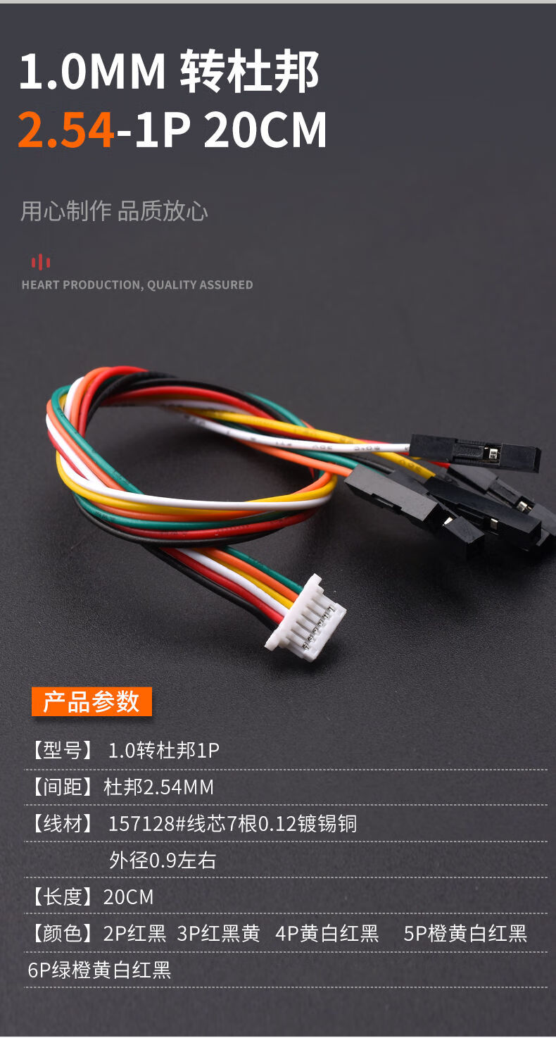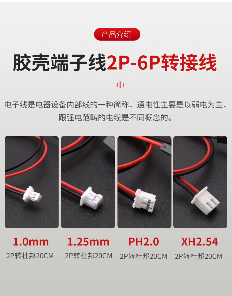 DuPont 2.54-1p to XH2.54/PH2.0/1.0/1.25mm plastic shell terminal cable 2P-6P adapter cable 1.0mm 8P to DuPont 2.54-1P 20cm