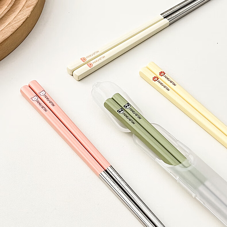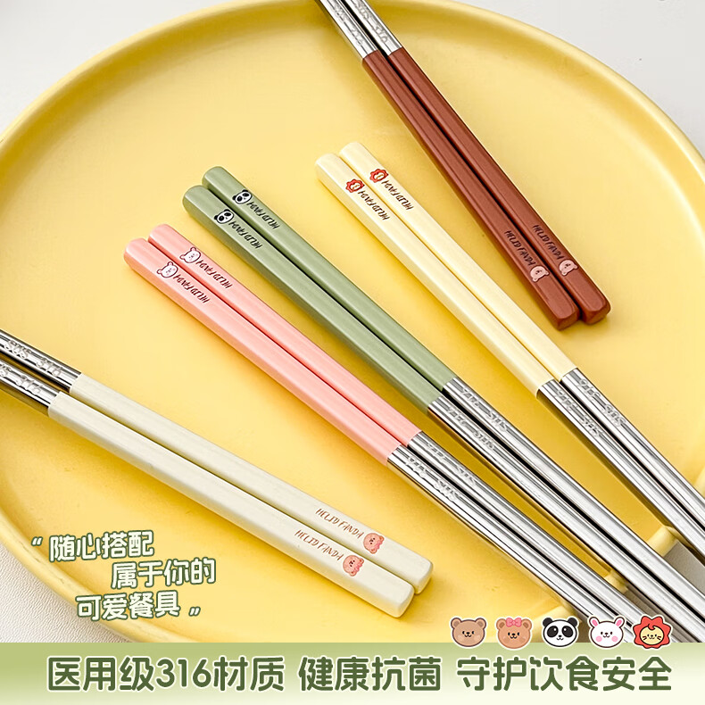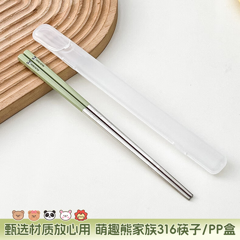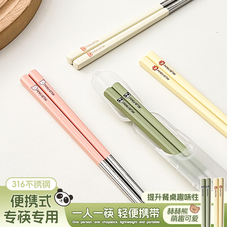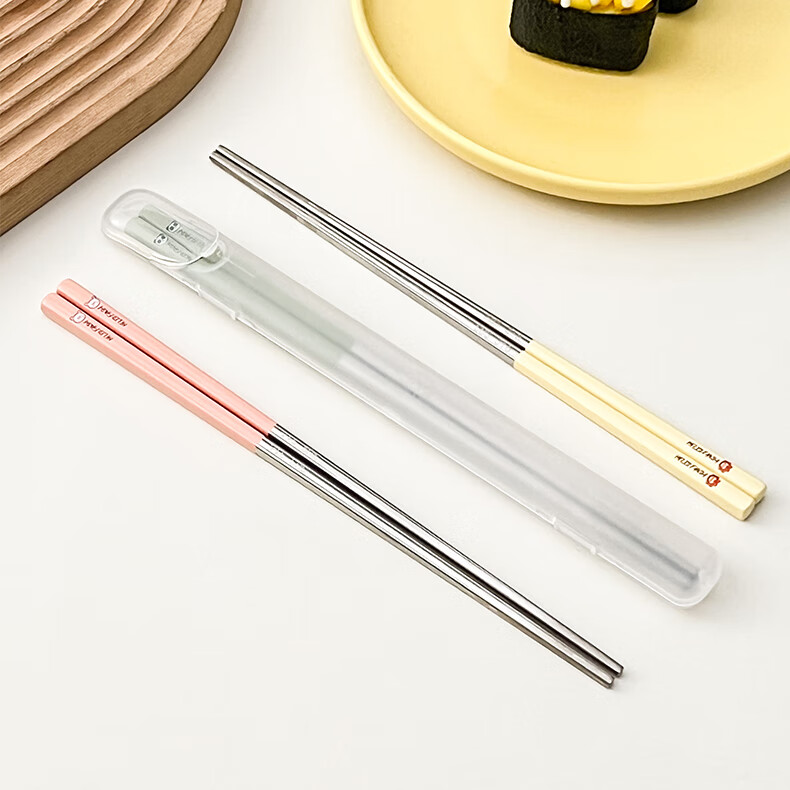 WORTHBUY portable tableware 316 stainless steel non-slip antibacterial chopsticks for one person office worker travel chopsticks personal special chopsticks antibacterial 316 dada lion yellow single pack + box
