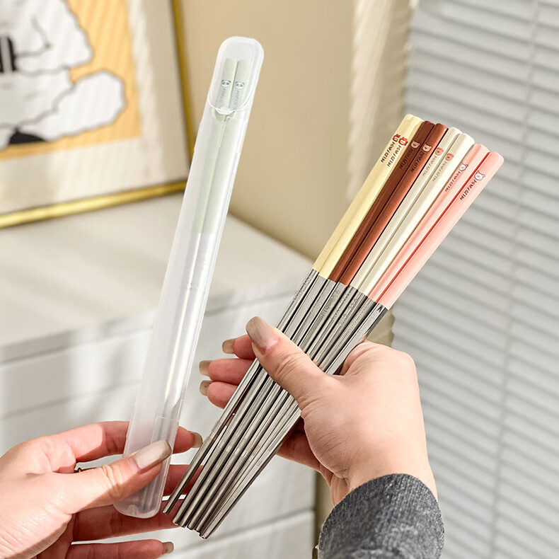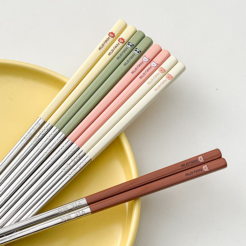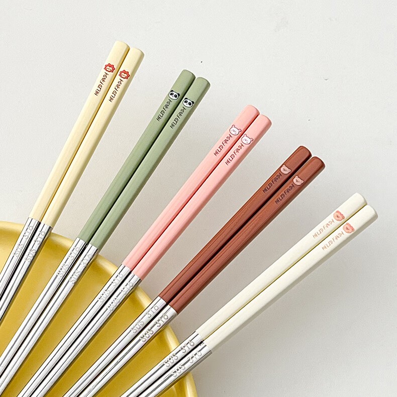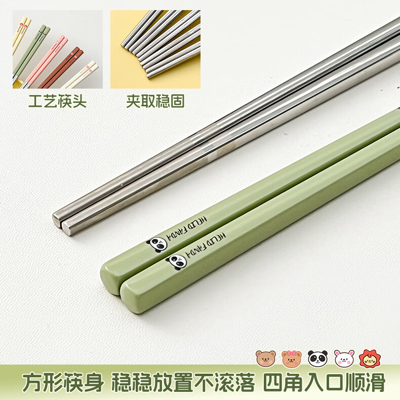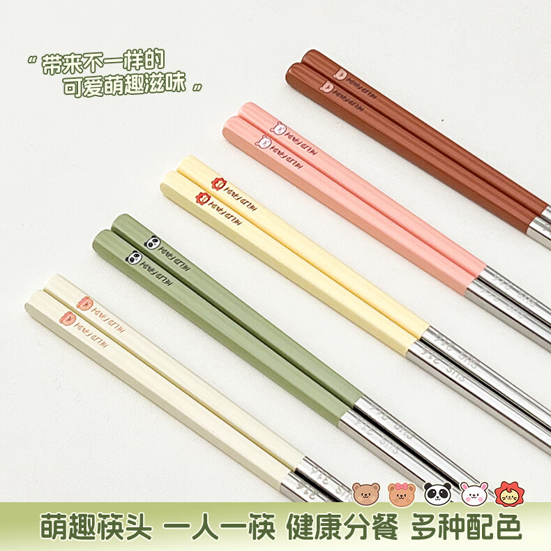 WORTHBUY portable tableware 316 stainless steel non-slip antibacterial chopsticks for one person office worker travel chopsticks personal special chopsticks antibacterial 316 dada lion yellow single pack + box