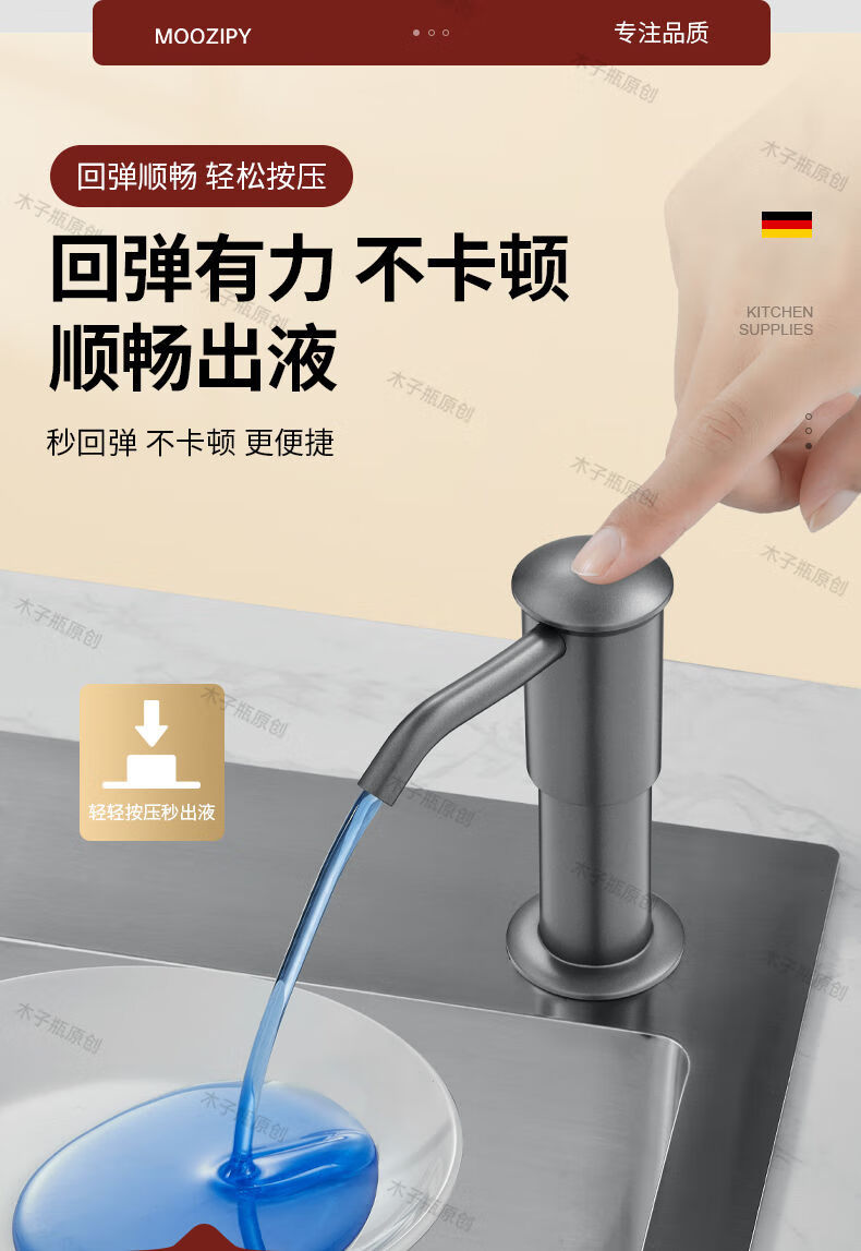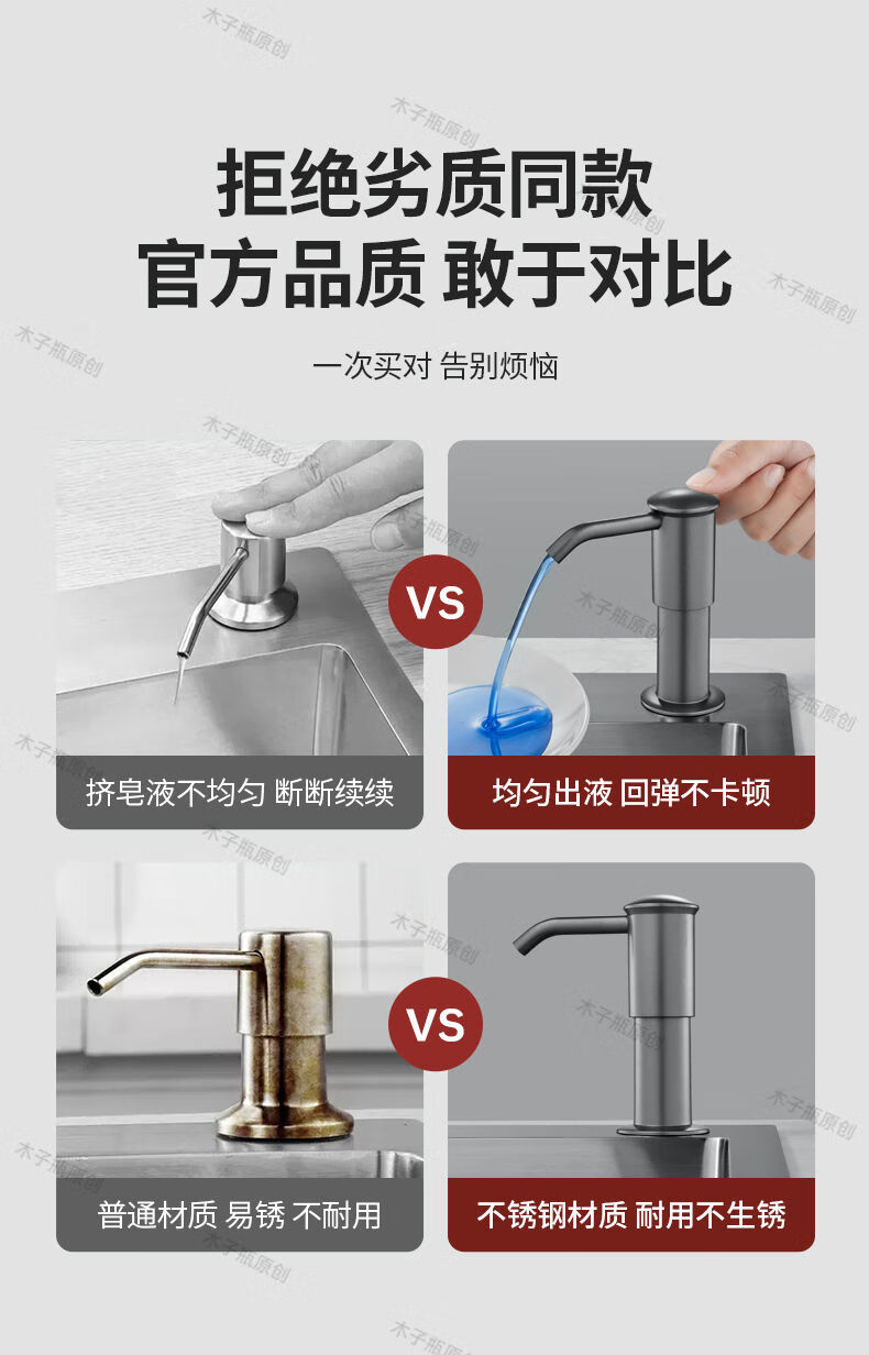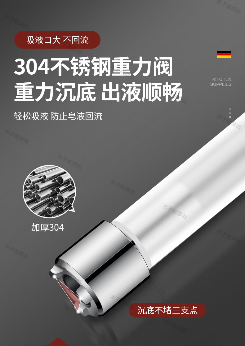 Kezitu Kitchen Dishwashing Liquid Sink Press 304 Stainless Steel Soap Dispenser Washing Dishwashing Extension Tube Pressing Artifact Black Thickened 304 Stainless Steel Press More Smoothly