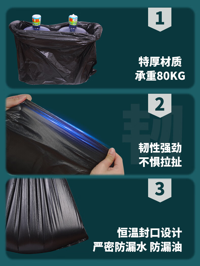 Large thickened garbage bag black commercial catering property hotel 60x80 sanitation extra large extra large thickened for kitchen 55*65CM thickened 3.5 silk 200 pieces + 2 rolls 60 pieces thickened