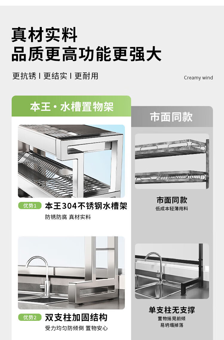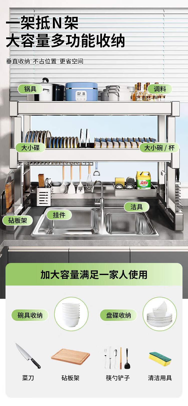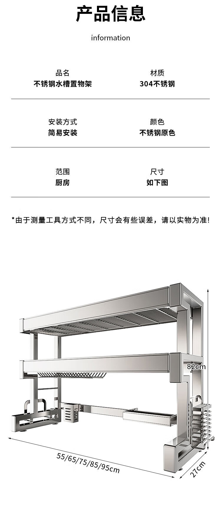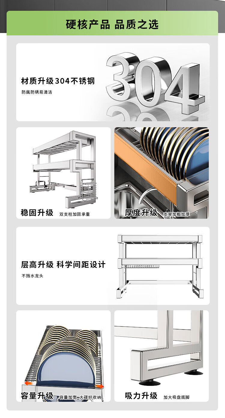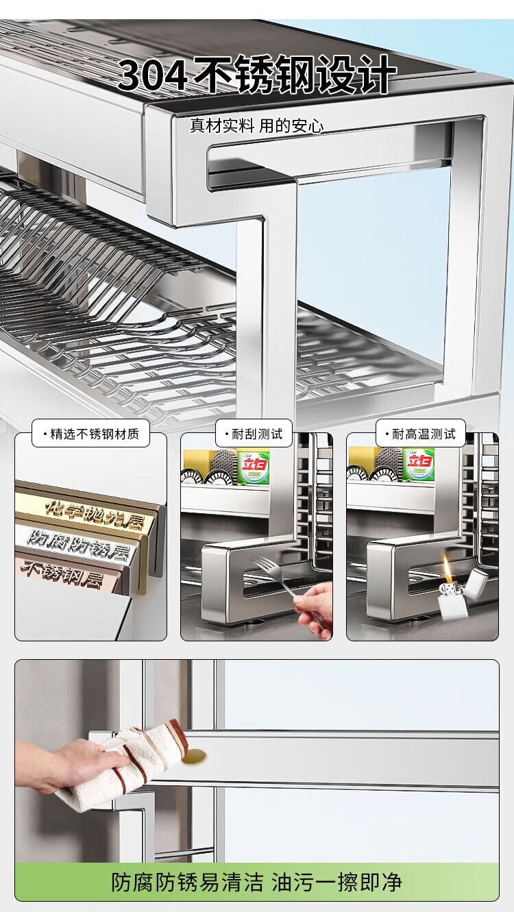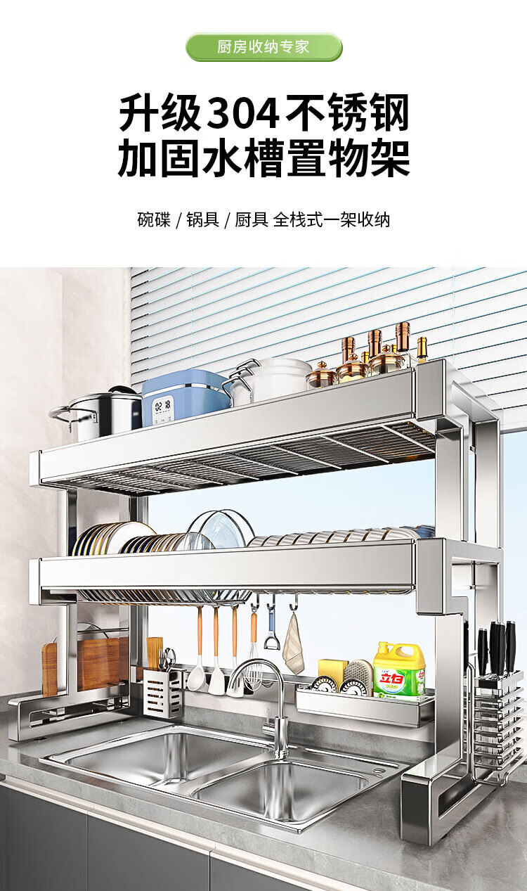 Youxi 304 stainless steel kitchen sink rack multi-functional drain bowl rack bowl rack knife and chopstick tube storage rack 304 steel single layer 85cm main rack + fully equipped set 304 stainless steel