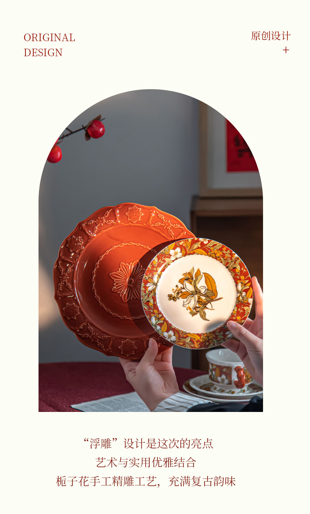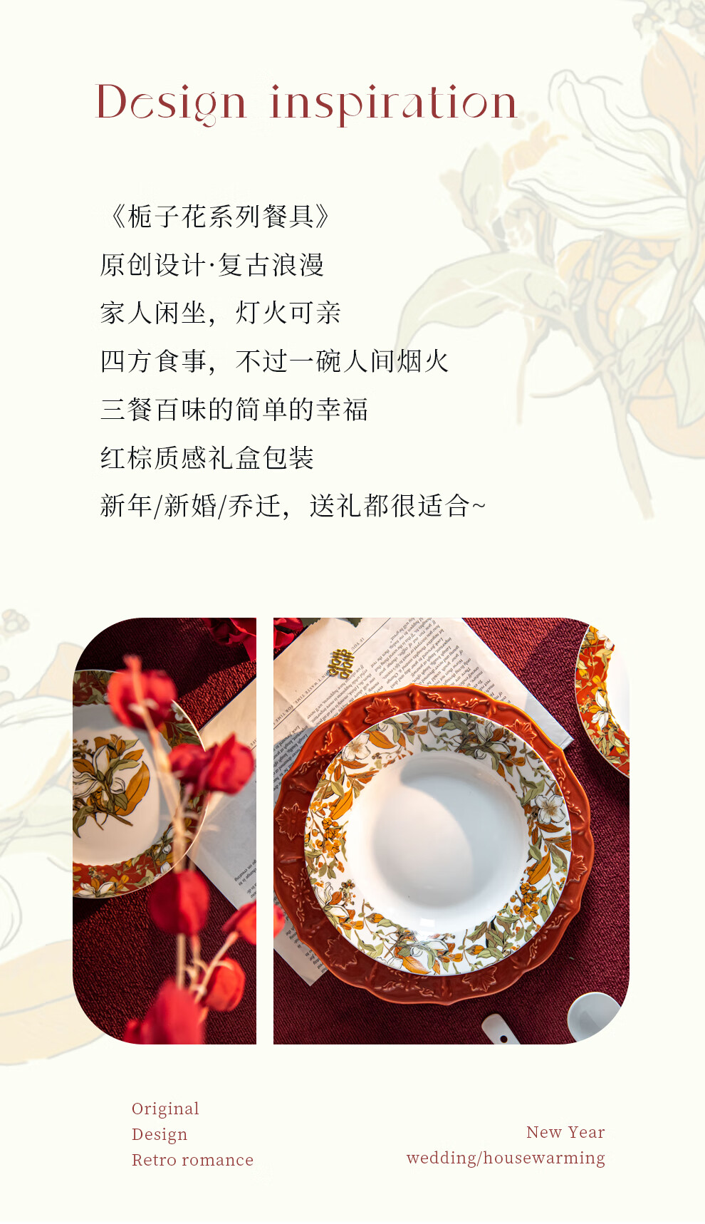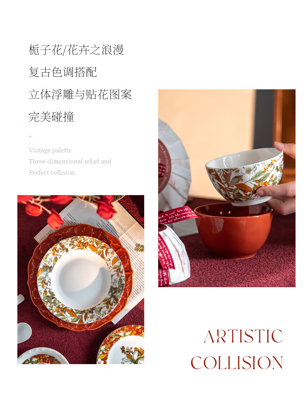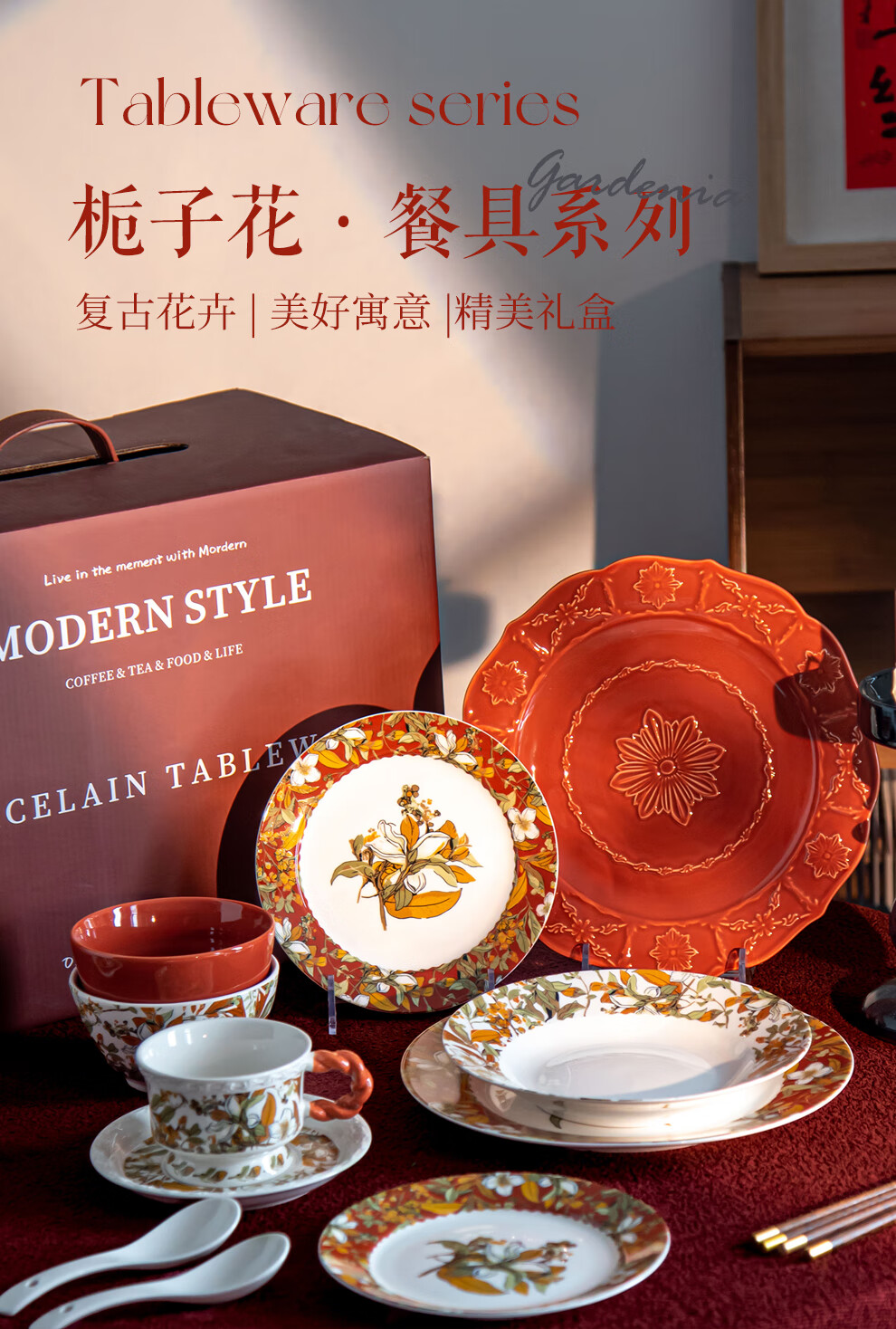 SUCCOHOMEWARE Retro Gardenia Tableware Set Gift Box French Embossed Ceramic Bowl and Plate Set Wedding Gift Moving House Food for 2 + Gift Box Sydney Paper (JD Logistics) Fast delivery to the next day