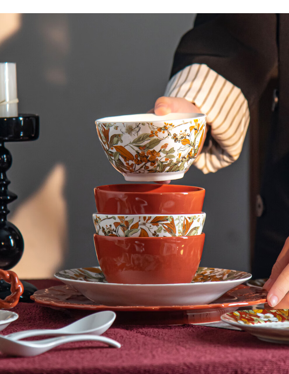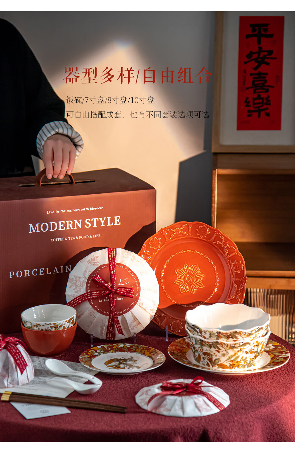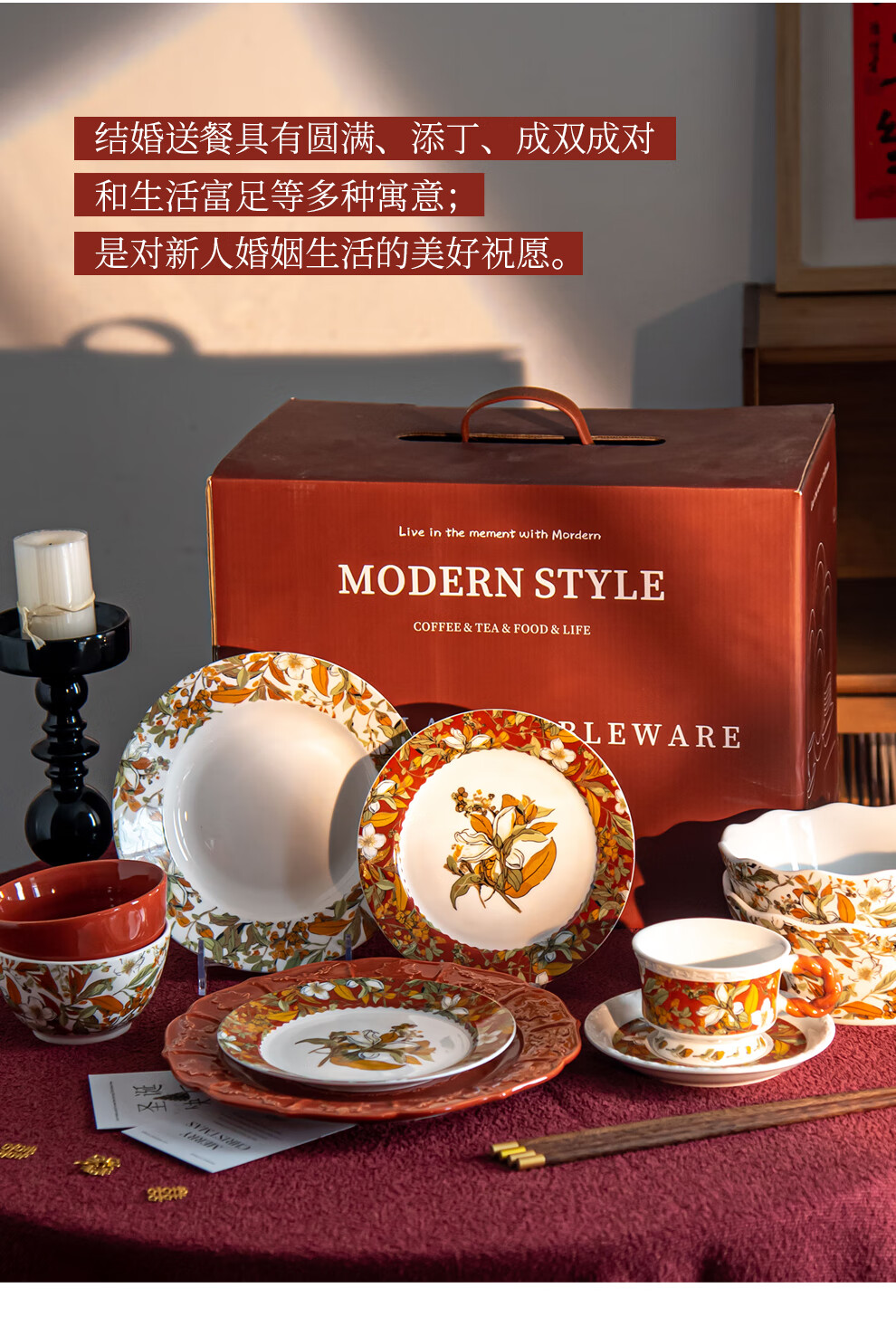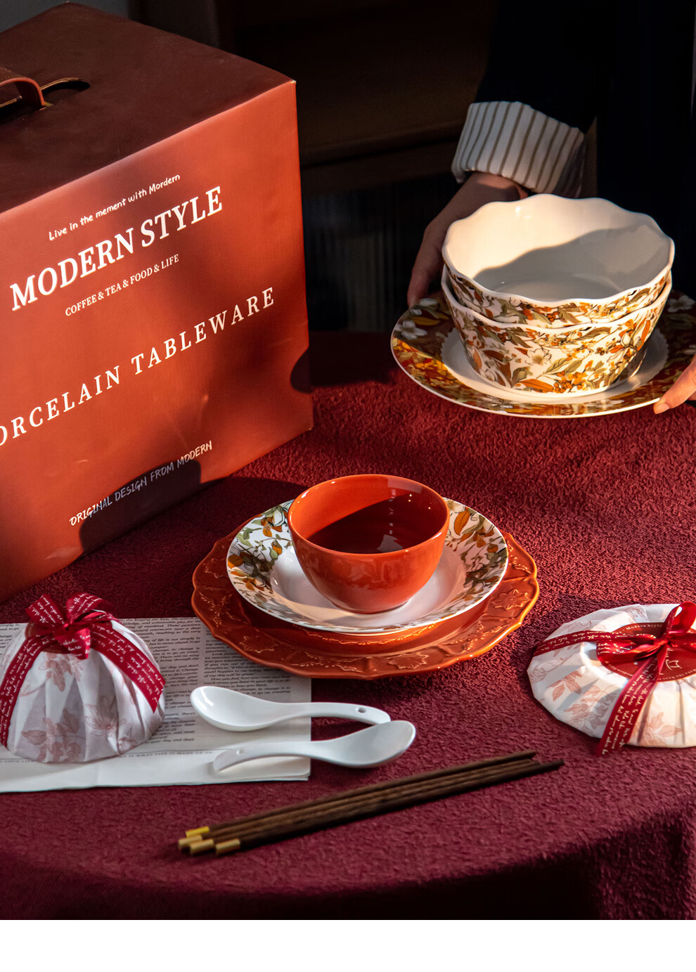 SUCCOHOMEWARE Retro Gardenia Tableware Set Gift Box French Embossed Ceramic Bowl and Plate Set Wedding Gift Moving House Food for 2 + Gift Box Sydney Paper (JD Logistics) Fast delivery to the next day
