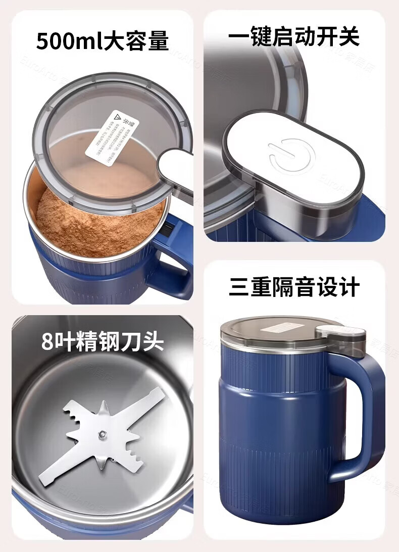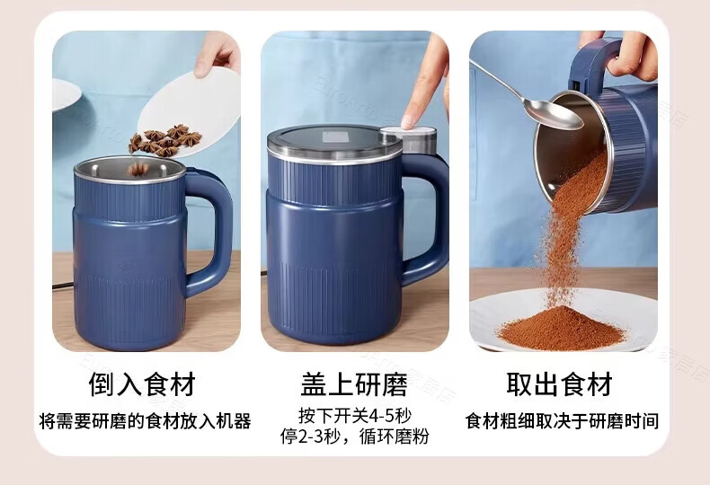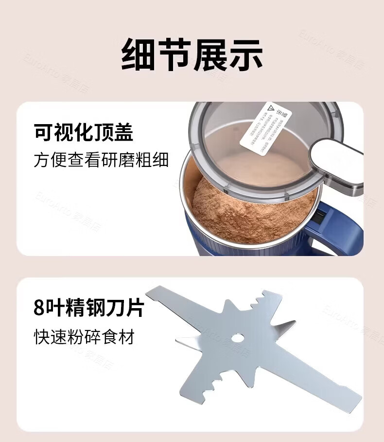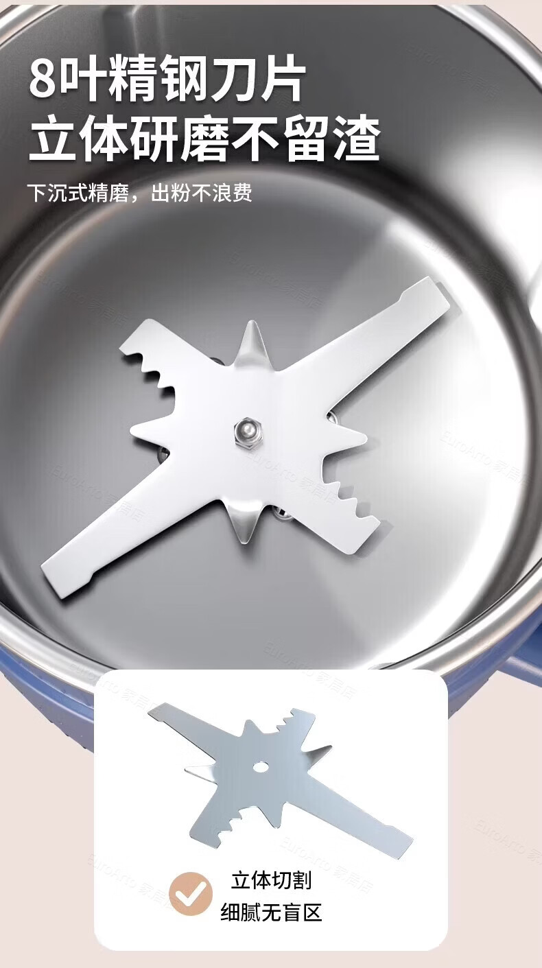 KDISV German grinding mill grinding small flour grinding household grinder Chinese medicine grains coffee nuts ultra-fine luxury model blue-copper movement-stainless steel blade (2 sets of blades in total) stainless steel household commercial electric seasoning pepper aniseed multi-function grinder