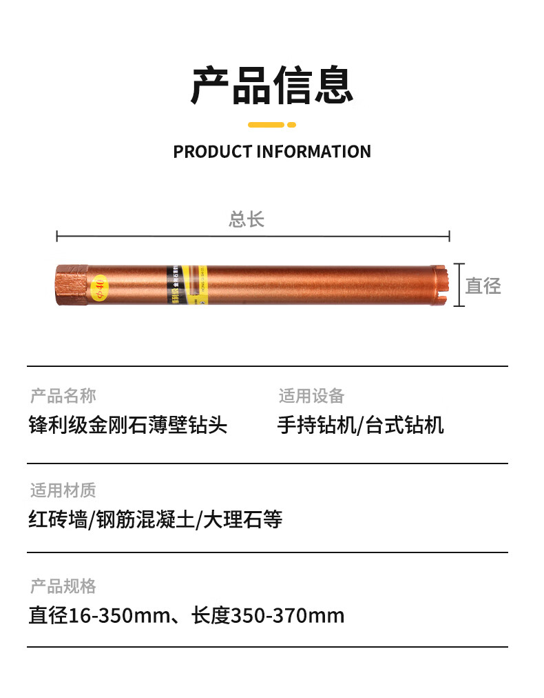 Red Knight water drill bit brick wall reinforced concrete hole opener dry and wet dual-use air conditioning drilling artifact dry water turning head super economical steel bar-168x350mm