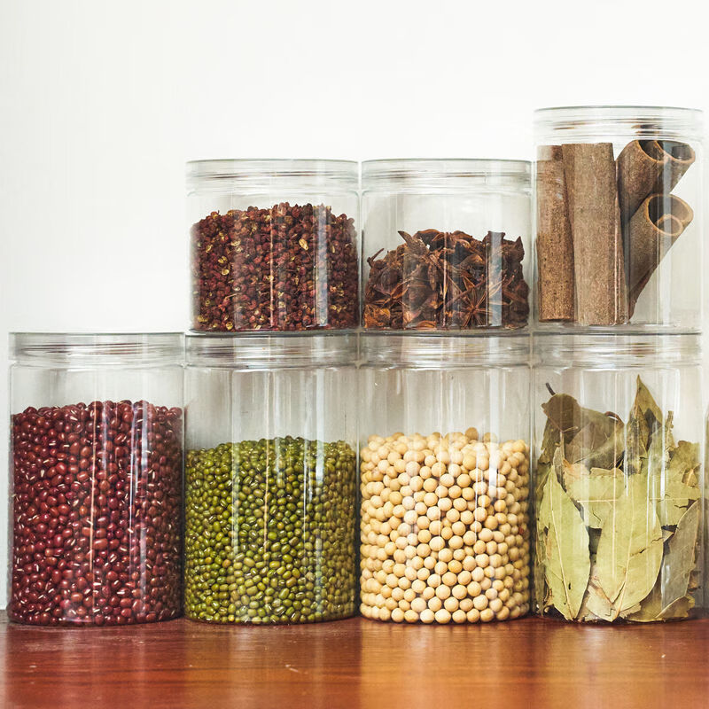 Runhuanian 10 pieces transparent plastic sealed kitchen grain storage food storage jar snack crisper bottle transparent lid 700ml 10 pieces