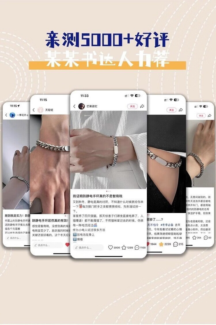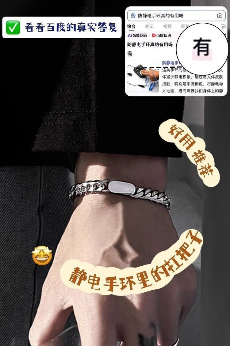 Changsang Bracelet Men's Bracelet Women's Wireless Anti-Human Body Static Eliminator Artifact Winter Men's Titanium Steel Wristband Anti-static Bracelet Waterproof No Blackening 1 Pack OPP