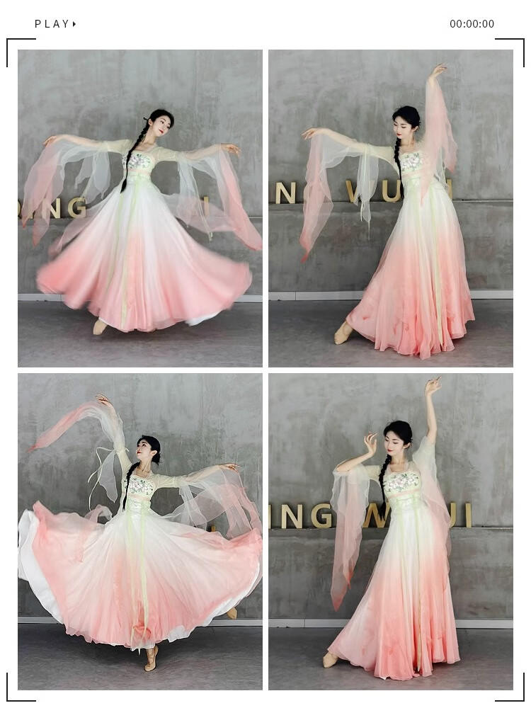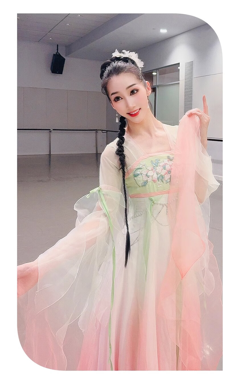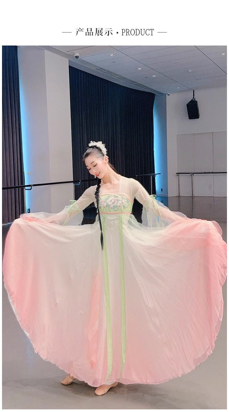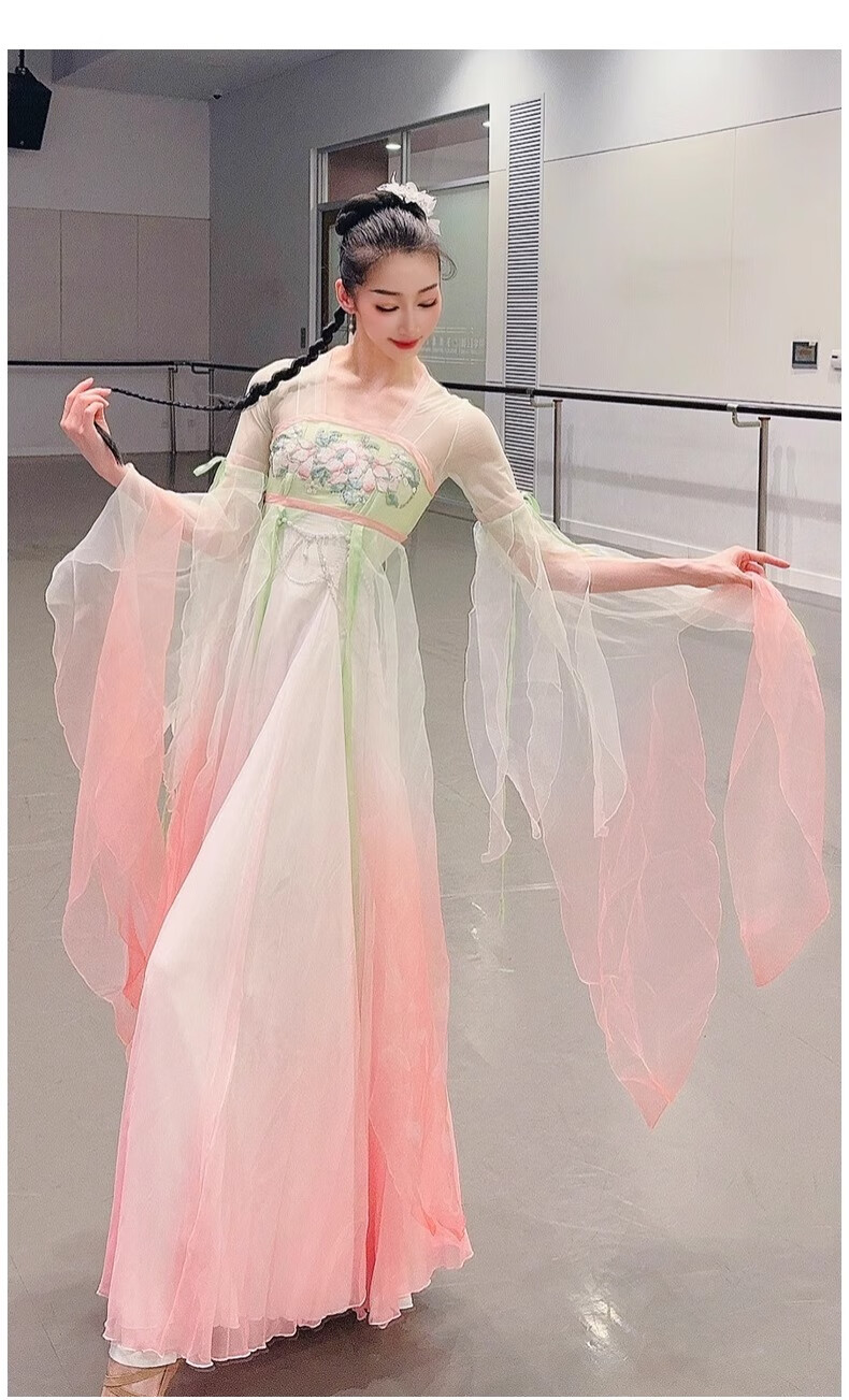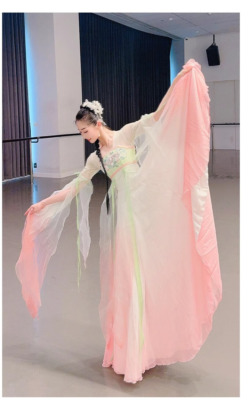 FEILUOMAN classical dance clothing elegant yarn new classical dance performance practice clothes for women Chinese style gradient dress super fairy pink and green gradient color does not include waist chain M adult size one size