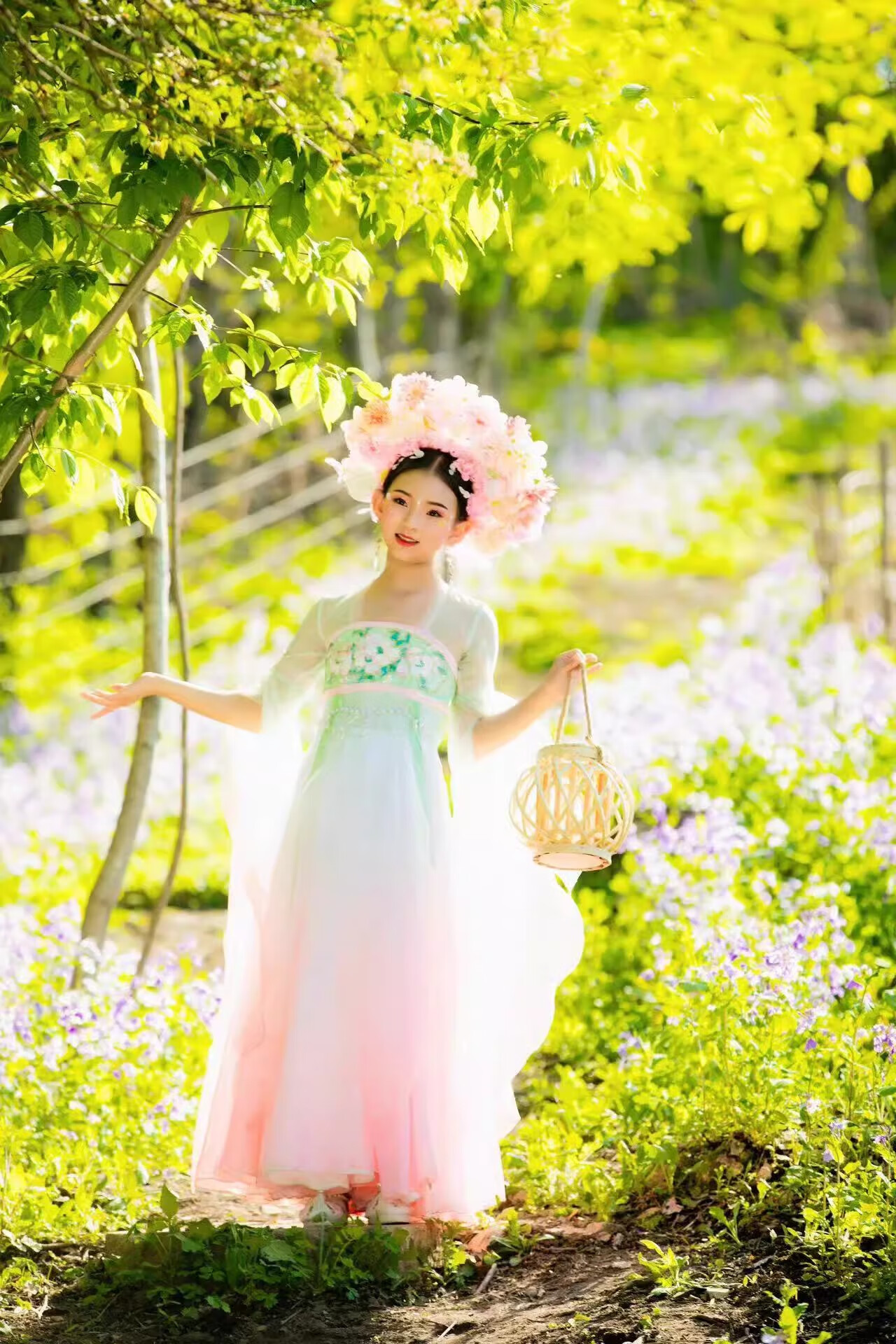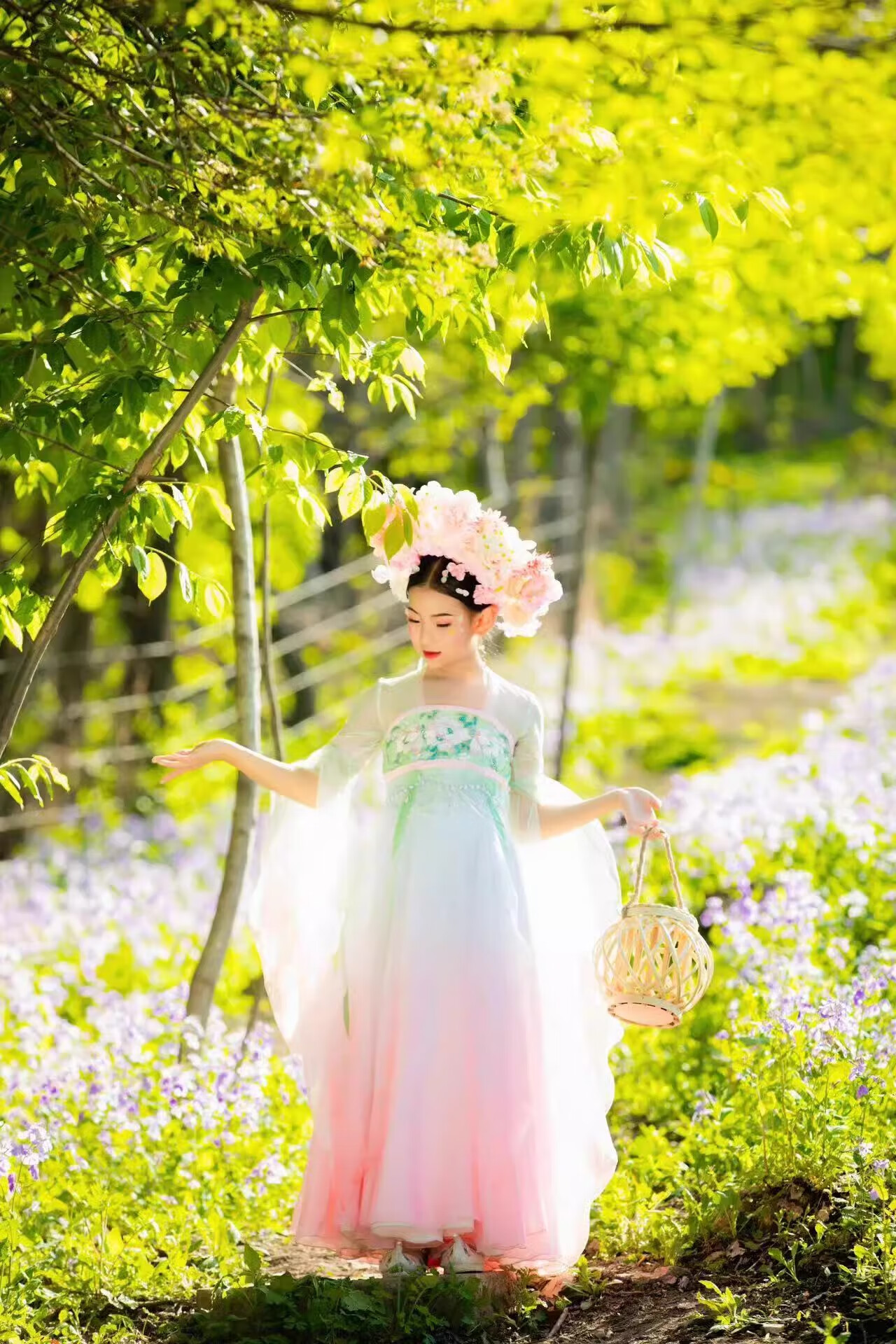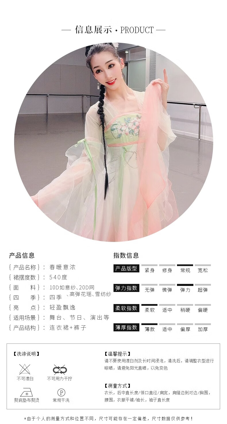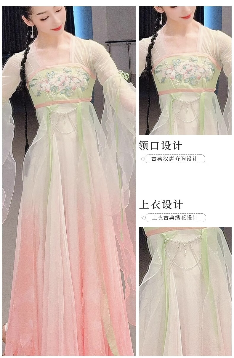 FEILUOMAN classical dance clothing elegant yarn new classical dance performance practice clothes for women Chinese style gradient dress super fairy pink and green gradient color does not include waist chain M adult size one size