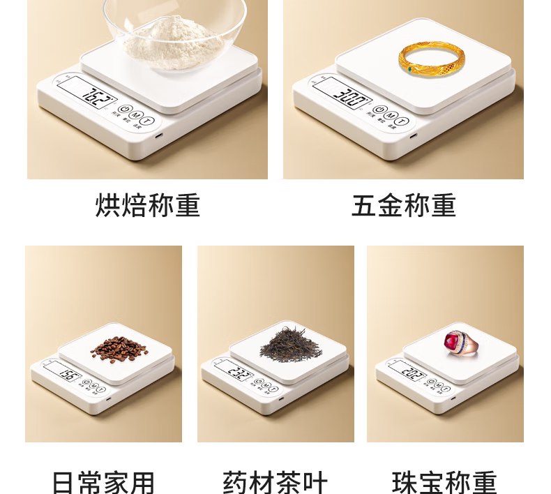 Jingyan Electronic Scale Kitchen Scale Rechargeable Small Gram Scale Household Food Scale High-Precision 0.1g Baking Scale Coffee Jewelry Scale Upgraded High Sensitivity Sturdy and Fall-resistant Rechargeable 0.1g/5kg HD Waterproof Panel | Unit Conversion | Zero-set Tare | Long-lasting Battery Life