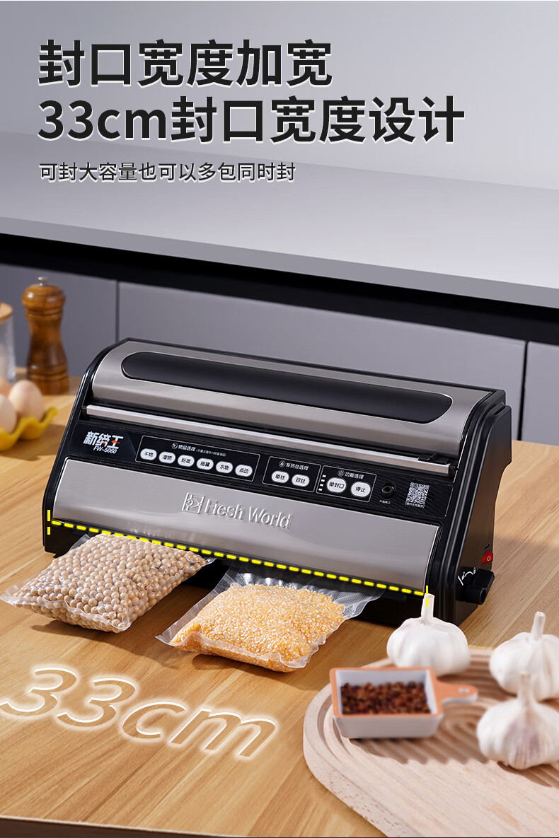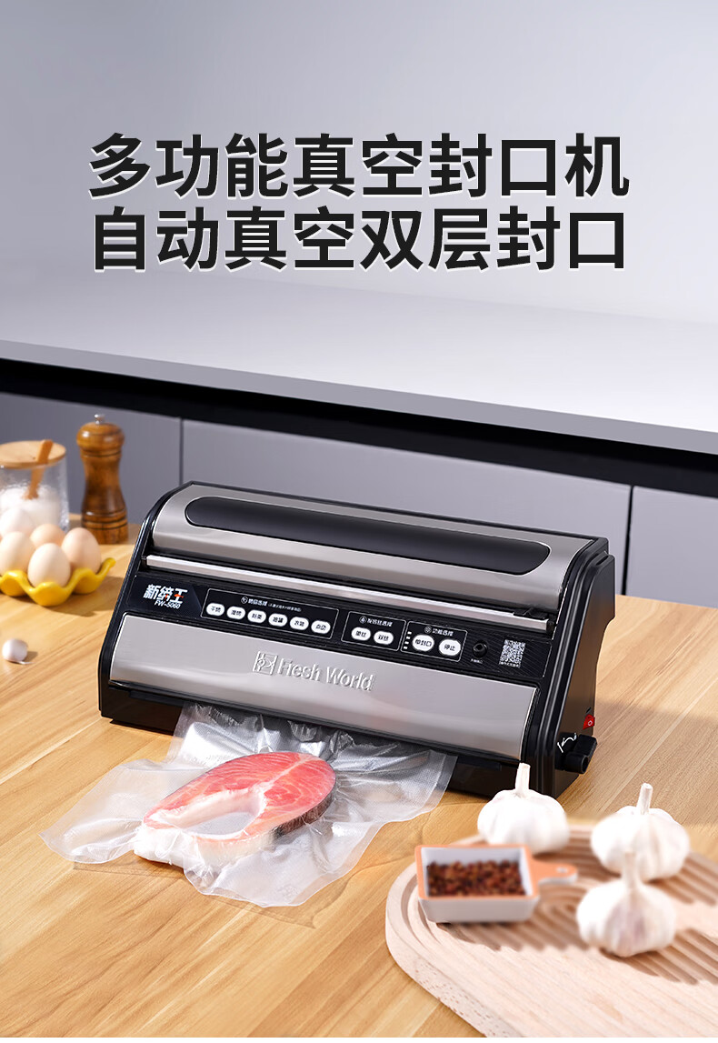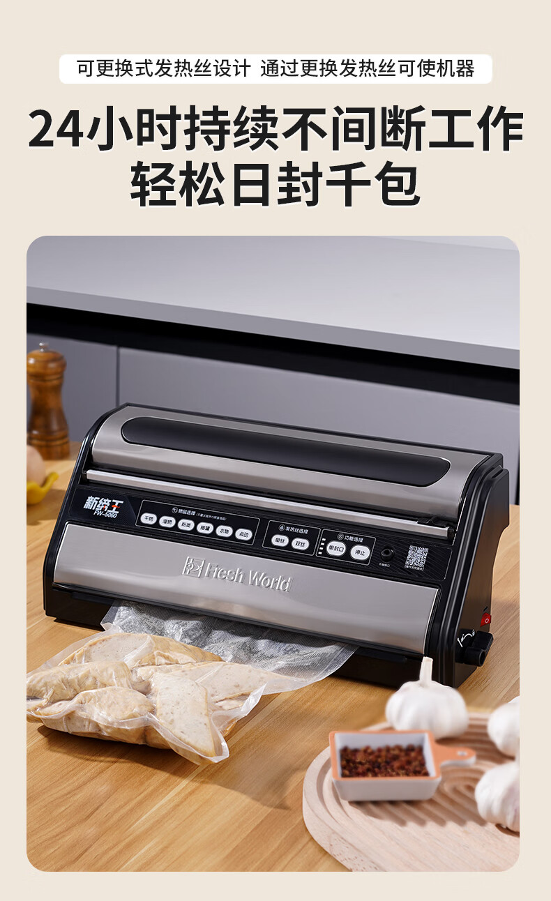 Fresh World vacuum sealing machine fully automatic household food preservation small packaging machine wet and dry commercial sealing machine 5060+17*25cm vacuum bag 100 pieces 33cm