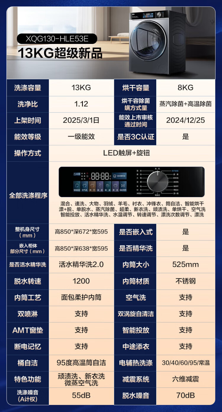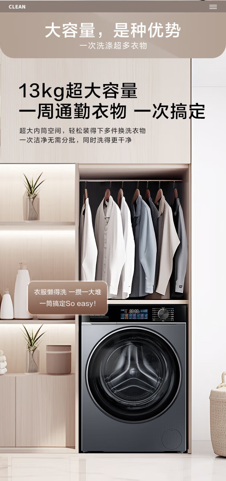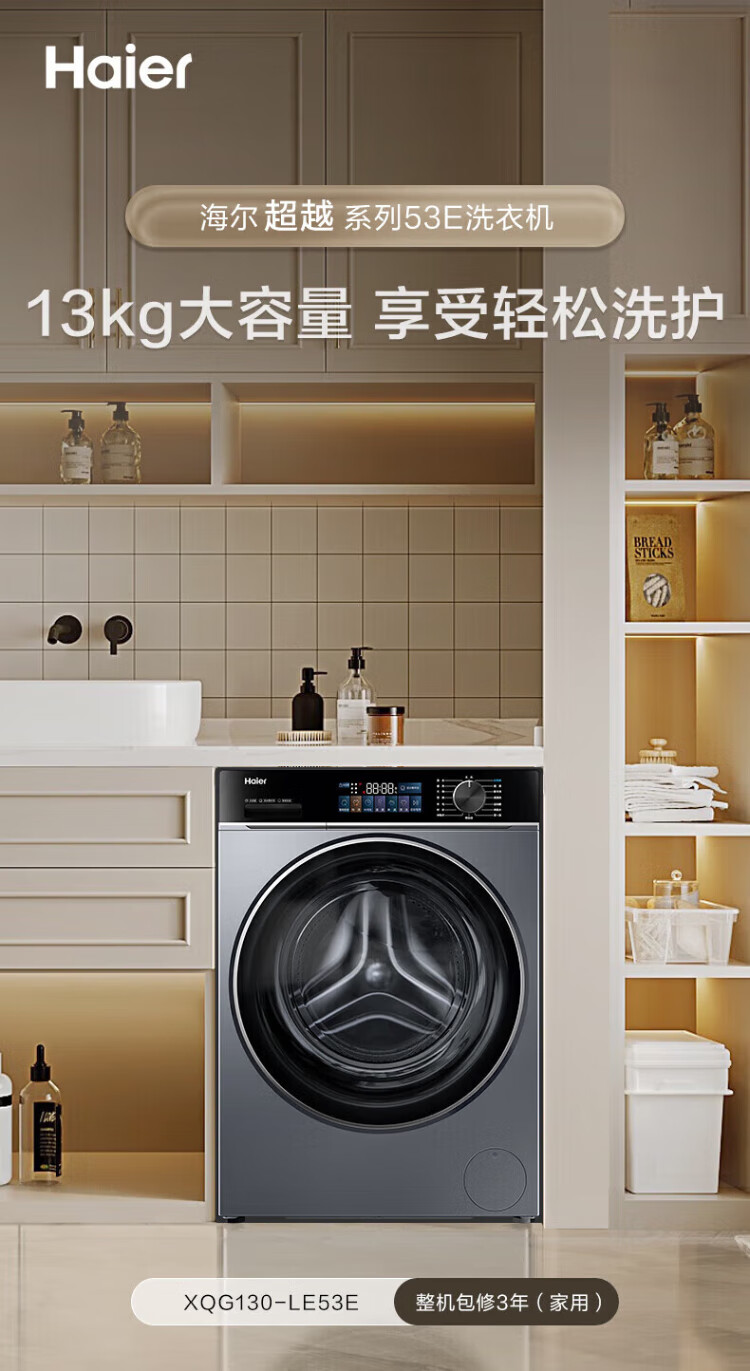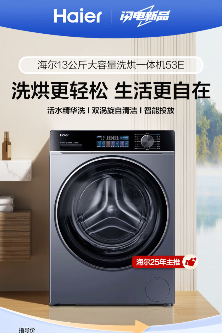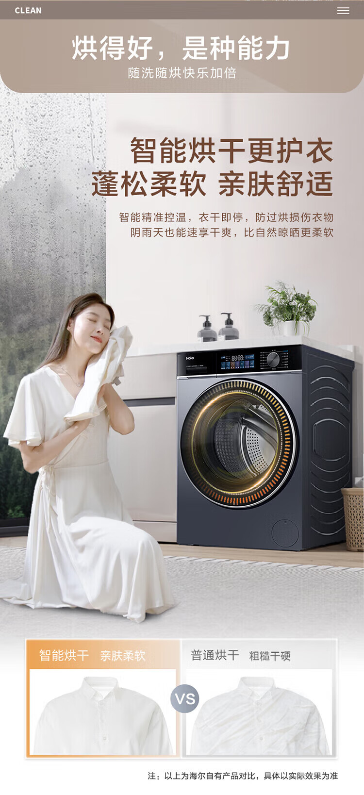 Haier 13kg large capacity fully automatic drum washing machine washing and drying machine lazy drum washing machine with drying essence wash trade-in state subsidy 20% washing machine 13kg washing and drying + essence washing + lint self-cleaning + 1.12 washing ratio