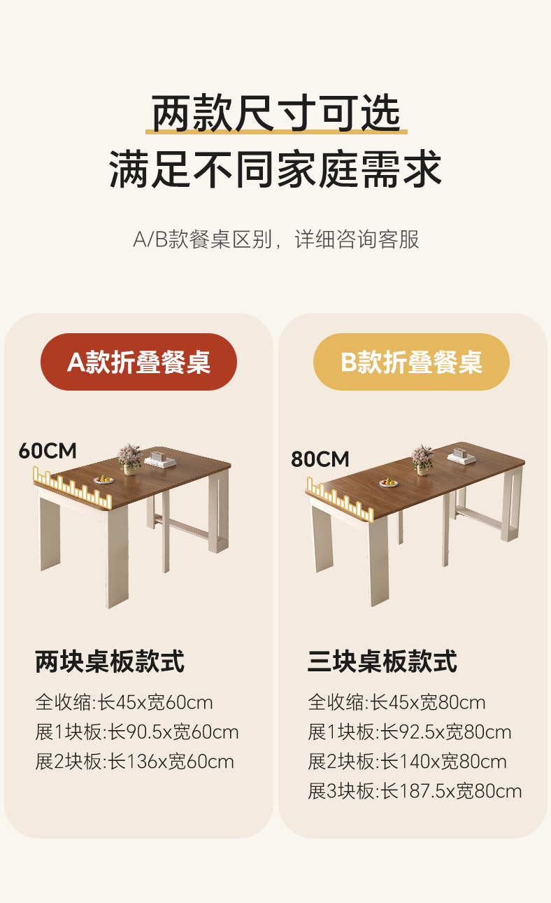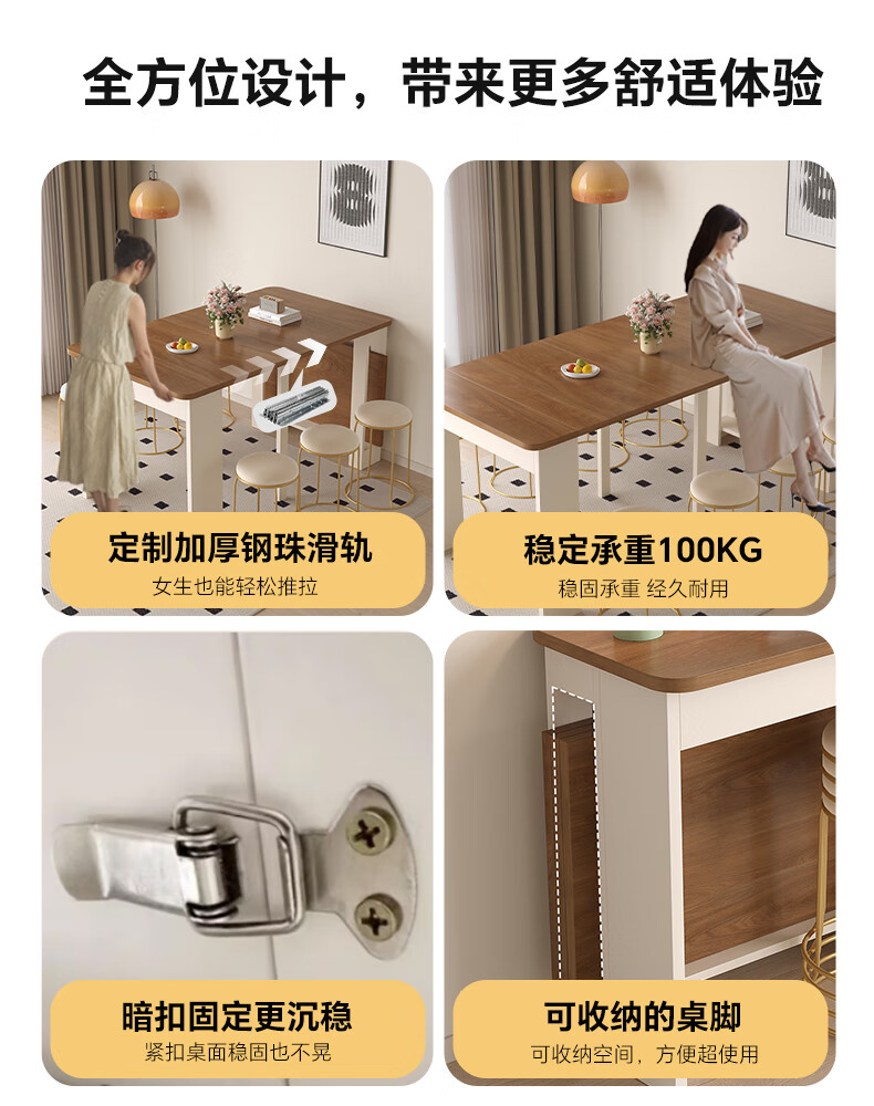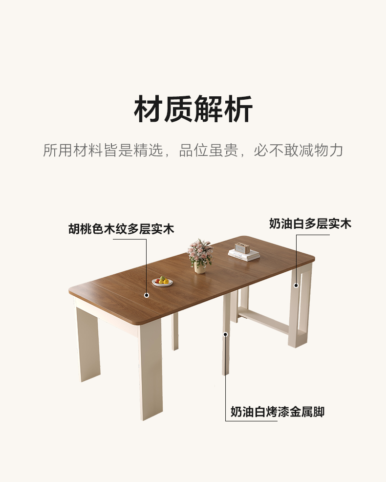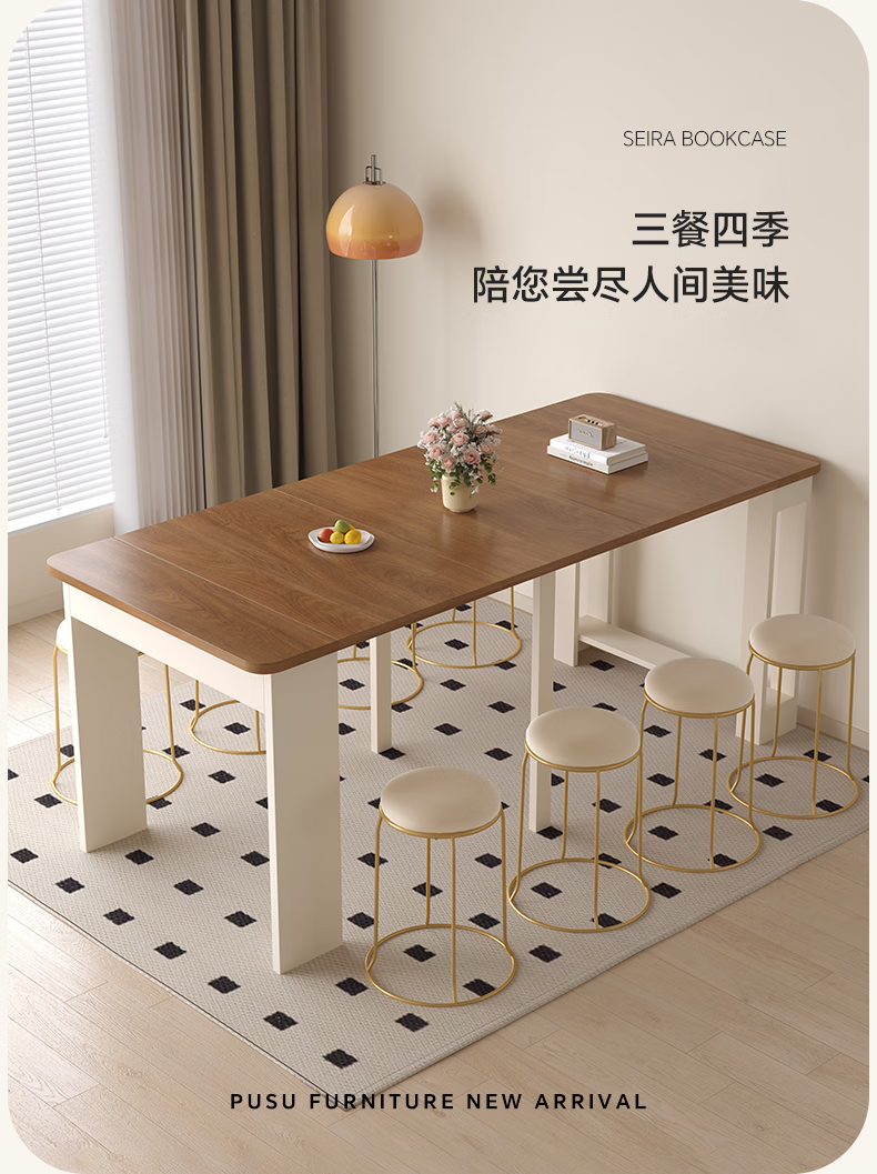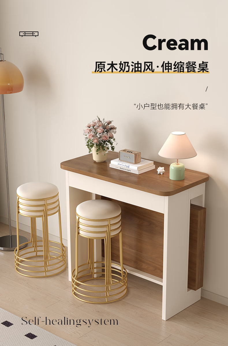Aozhiyin folding dining table retractable small apartment living room solid wood walnut color rectangular dining table and chairs dining table 0.6 meters / folding dining table / multi-layer solid wood