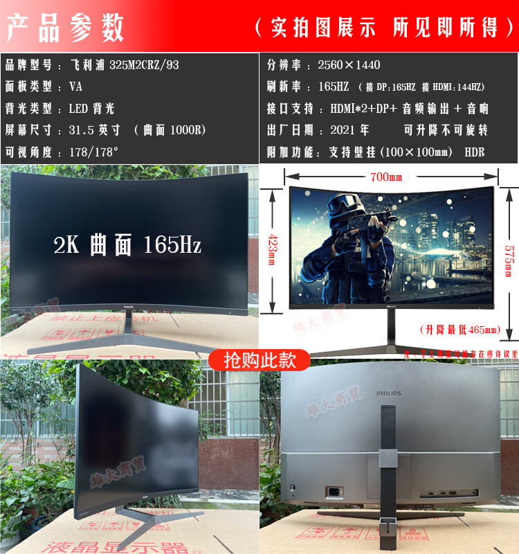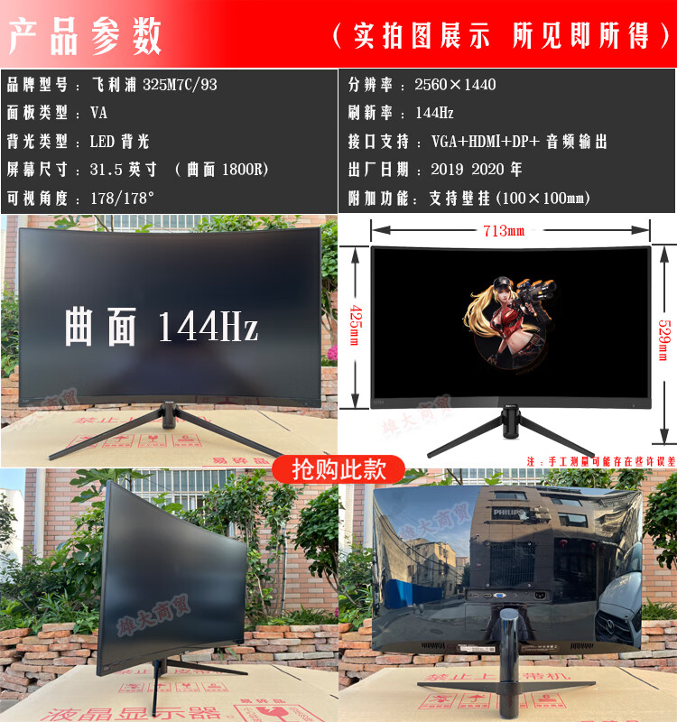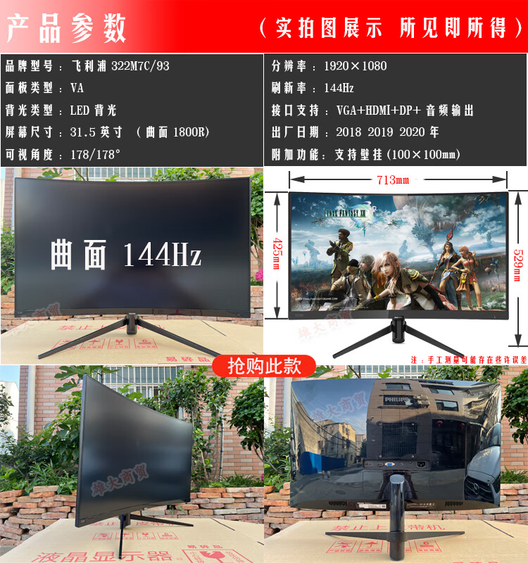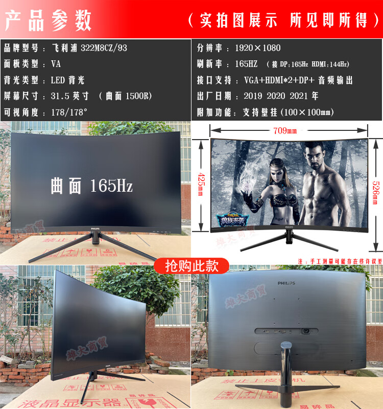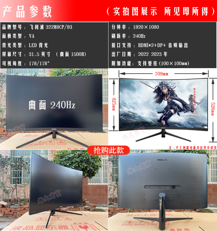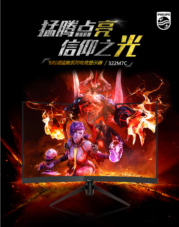 Second-hand 89% new Philips Mengteng 322M7C 32-inch monitor computer LCD borderless high-definition e-sports 144Hz screen Philips 322M8CZ 32-inch 1K curved 165HZ