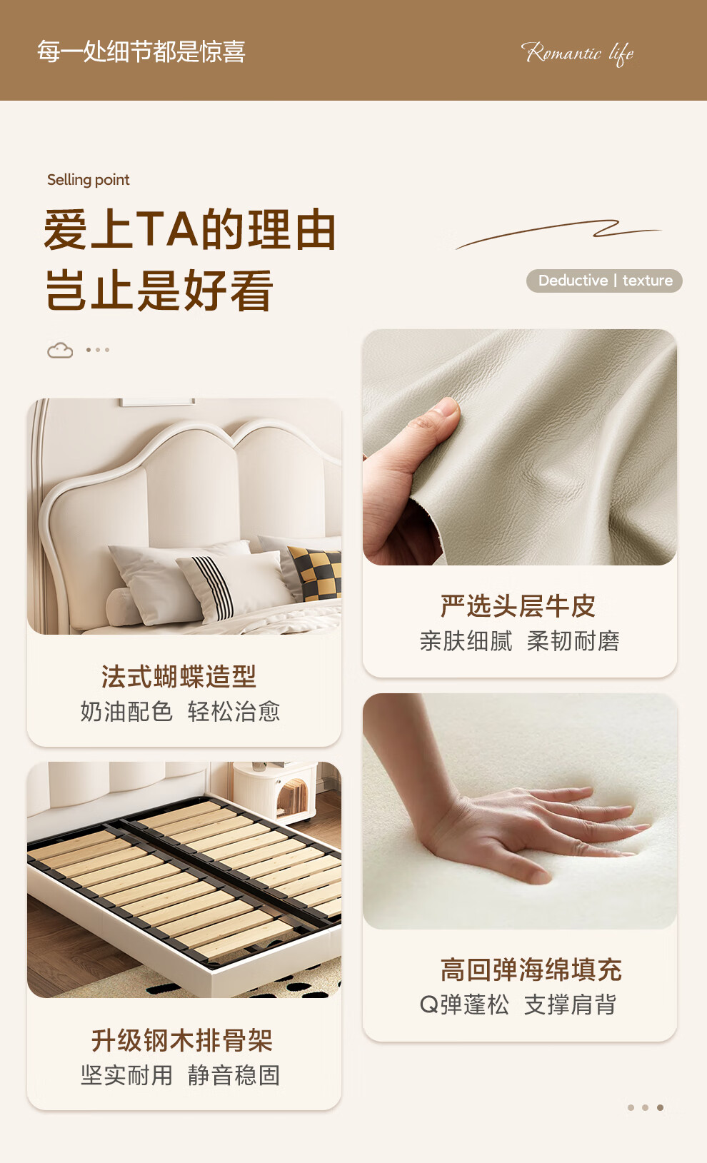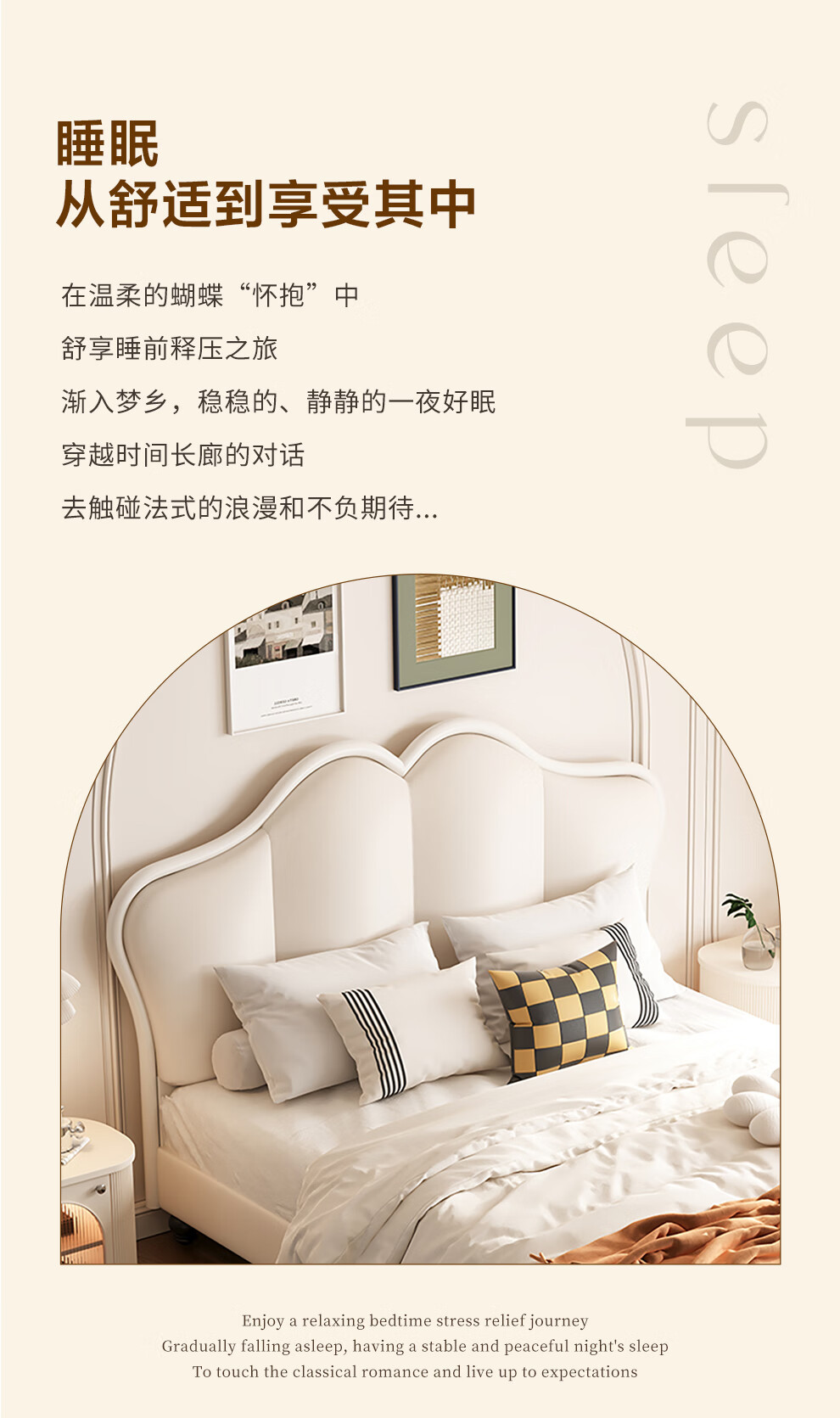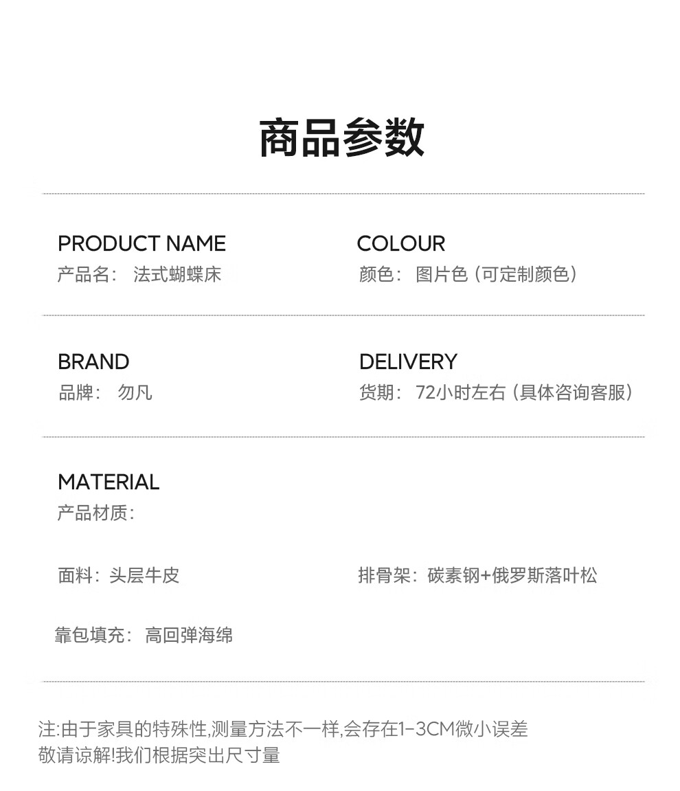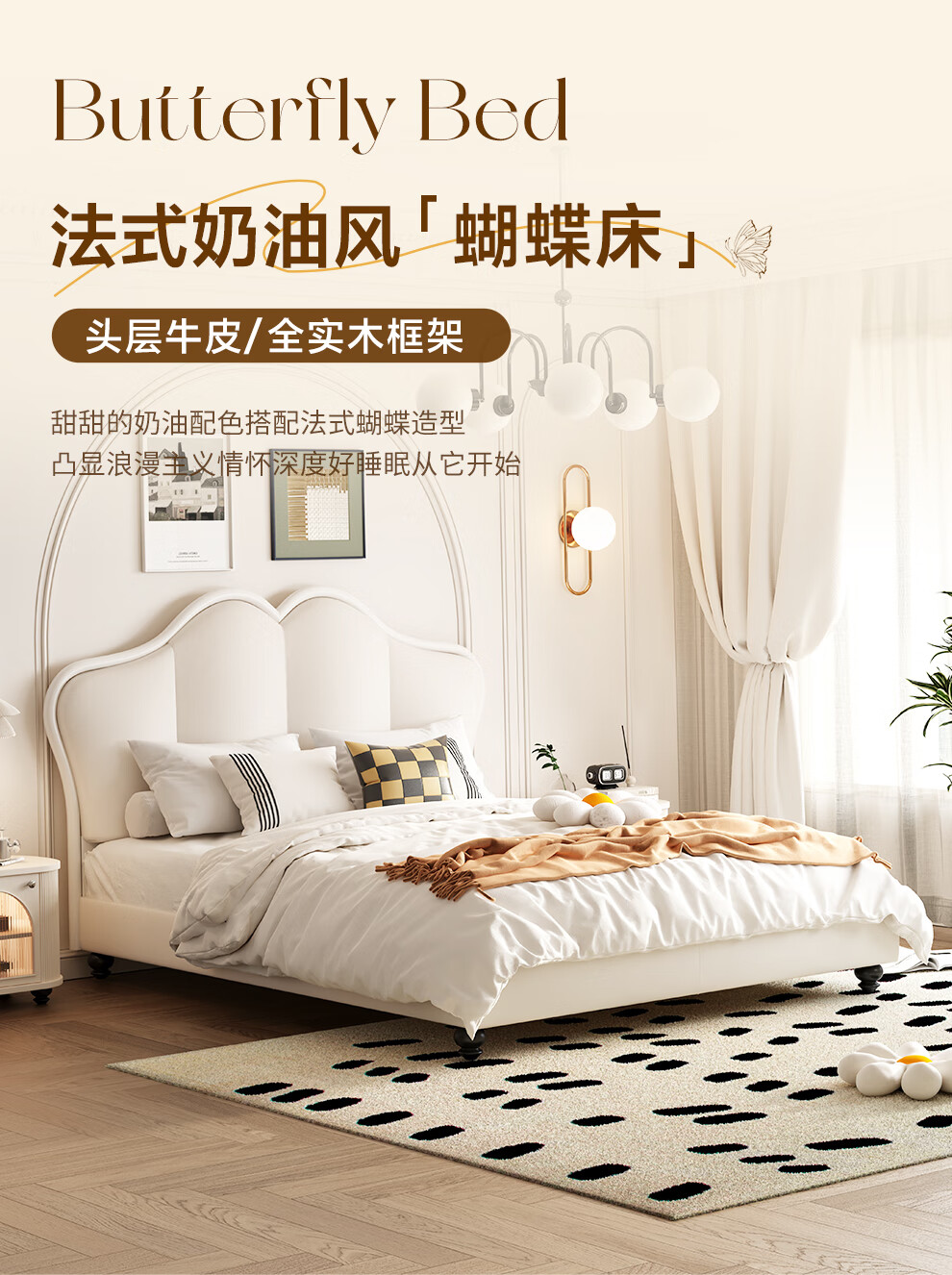 Wufan Guangdong Foshan Leather Bed French Retro Butterfly Bed Cream Style Double Bed 1.8m
