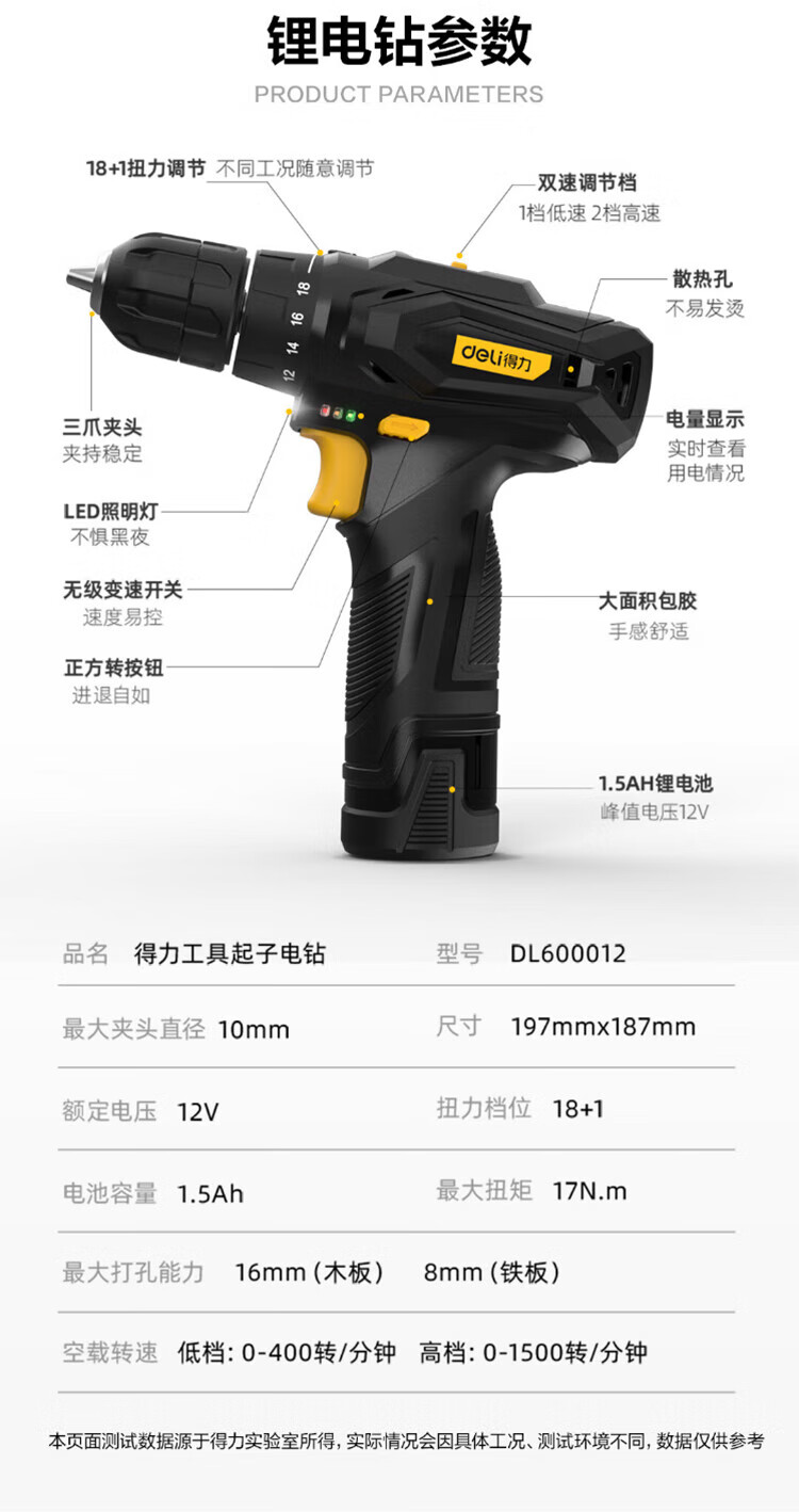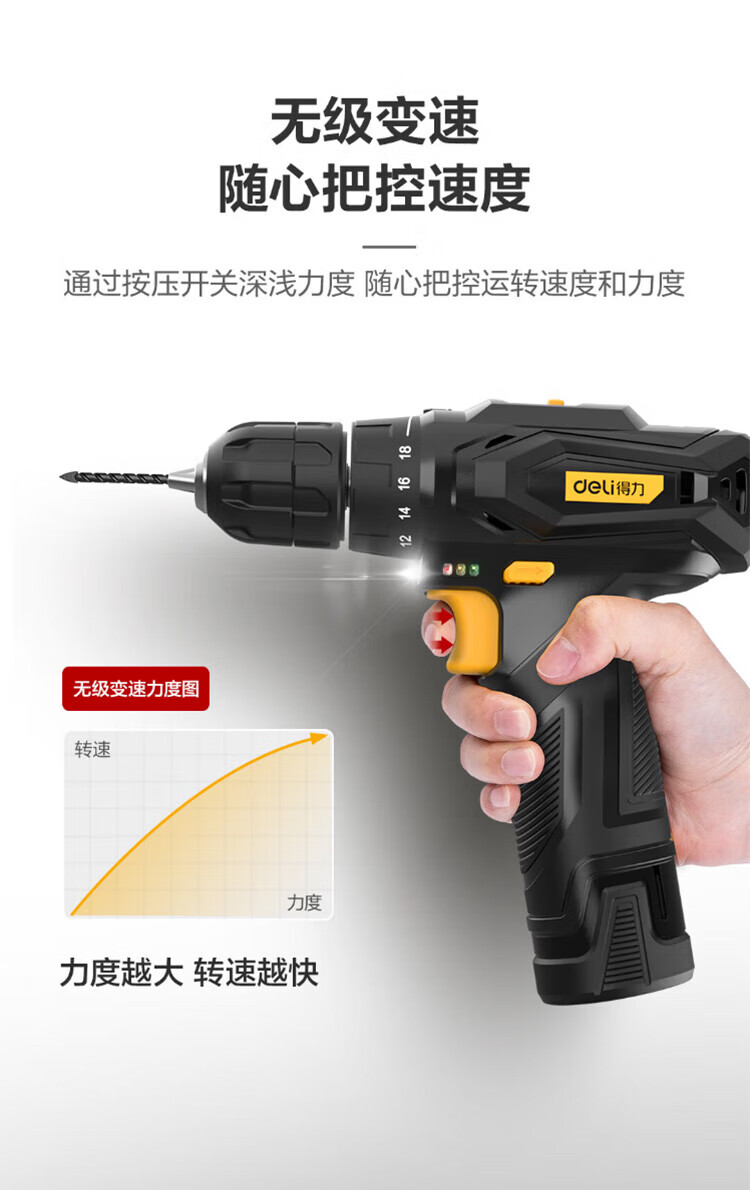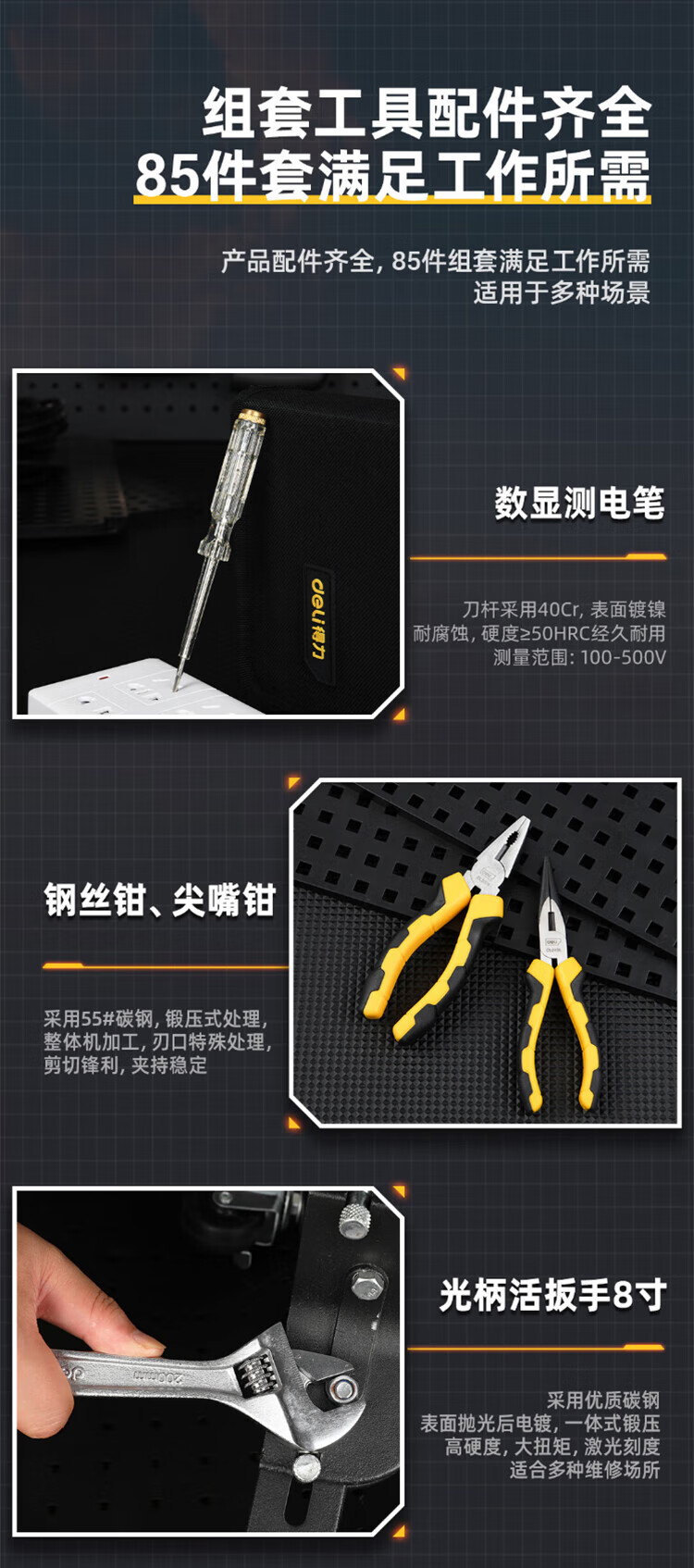 Deli electric drill hand drill rechargeable household multi-functional electric screwdriver driver hardware tool box set 85-piece household lithium electric drill set DL1085L