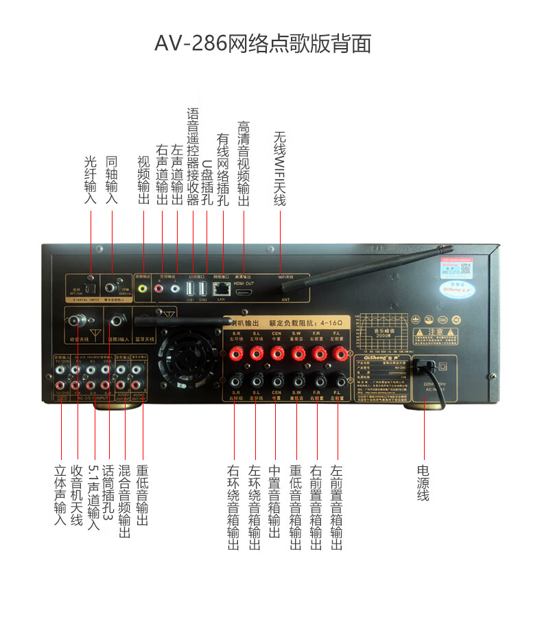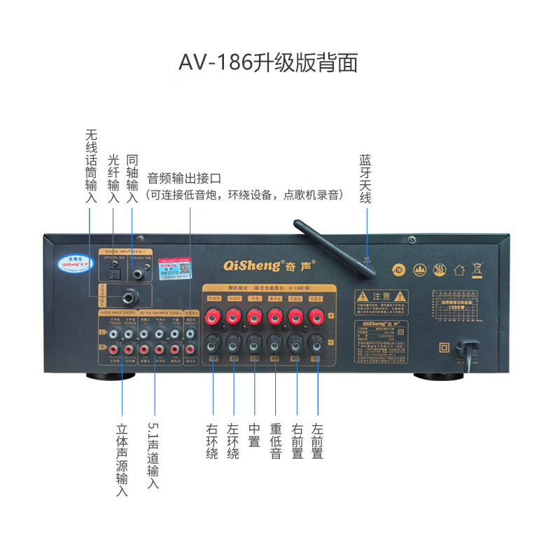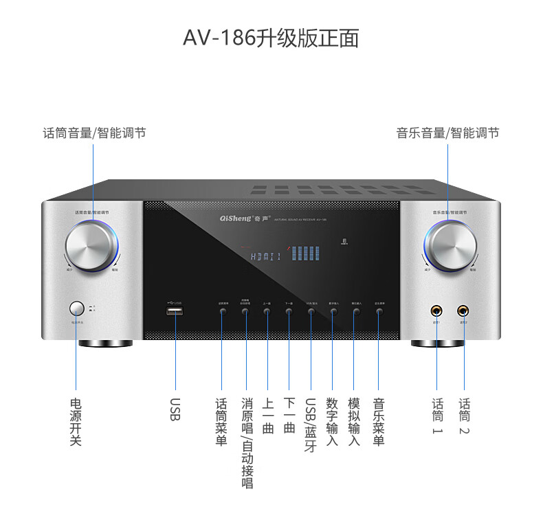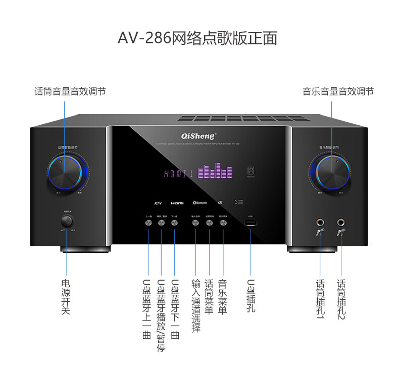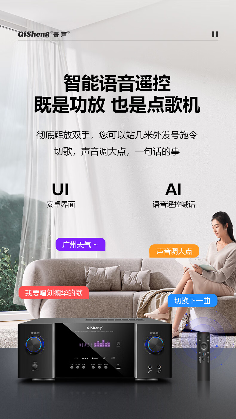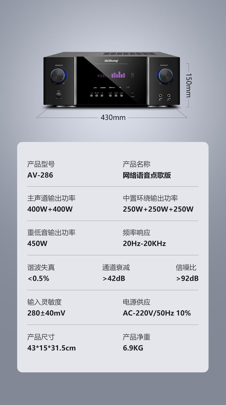 Qisheng's new 5.1 power amplifier home Bluetooth professional 7.1 smart high-power karaoke fever HIFI level AV-286 network version + intelligent AI voice song request system