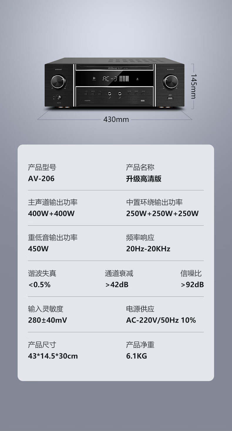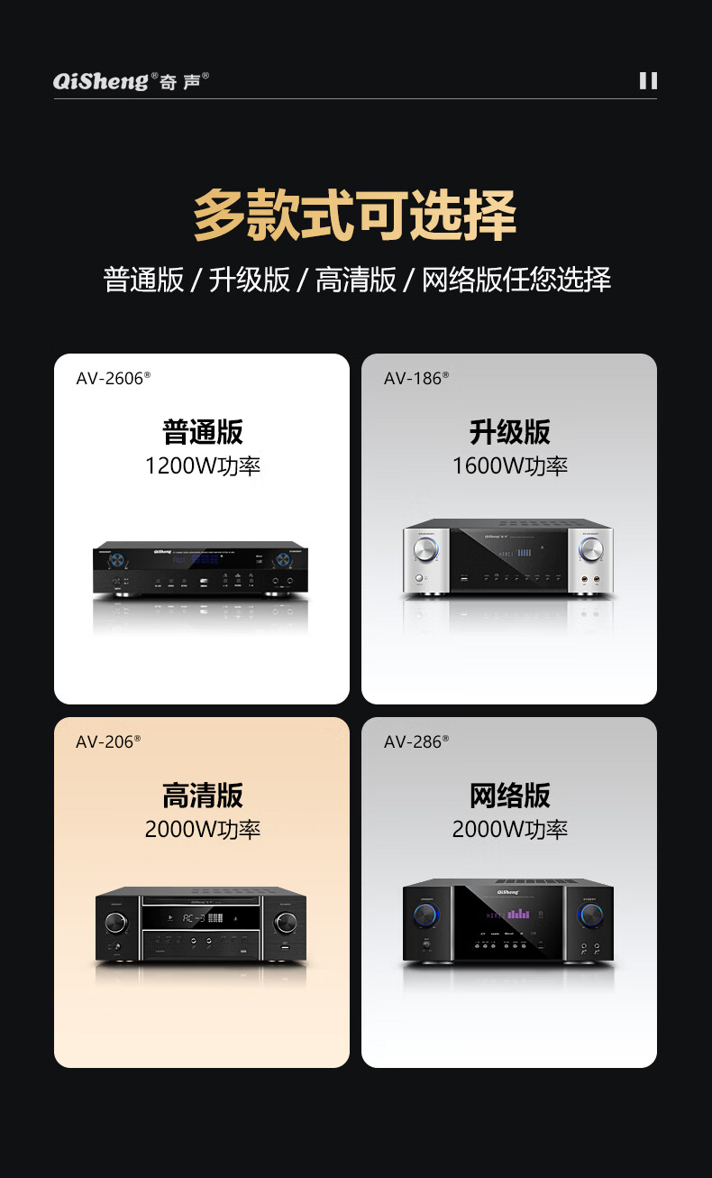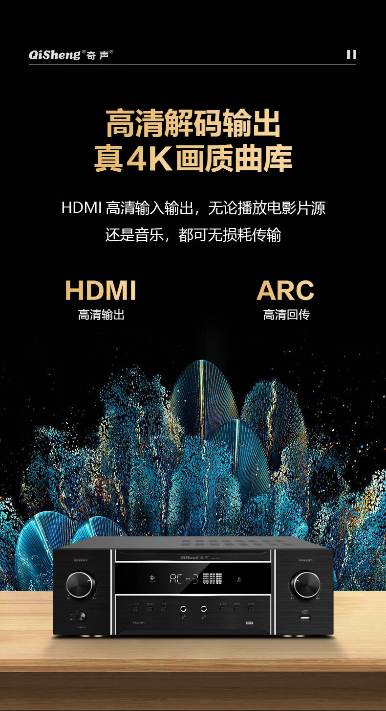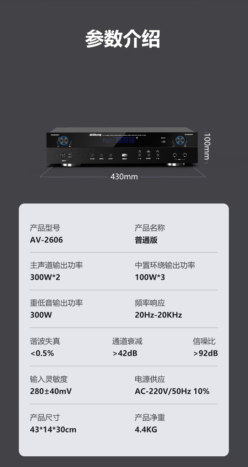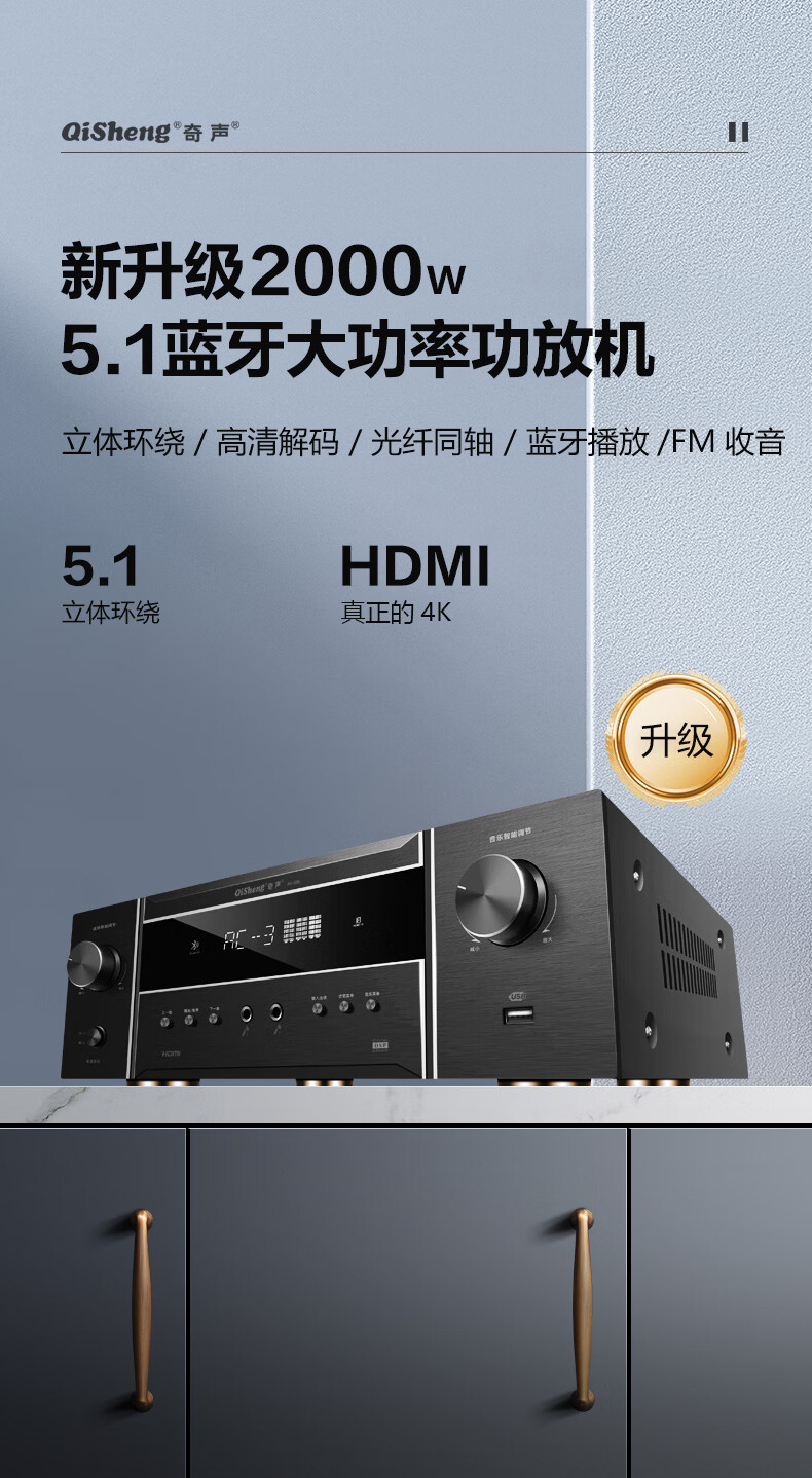 Qisheng's new 5.1 power amplifier home Bluetooth professional 7.1 smart high-power karaoke fever HIFI level AV-286 network version + intelligent AI voice song request system