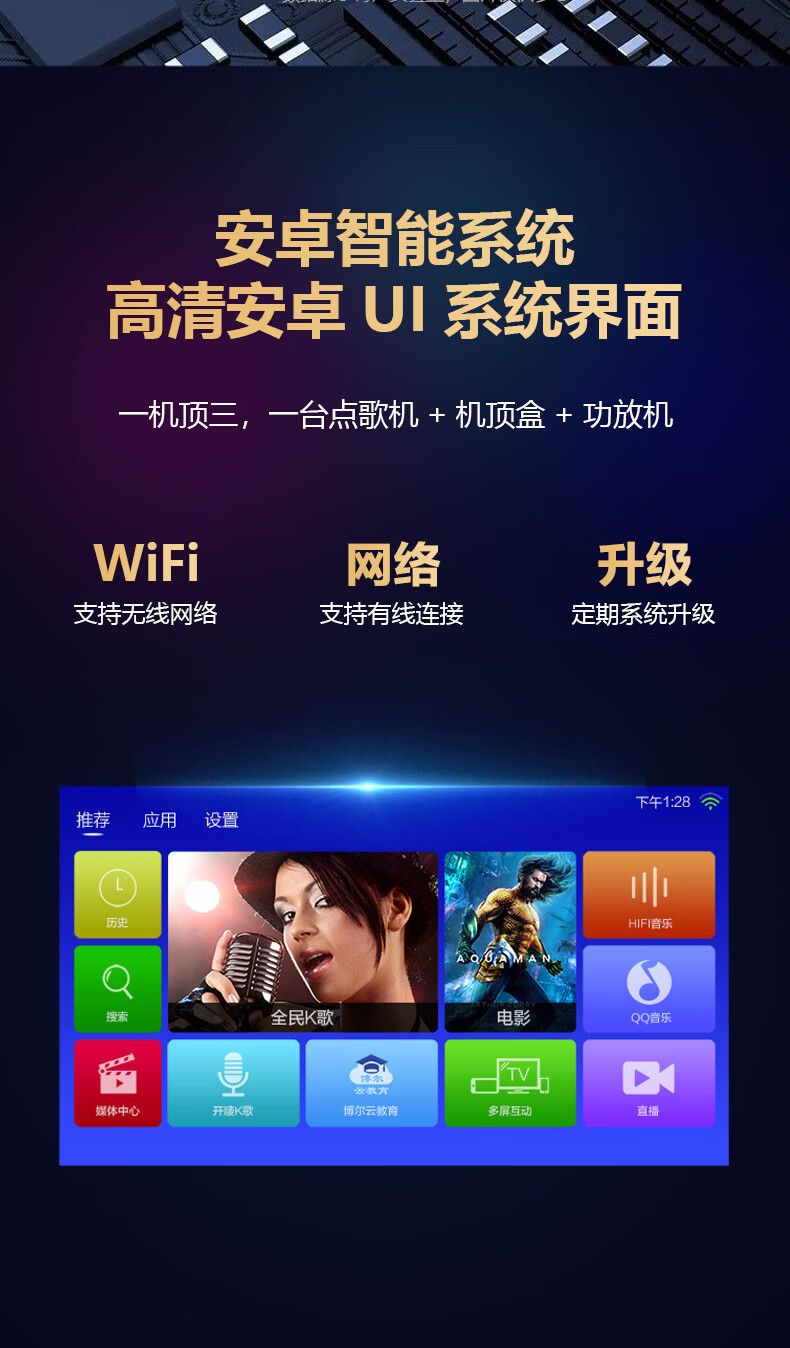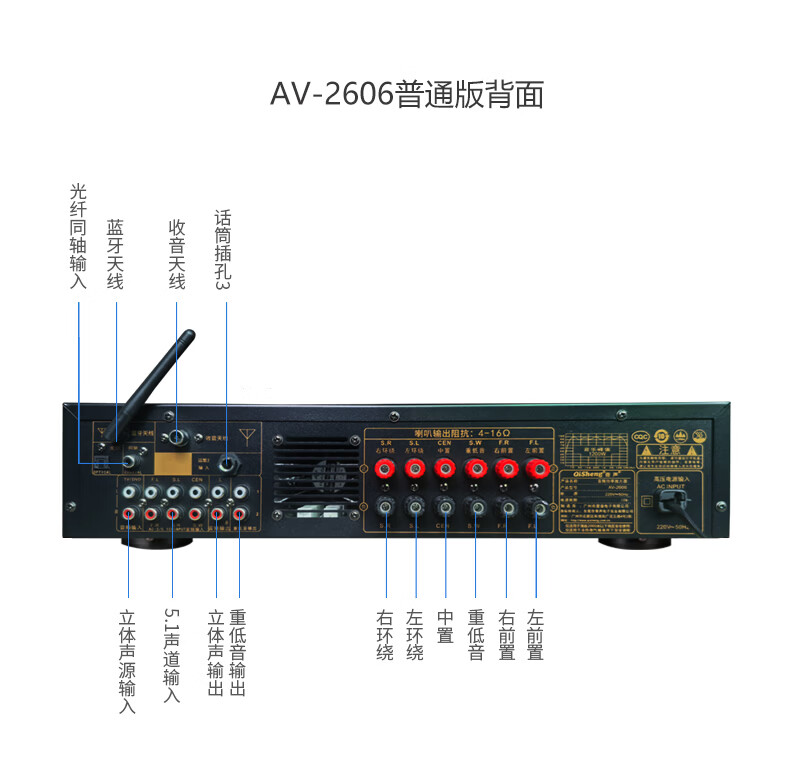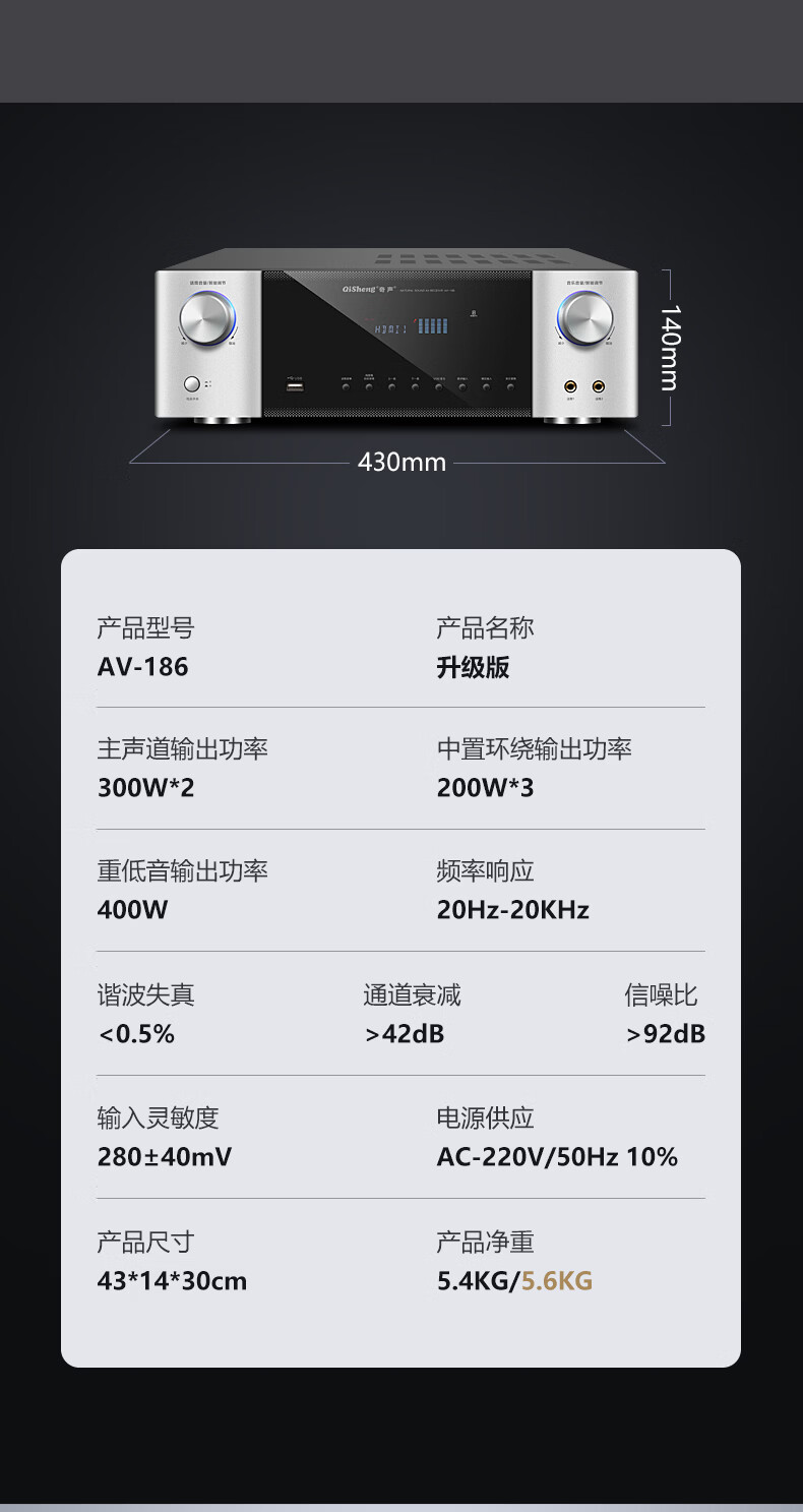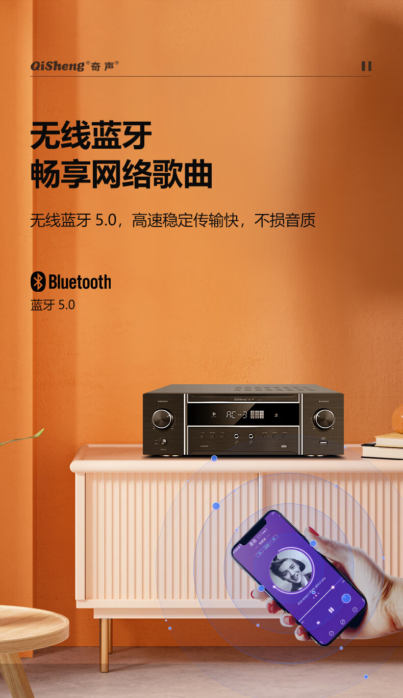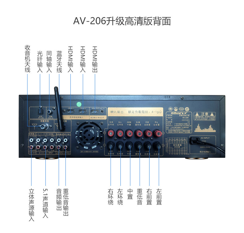 Qisheng's new 5.1 power amplifier home Bluetooth professional 7.1 smart high-power karaoke fever HIFI level AV-286 network version + intelligent AI voice song request system