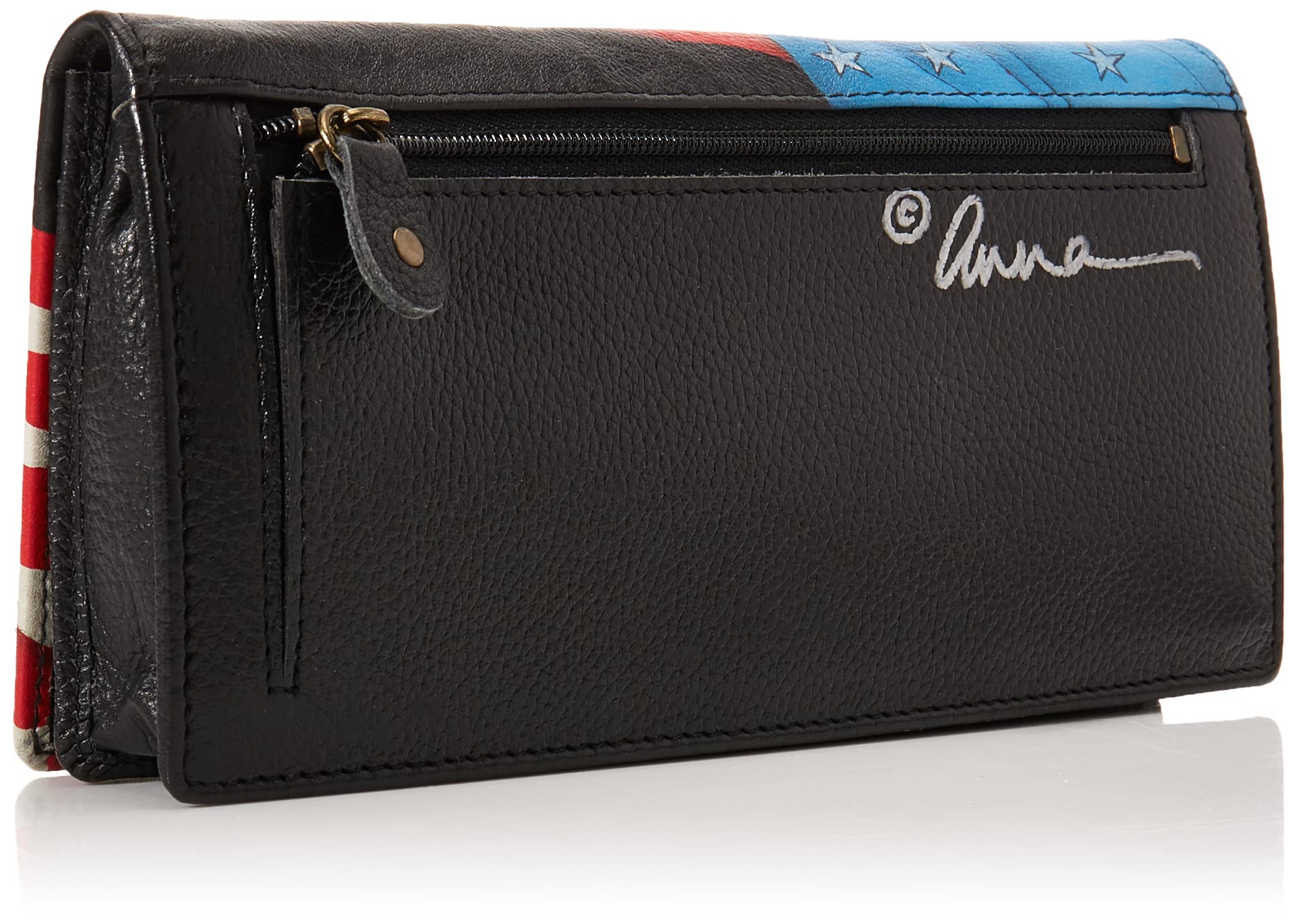 Anna by Anuschka Women's Hand Painted Leather Bifold Clutch, Stars and Stripes Black Stars and Stripes Black One Size