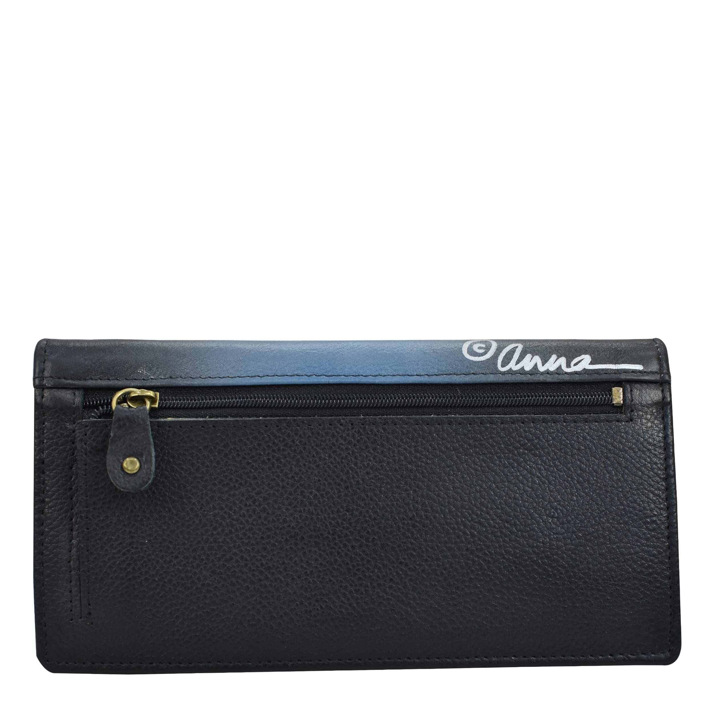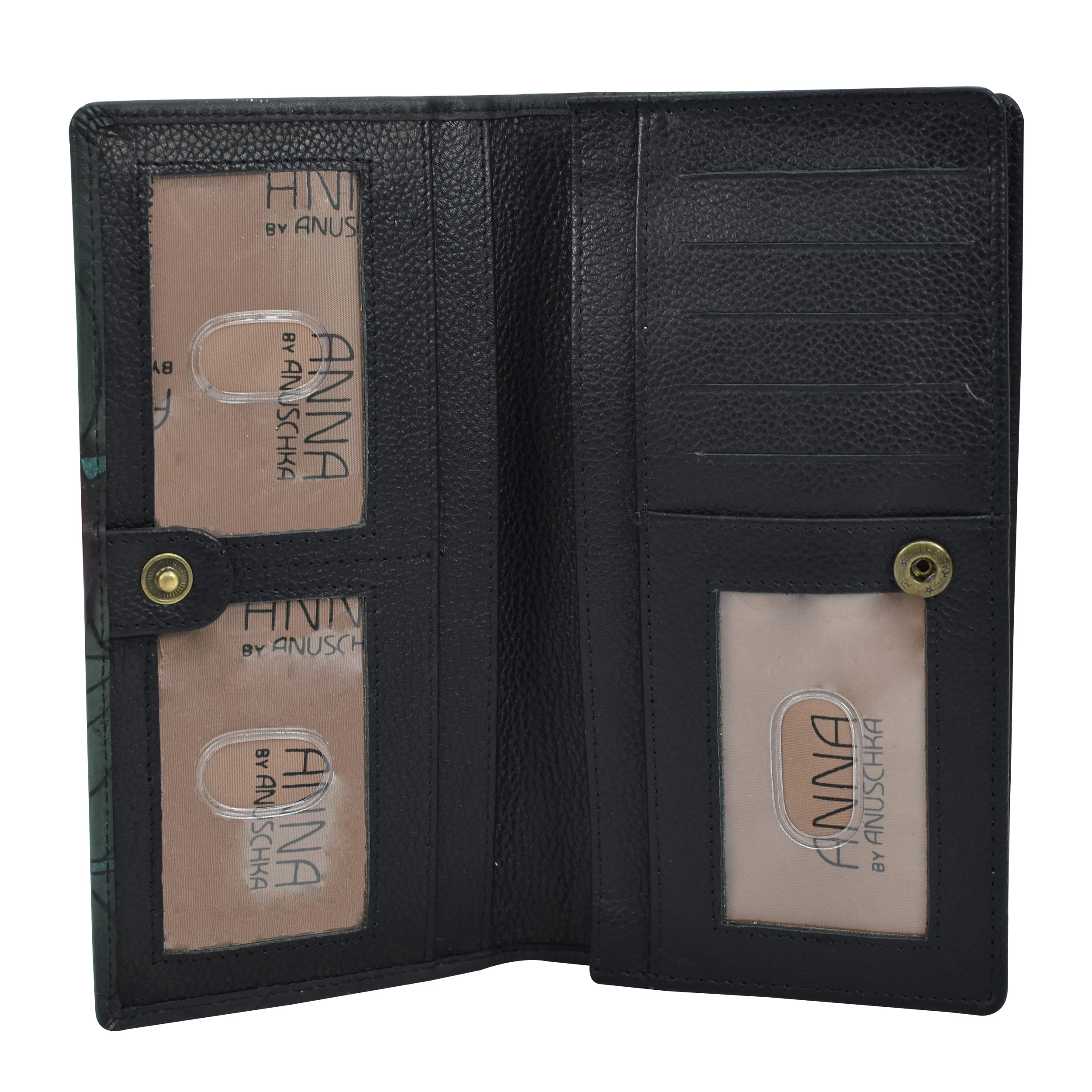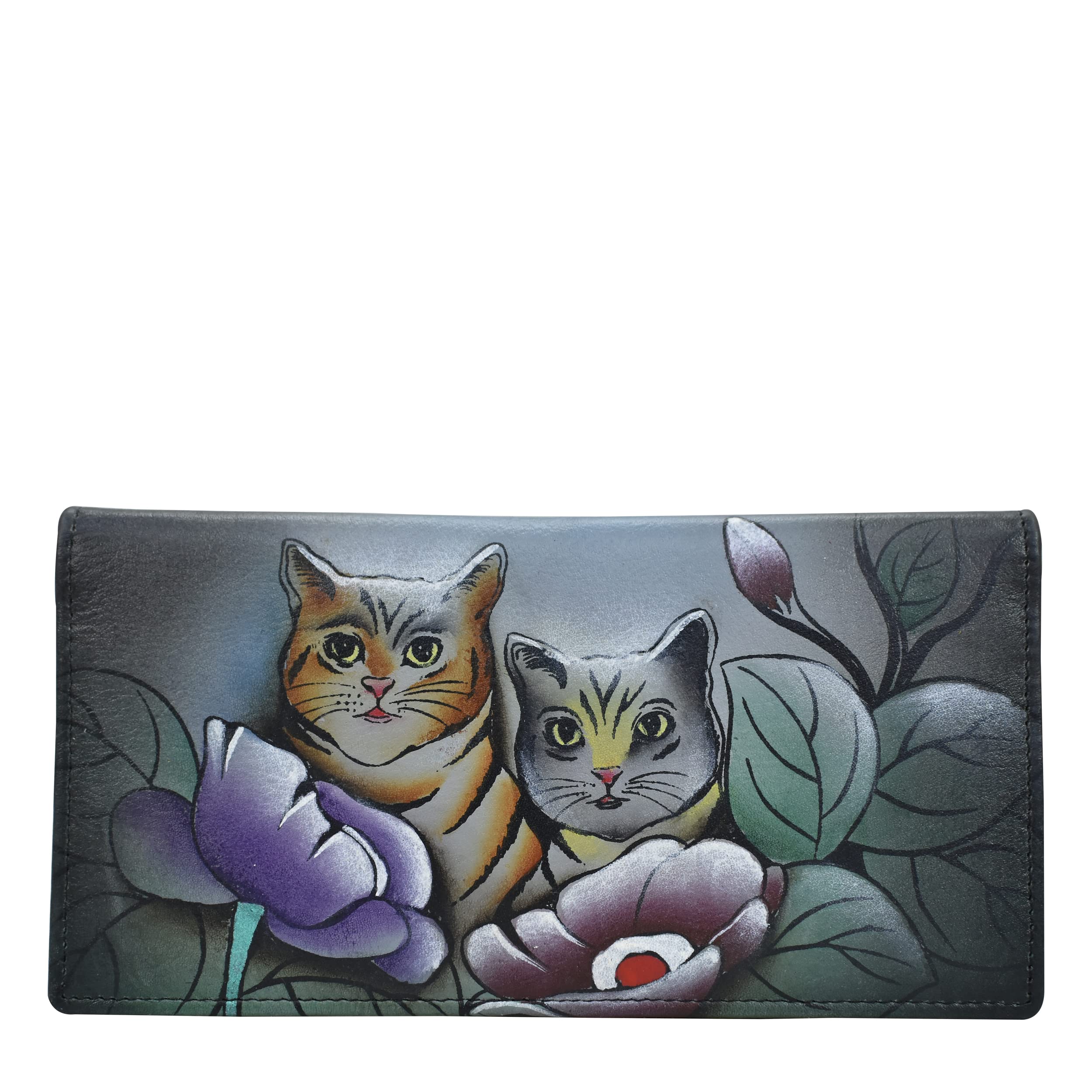 Anna by Anuschka Women's Hand Painted Leather Clutch Wallet - Precious Peony Eggplant, Two Cats Gray Two Cats Gray One Size