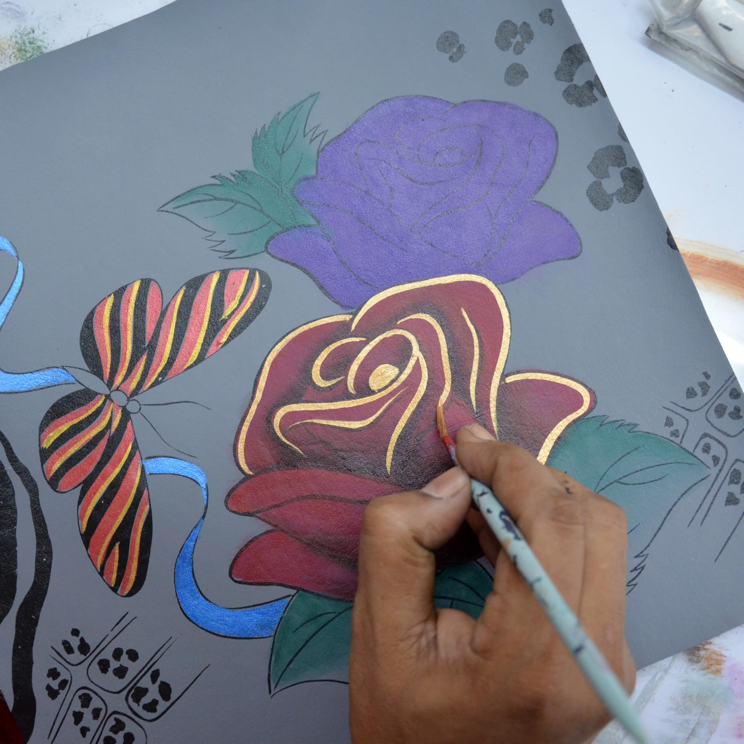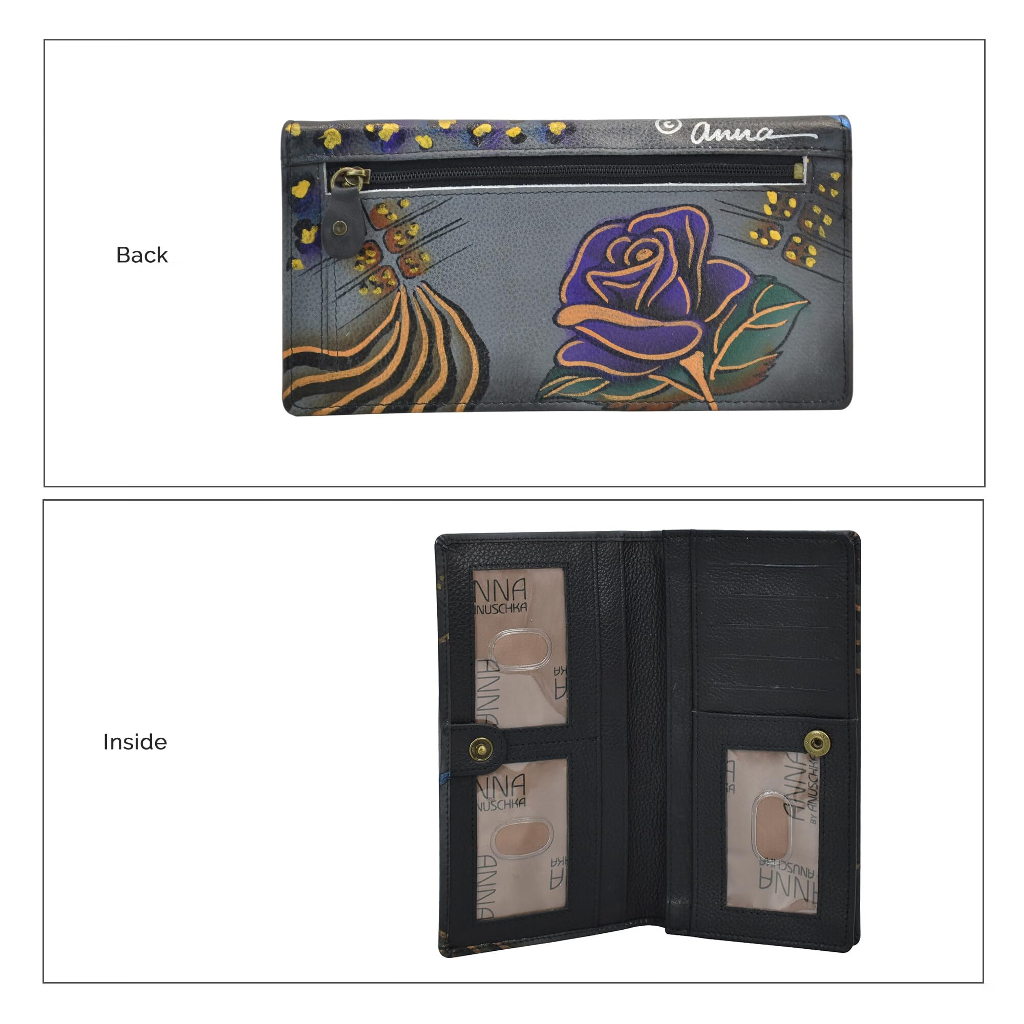 Anna by Anuschka Women's Genuine Leather Hand Painted Clutch, Rose Safari Gray, Rose Safari Gray Rose Safari Gray No Size