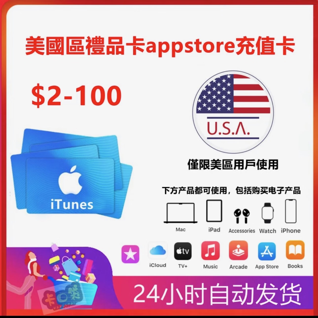 US area itunes Apple recharge card appstore 25 US dollars