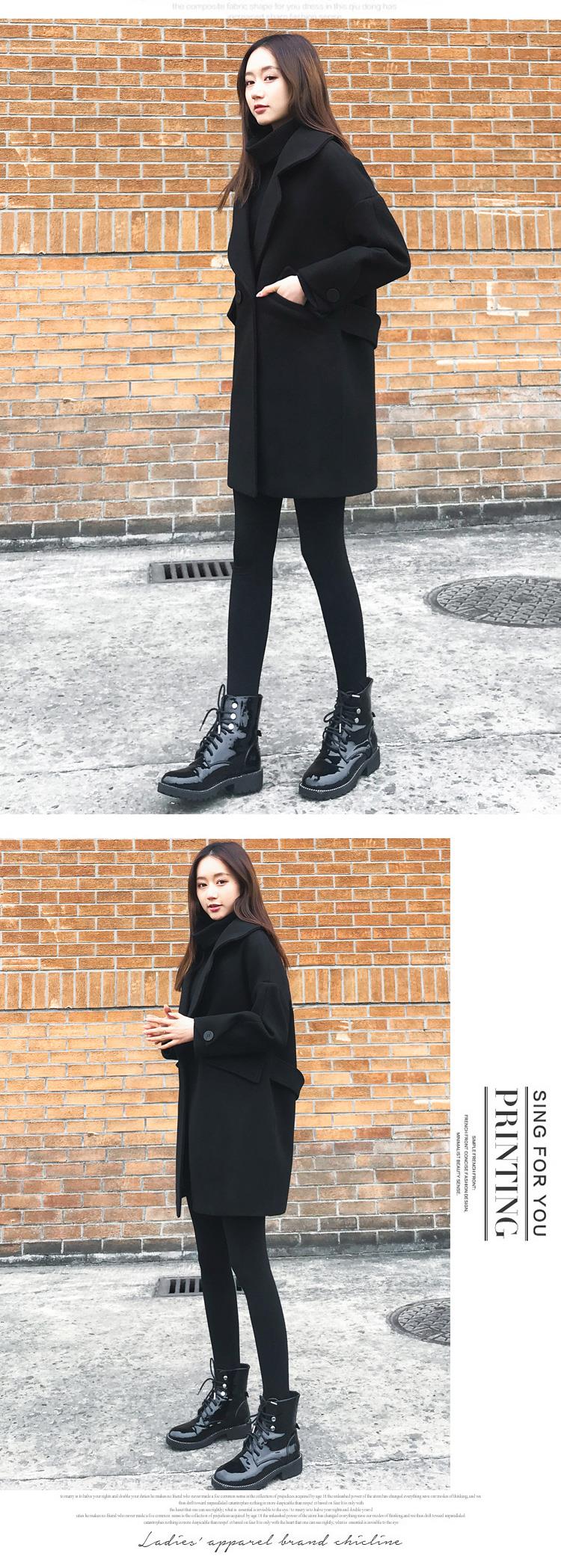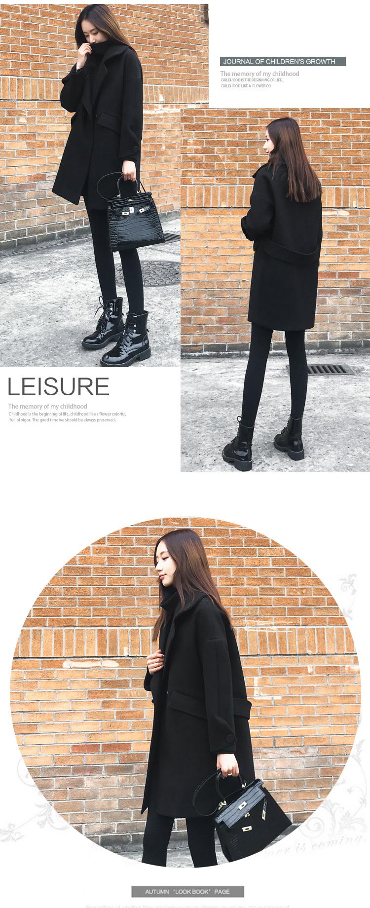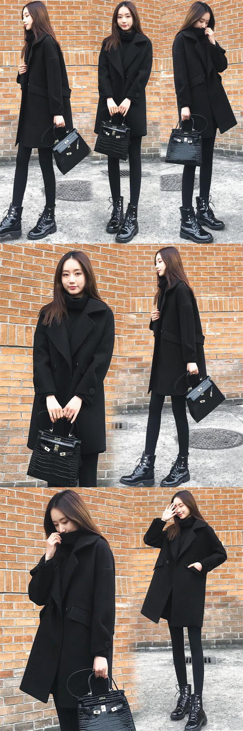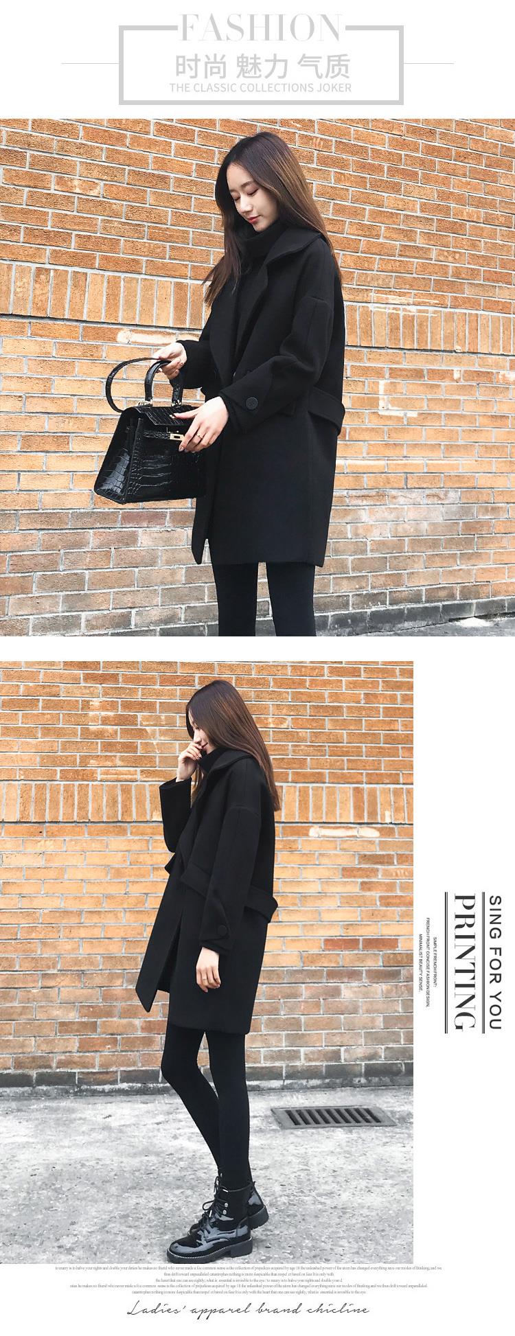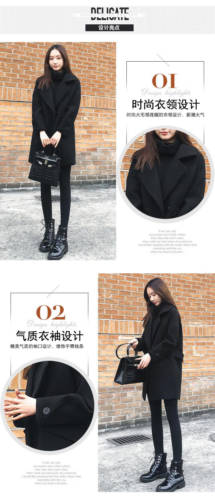 Woodpecker woolen coat for women, high quality, autumn and winter, large size, loose, mid-length, slim woolen coat, black cashmere coat, black style, regular L, recommended 100-120 pounds