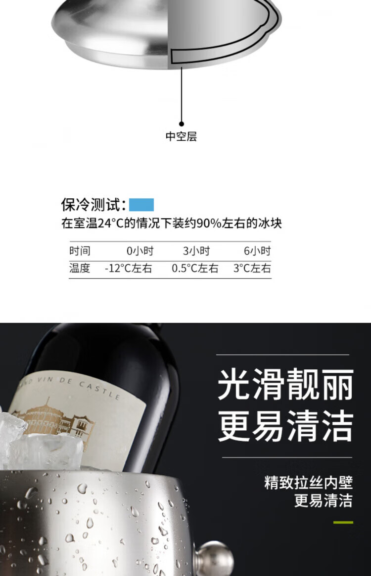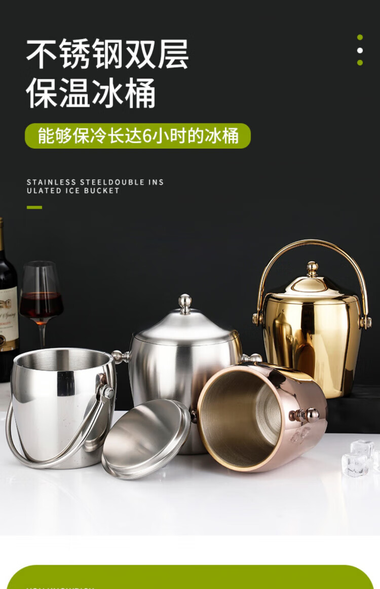 Yaofeng thickened stainless steel ice bucket double-layer champagne bucket red wine iced beer ice bucket KTV bar utensils ice wine bucket stainless steel long ice spoon