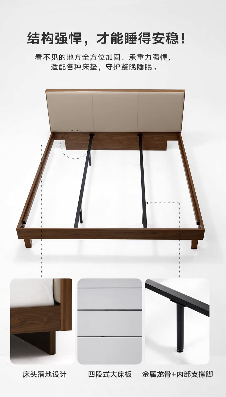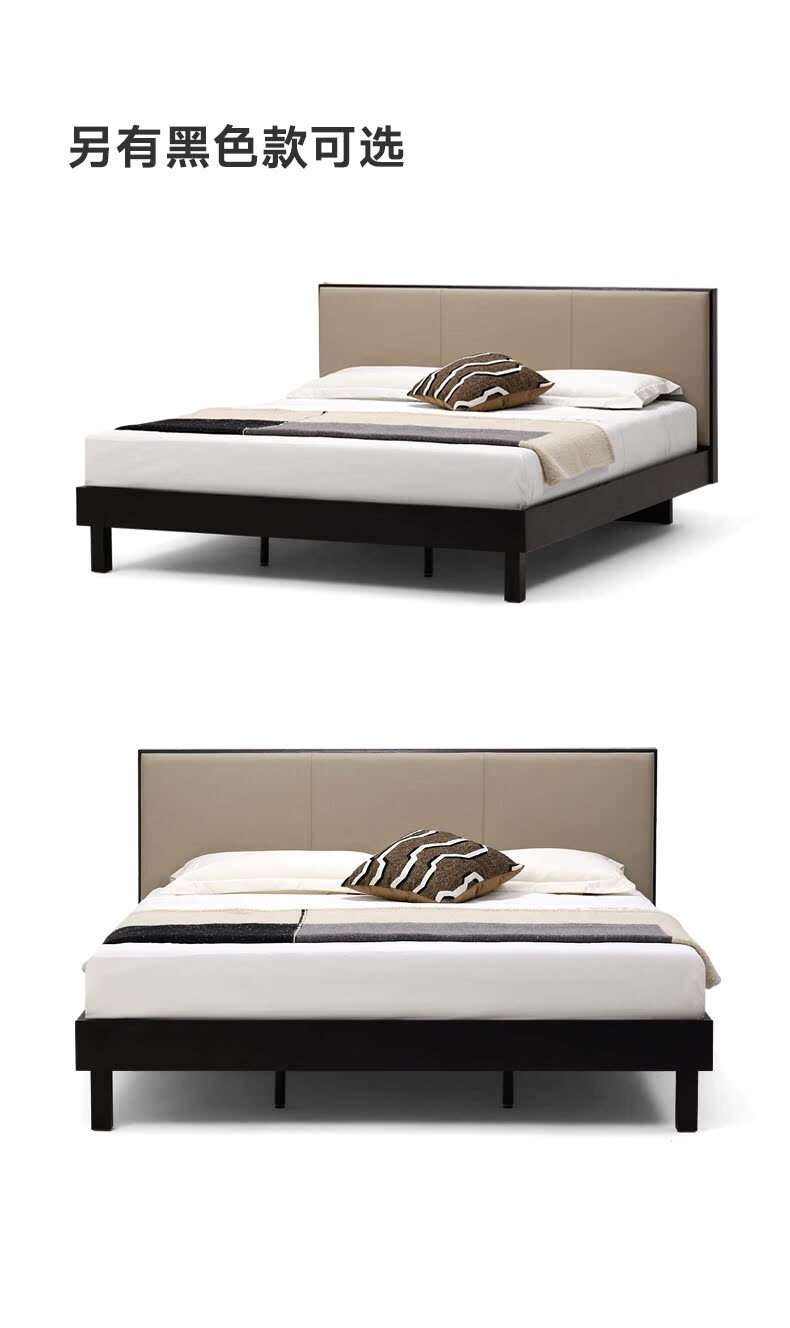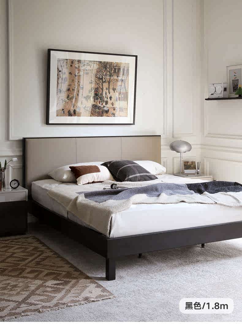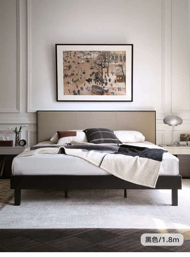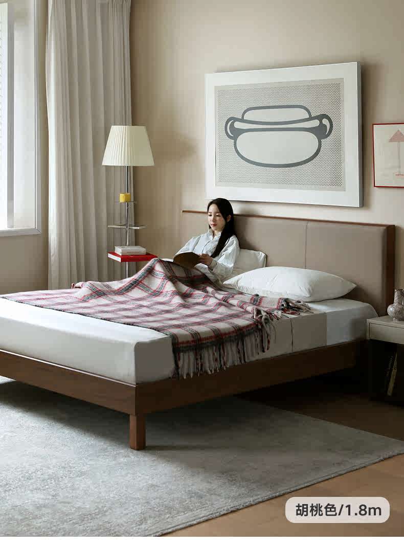NORHOR Nordic Expression/Medieval Retro Style Rotterdam/LOTA Leather High Back Solid Wood Double Bed Master Bedroom GZ Spot Walnut Color Z 1500mm*2000mm