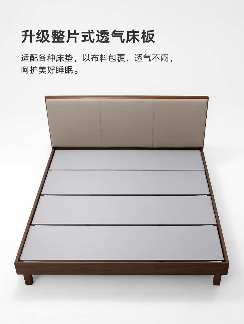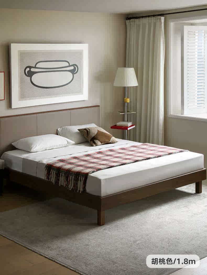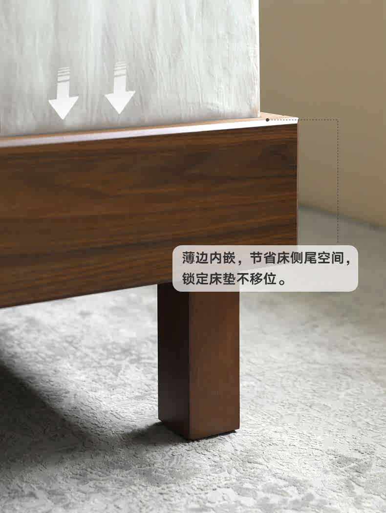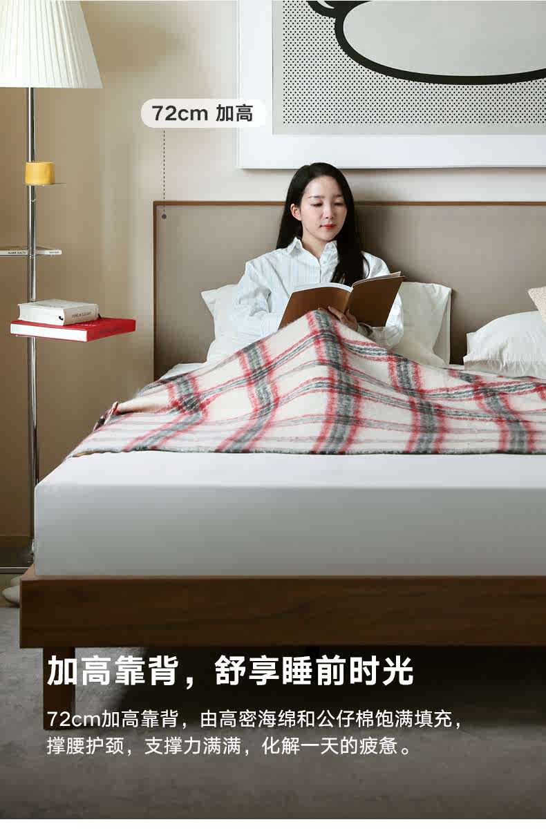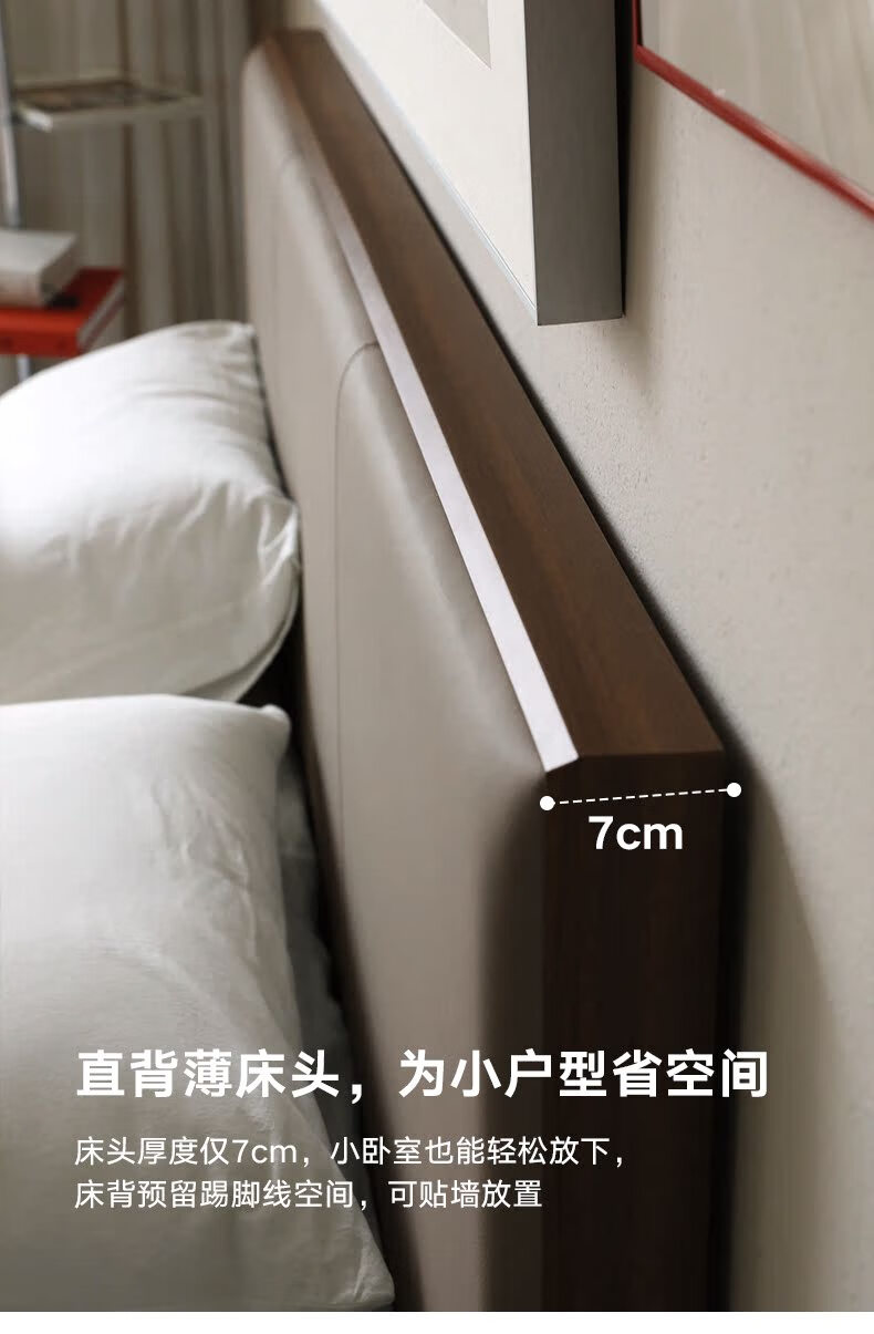 NORHOR Nordic Expression/Medieval Retro Style Rotterdam/LOTA Leather High Back Solid Wood Double Bed Master Bedroom GZ Spot Walnut Color Z 1500mm*2000mm