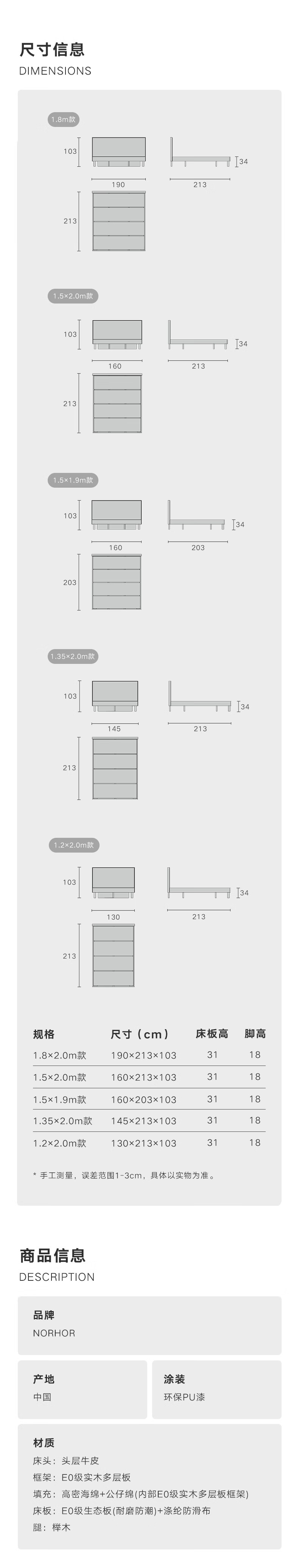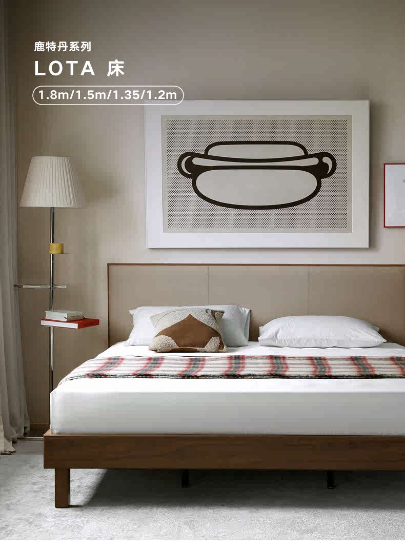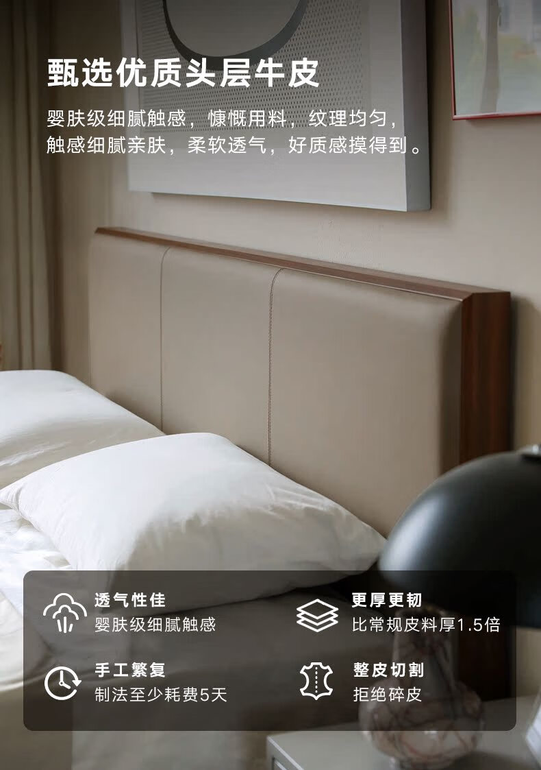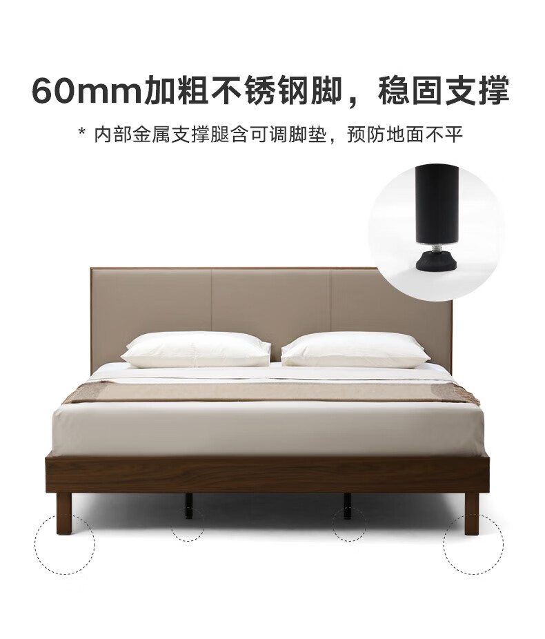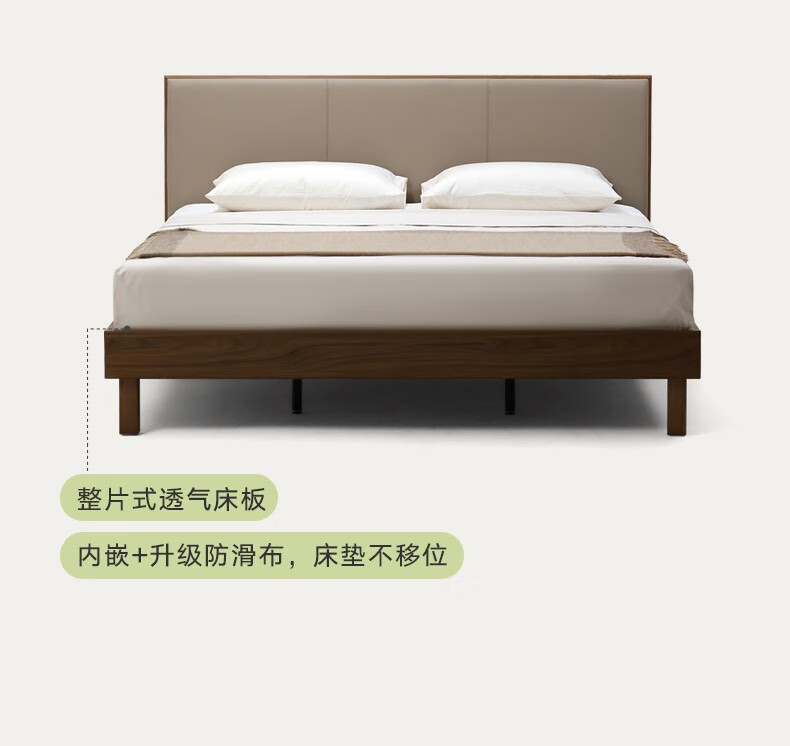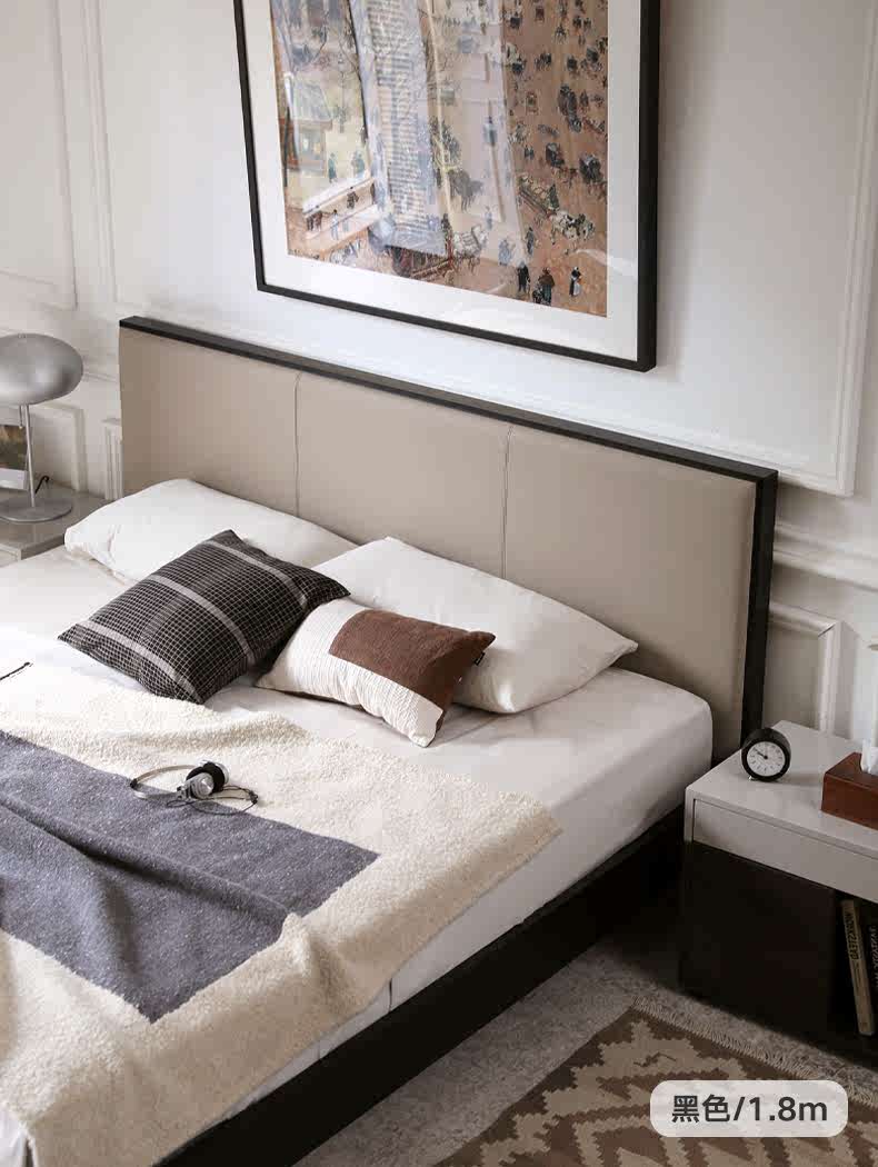 NORHOR Nordic Expression/Medieval Retro Style Rotterdam/LOTA Leather High Back Solid Wood Double Bed Master Bedroom GZ Spot Walnut Color Z 1500mm*2000mm