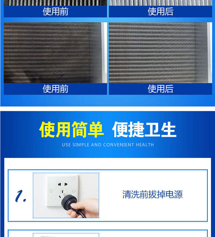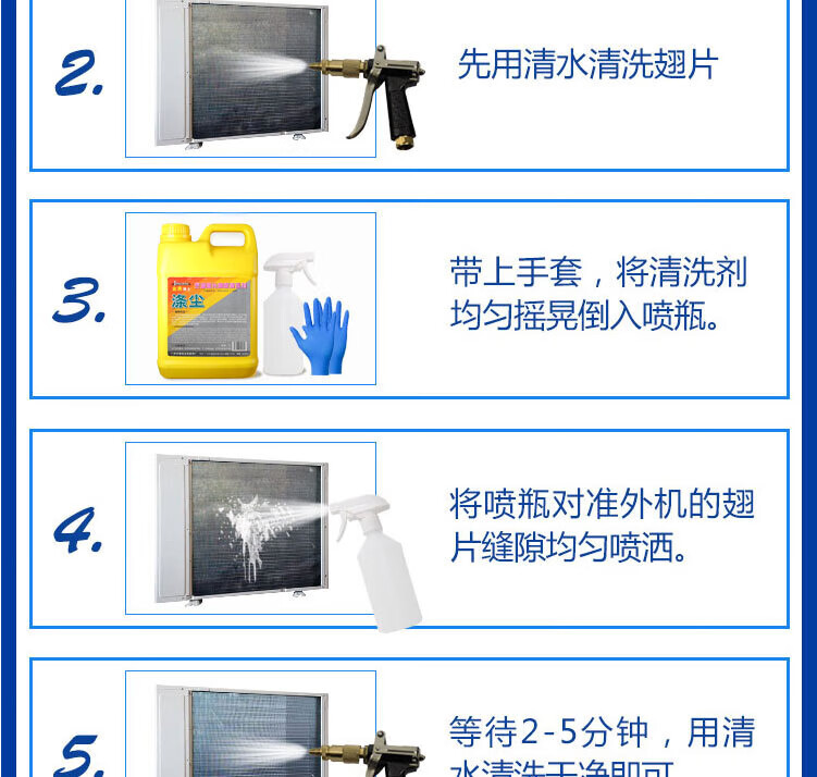 Cleaning agent powerful to remove sewage tank radiator household air conditioner internal and external unit fin warp radiator water tank cleaning cleaning agent deep and powerful decontamination and dust removal with gloves (no watering can) 5L